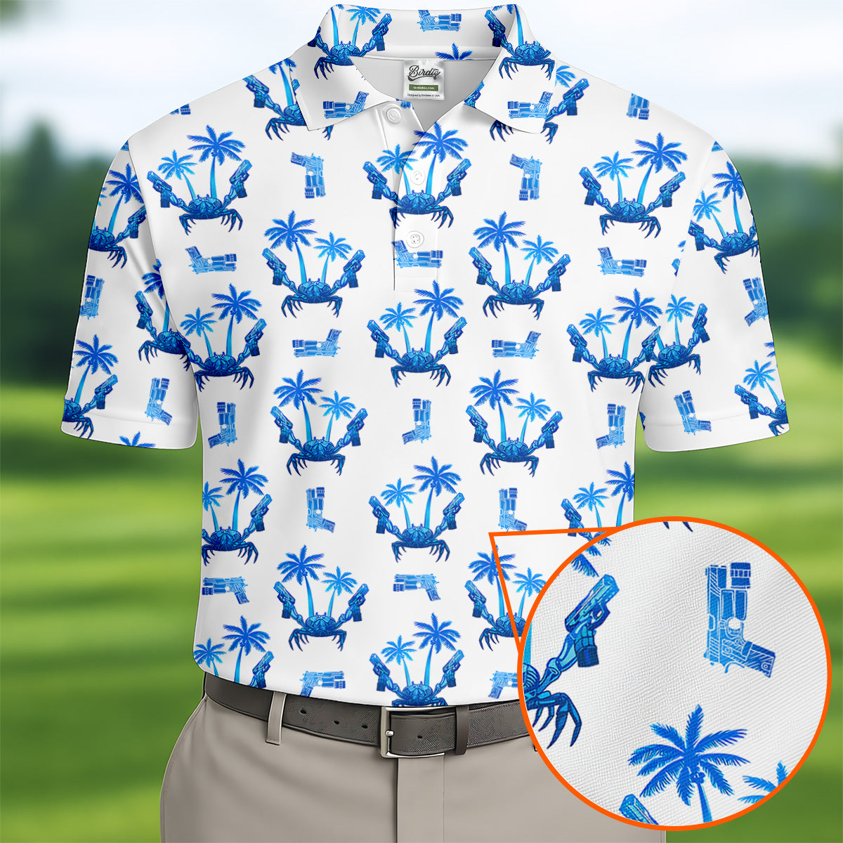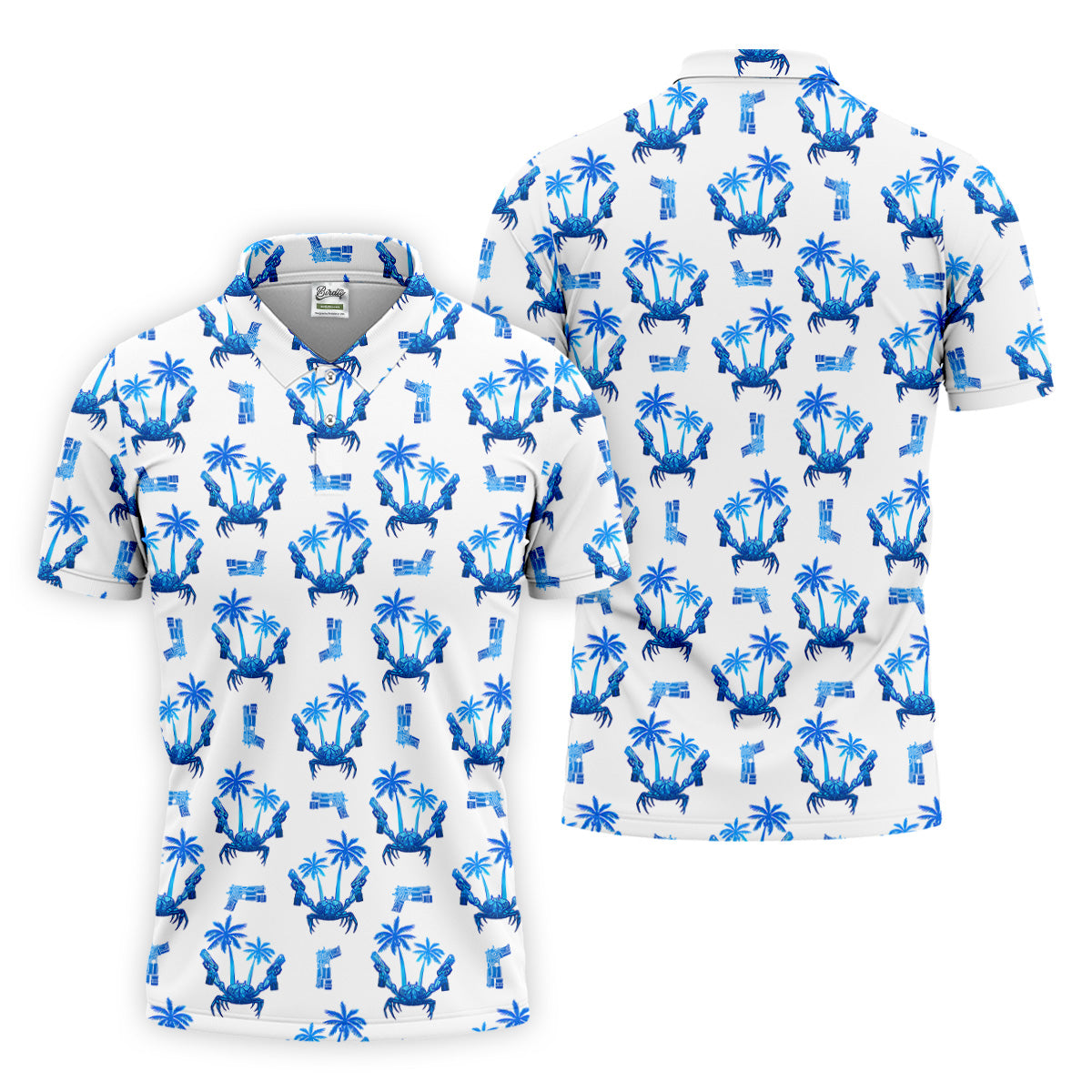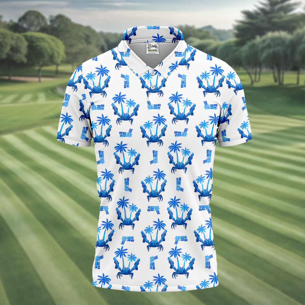 The Blue Crab Tropical Golf Shirts, Golf Gift For Men, Golf Shirts For Men, Golfing Apparel