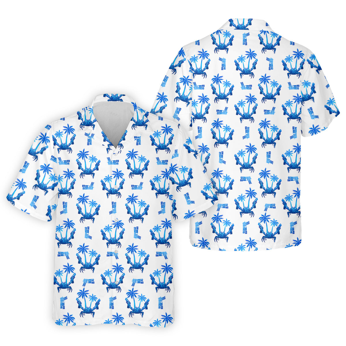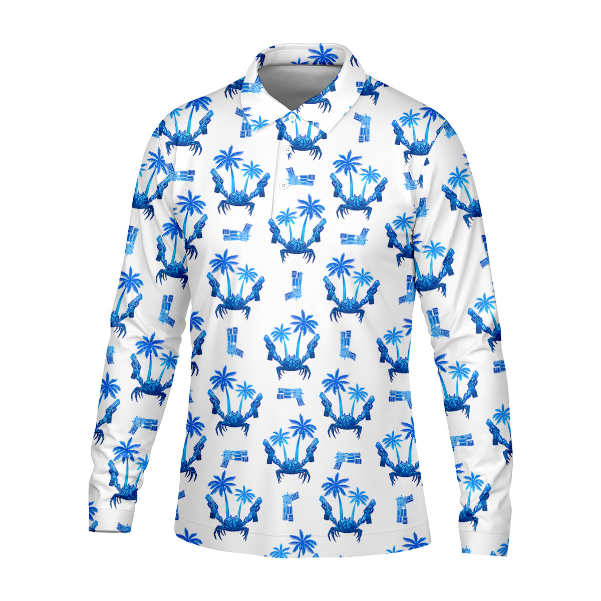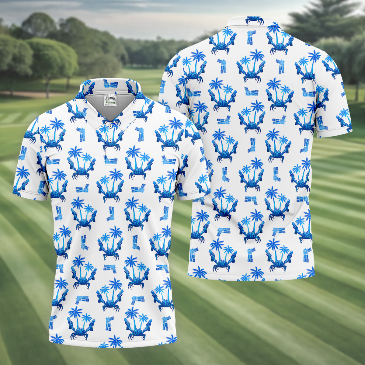 The Blue Crab Tropical Golf Shirts, Golf Gift For Men, Golf Shirts For Men, Golfing Apparel