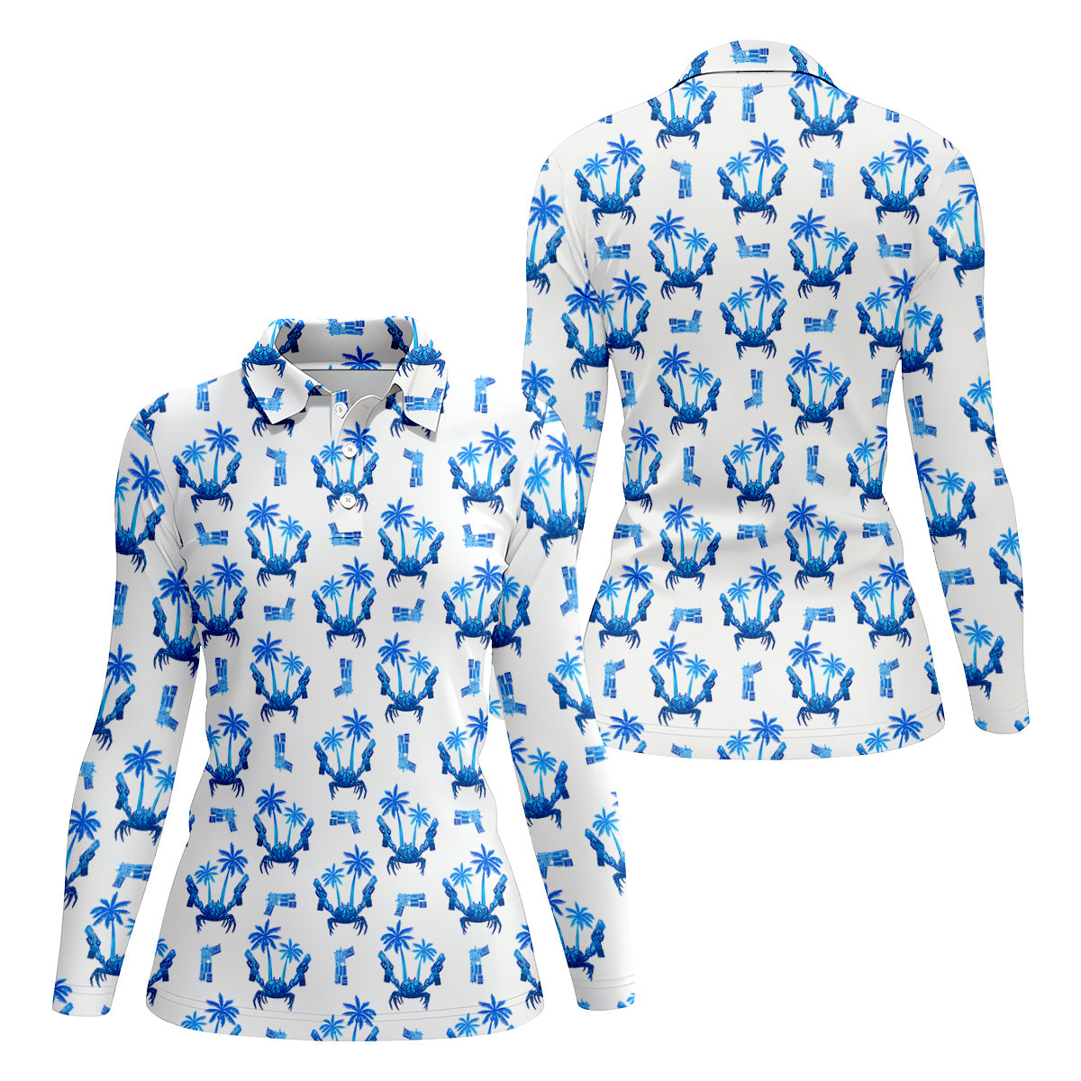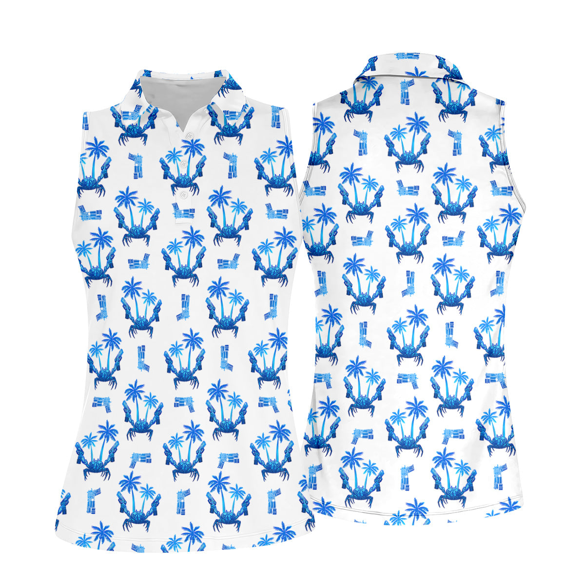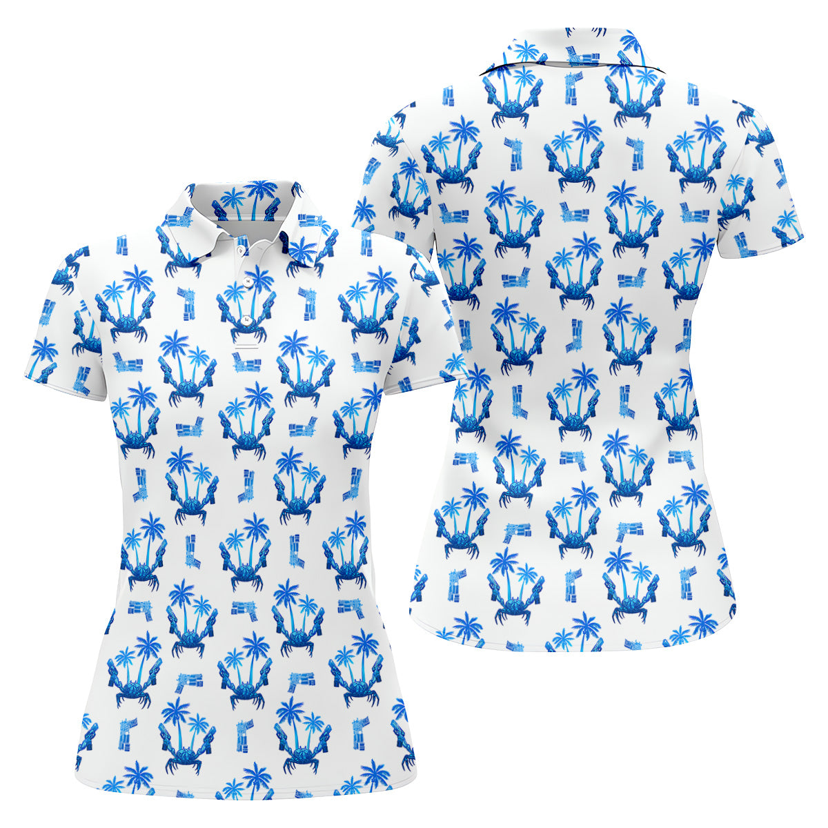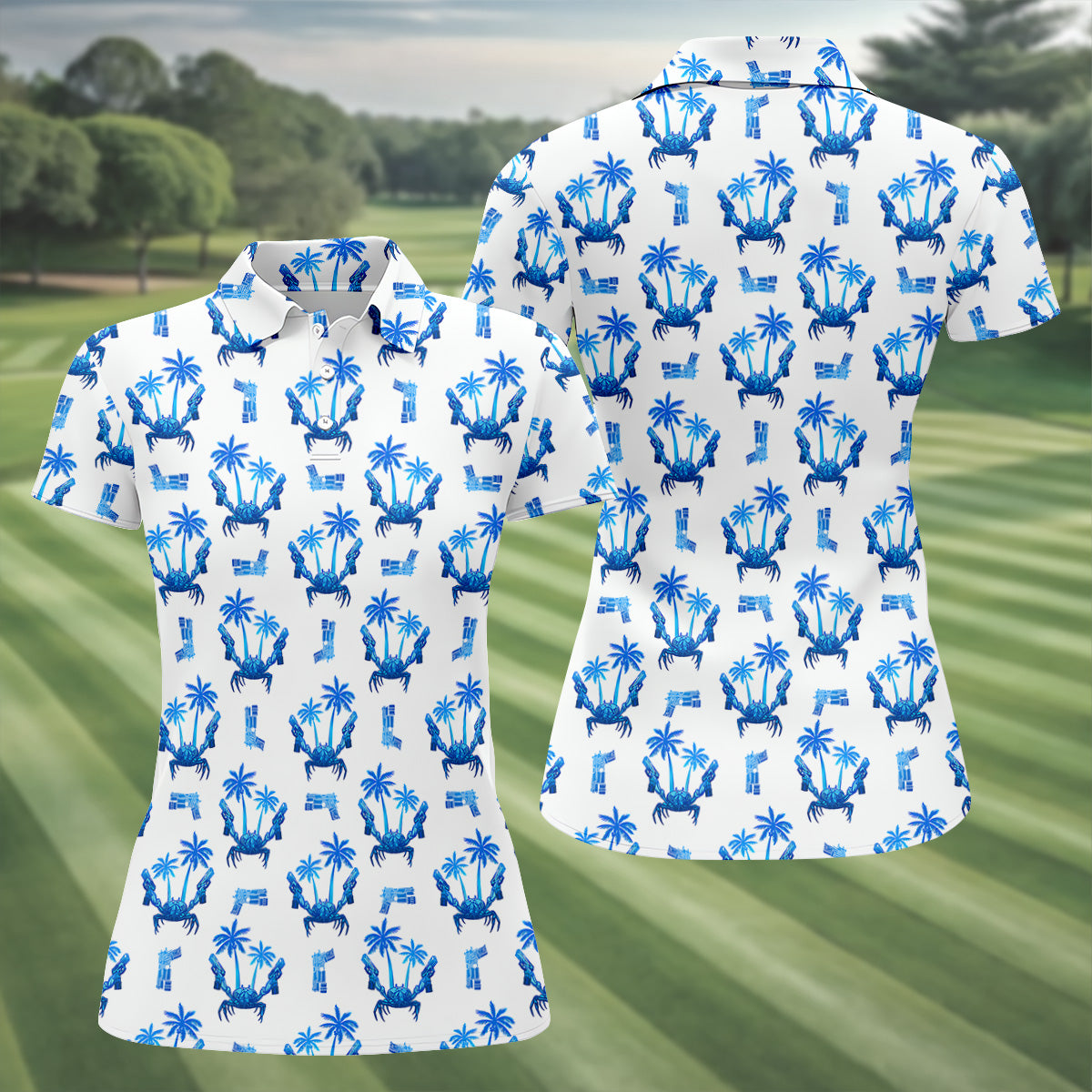 The Blue Crab Tropical Golf Shirts, Ladies Golf Shirts, Golf Gifts For Women, Golfing Apparel