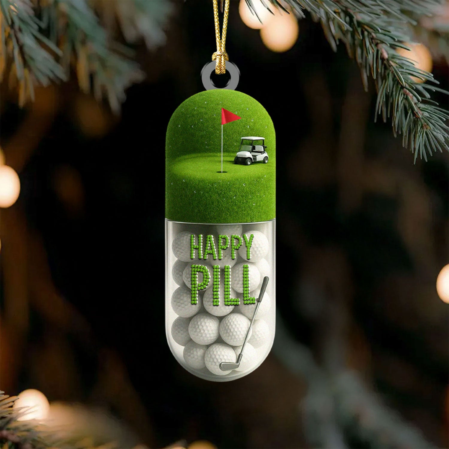 The Happy Pill Green Golf Club Acrylic Ornaments, Golf Christmas Gifts, Funny Golf Ball Golf Ornaments