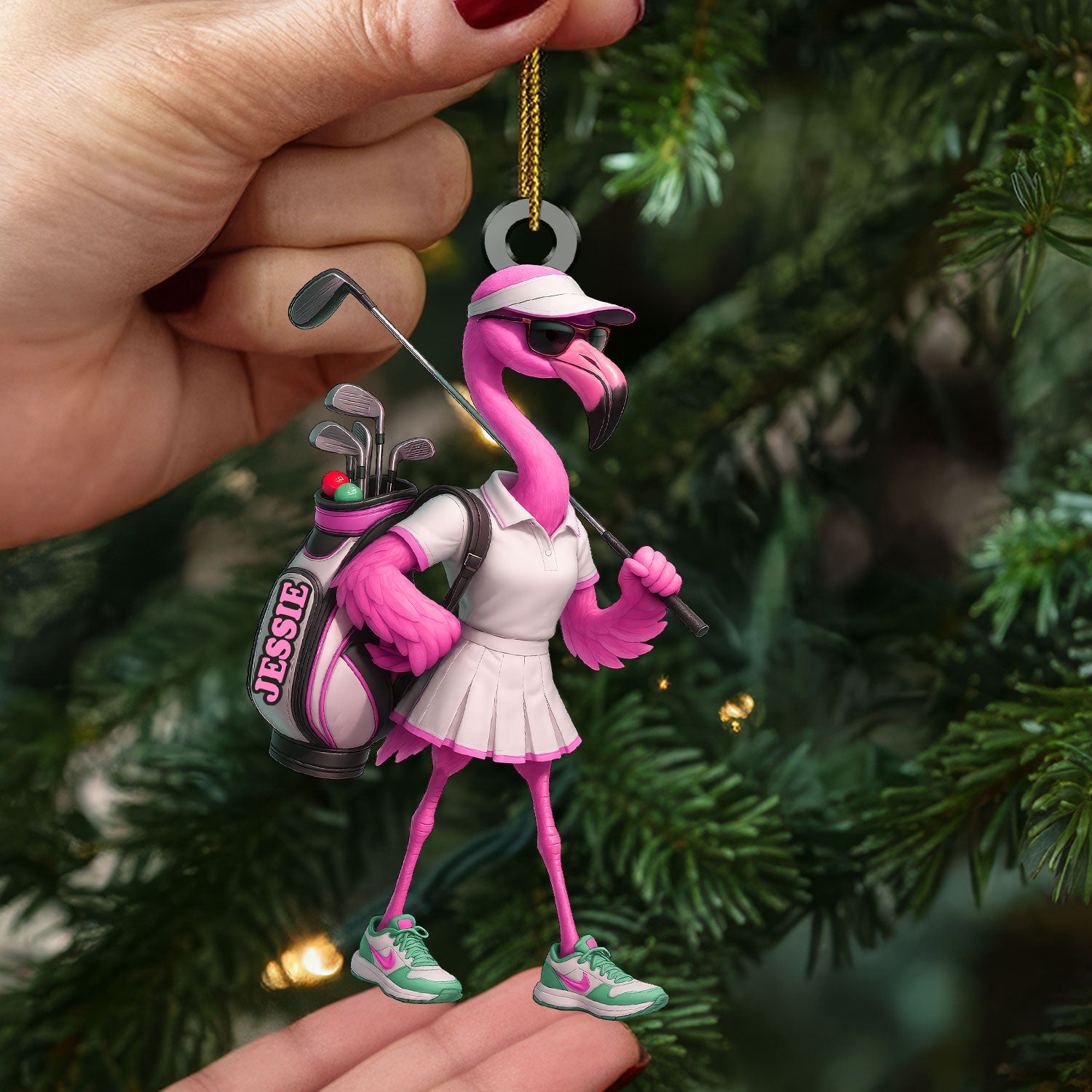 The Pink Flamingo Female Golfer Acrylic Ornaments, Golf Christmas Gifts, Funny Golf Presents