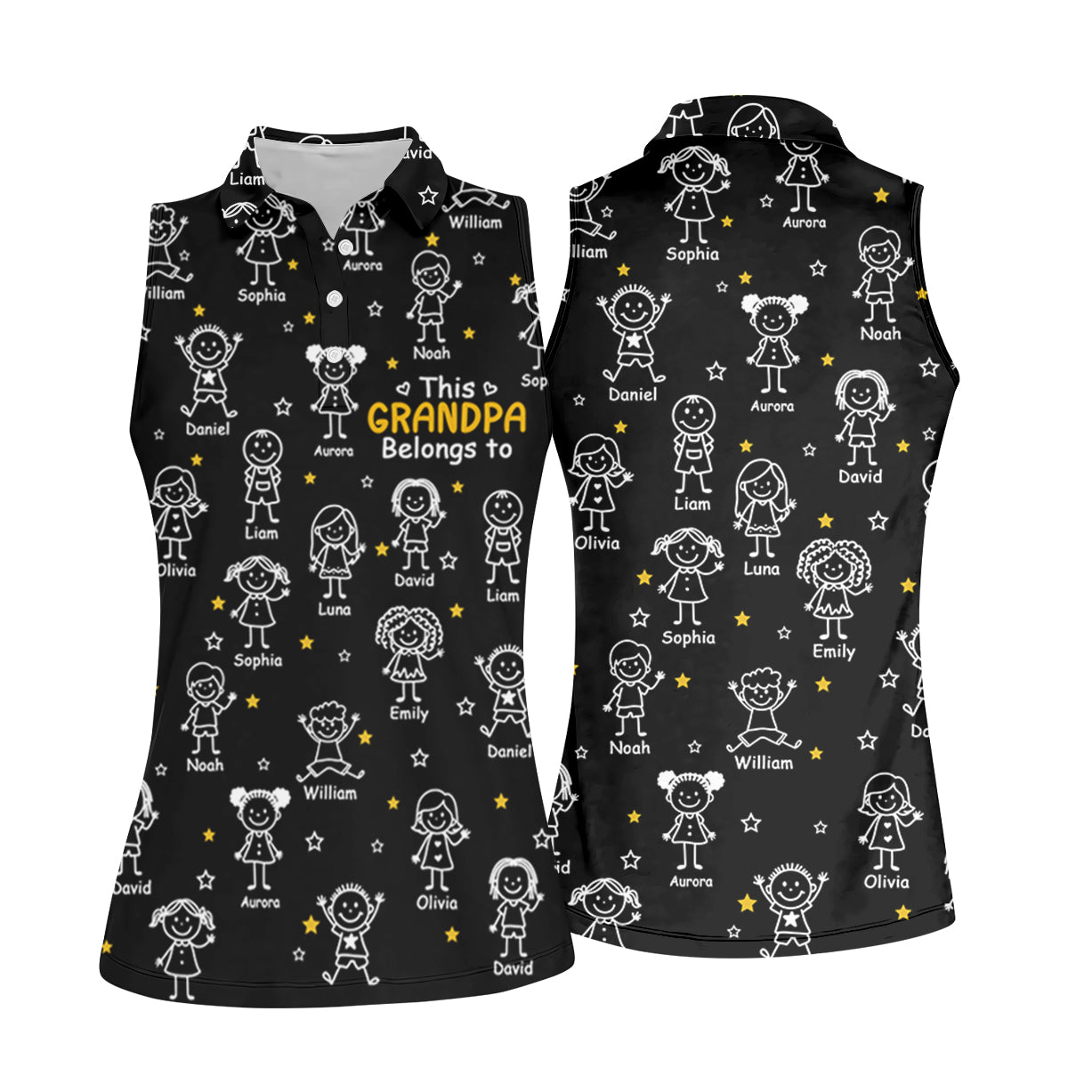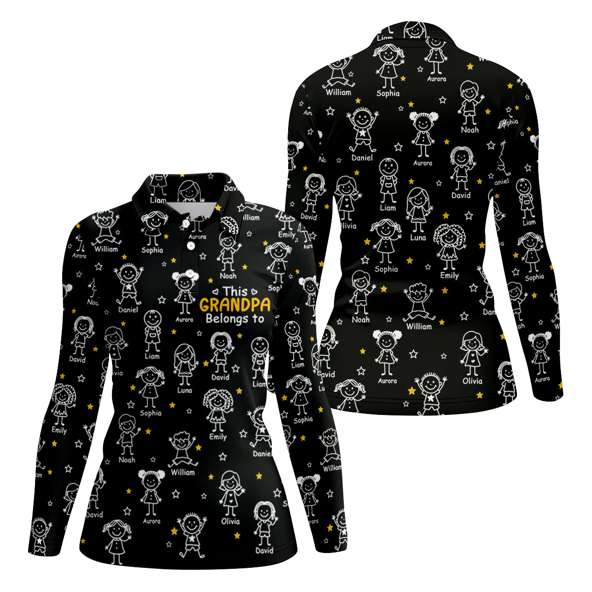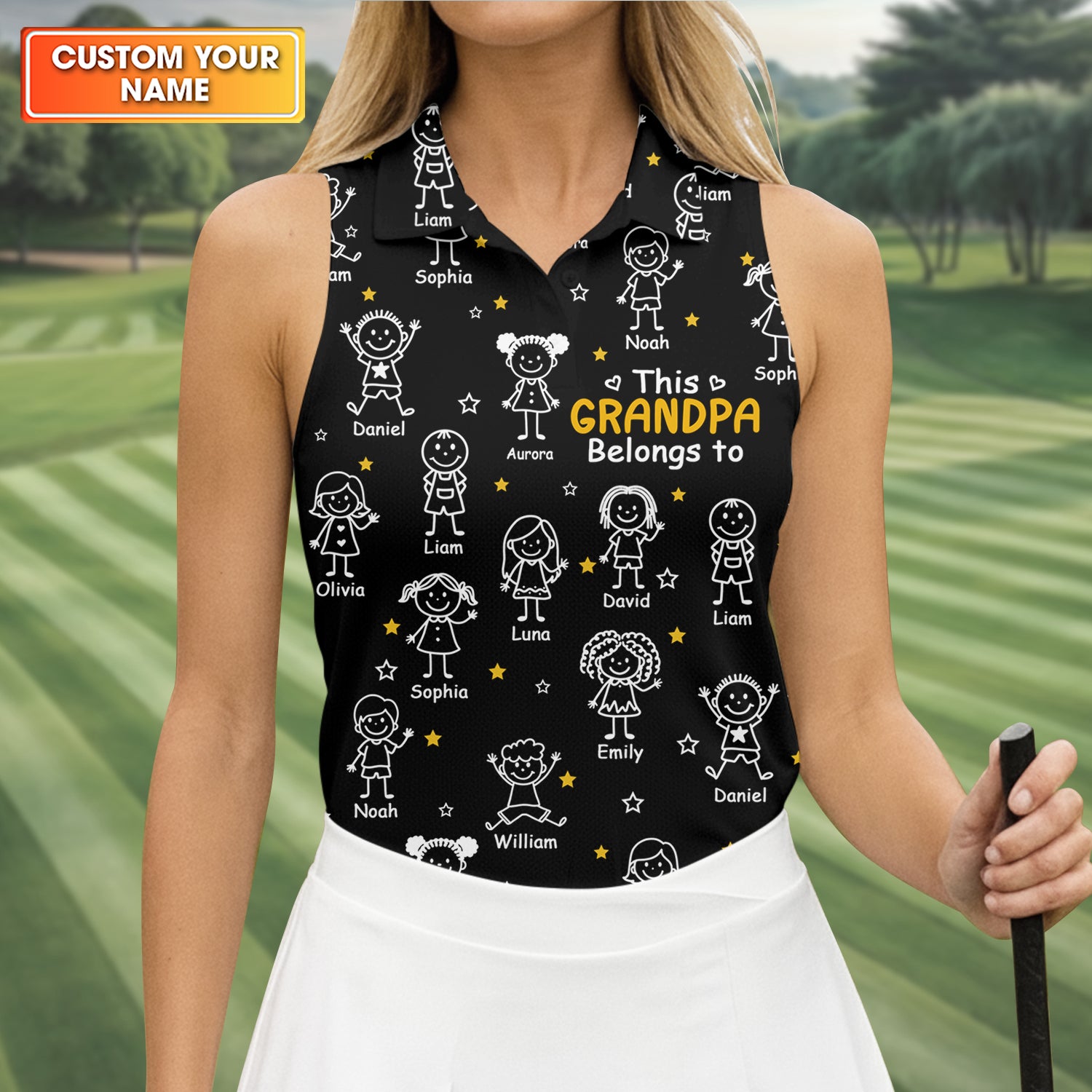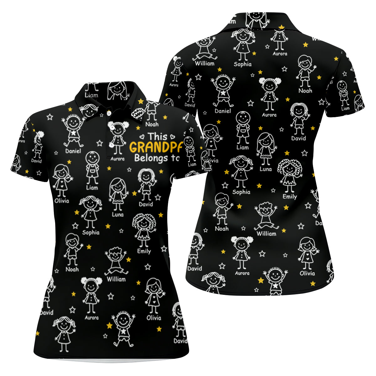 This Grandpa Dad Belongs To Kids Pet Black Golf Shirt, Ladies Golf Tops, Women Golf Top, Golfing Apparel