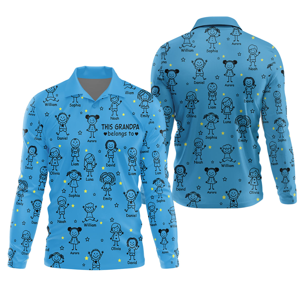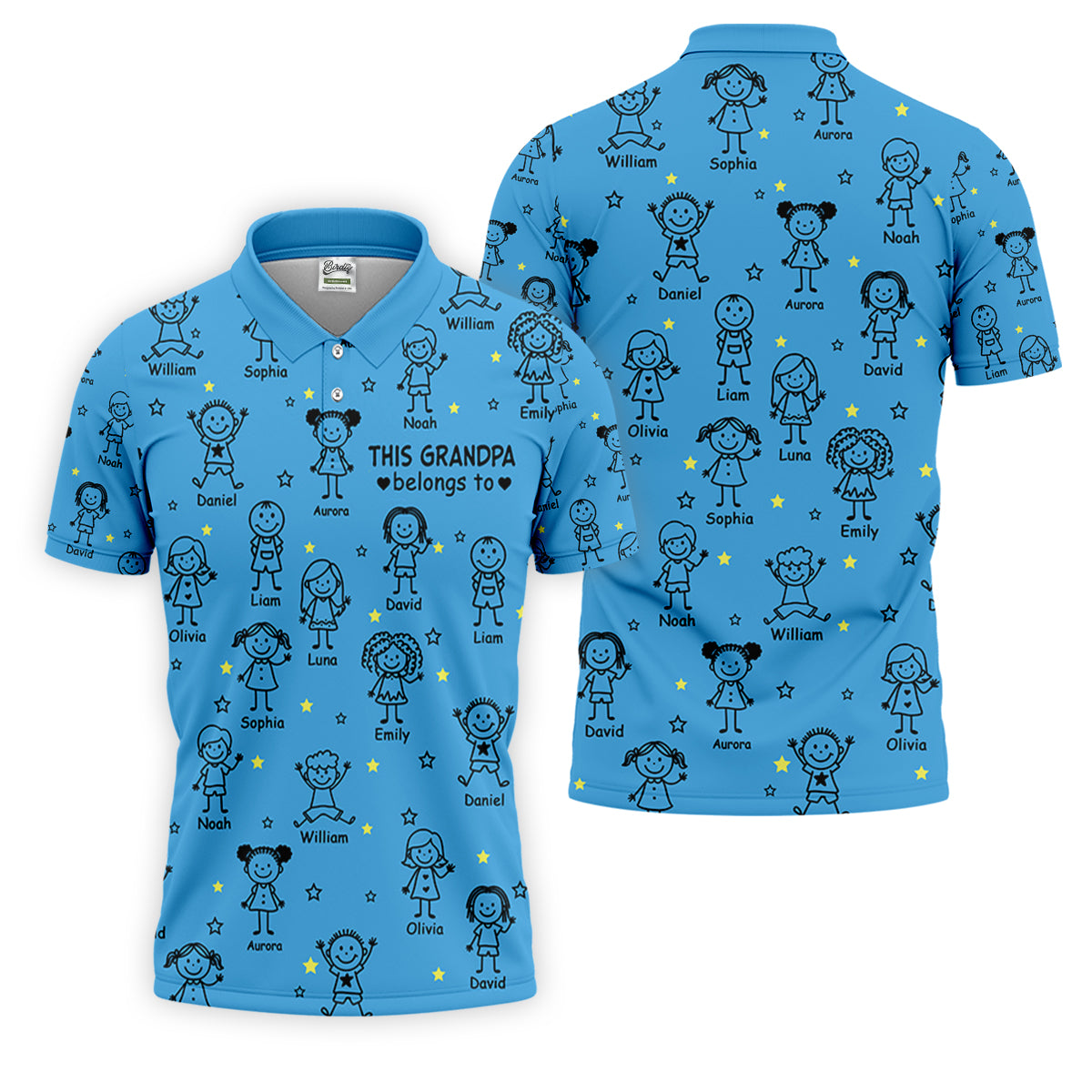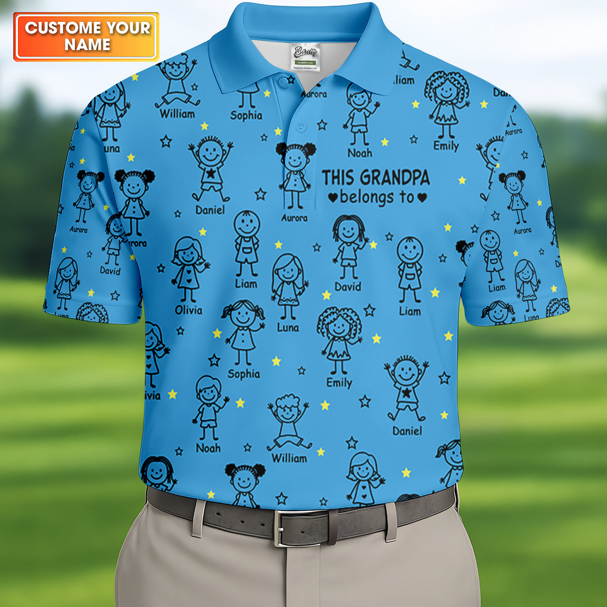 This Grandpa Dad Belongs To Kids Pet Blue Golf Shirt, Polo Shirts For Men, Golf Gift For Men