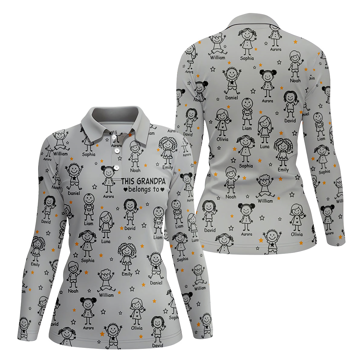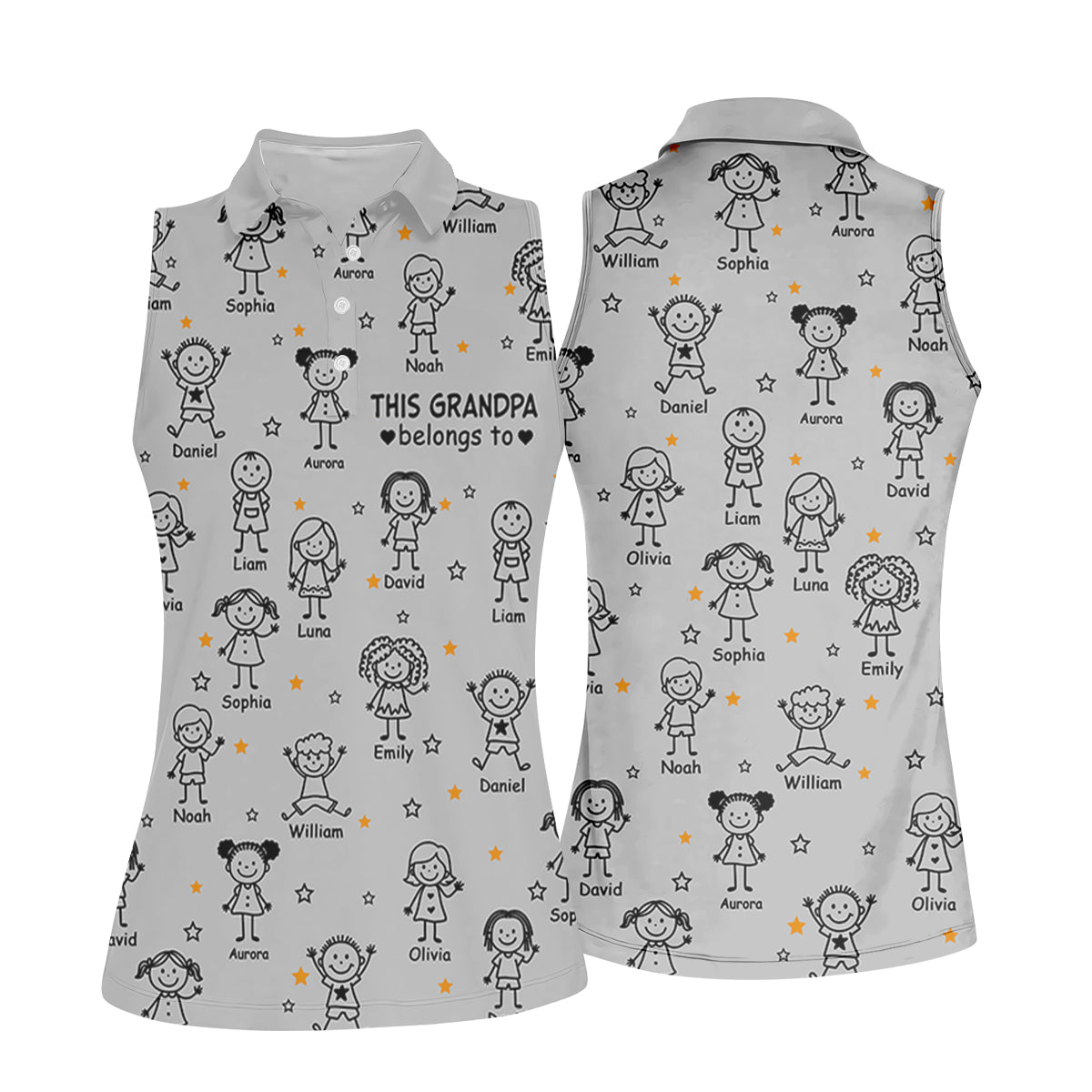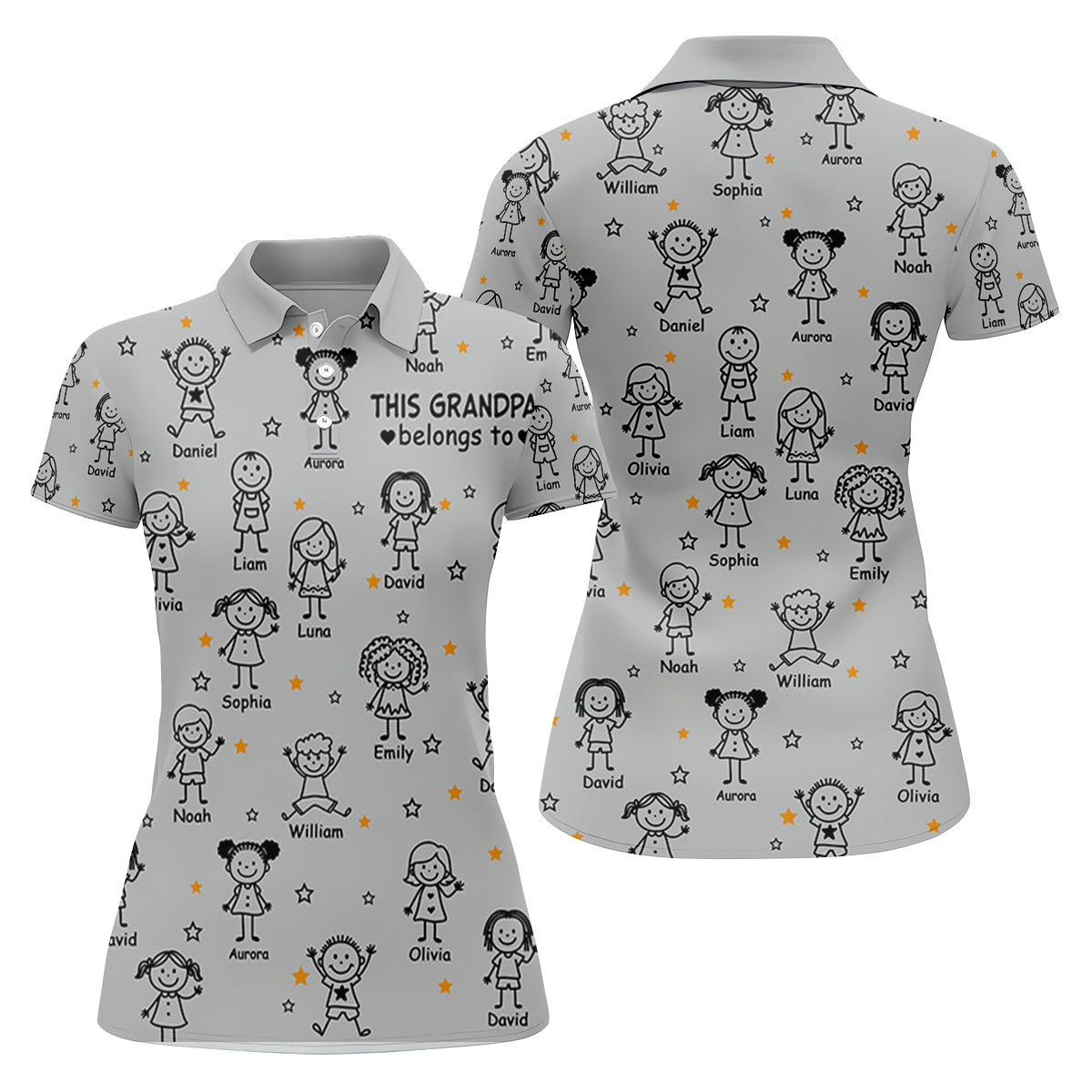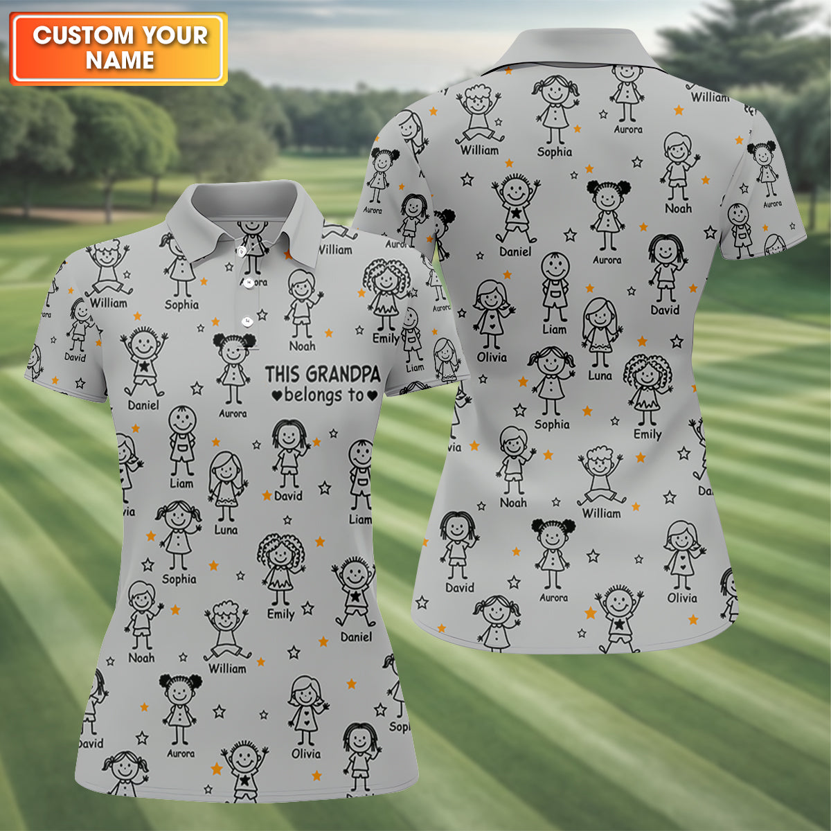 This Grandpa Dad Belongs To Kids Pet Grey Golf Shirt, Ladies Golf Tops, Women Golf Top, Golfing Apparel