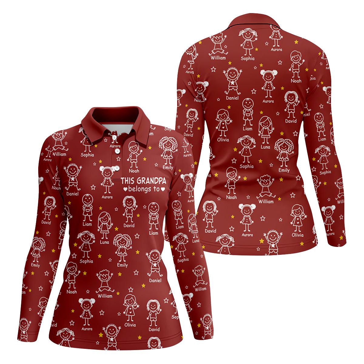 This Grandpa Dad Belongs To Kids Pet Red Golf Shirt, Ladies Golf Tops, Women Golf Top, Golfing Apparel