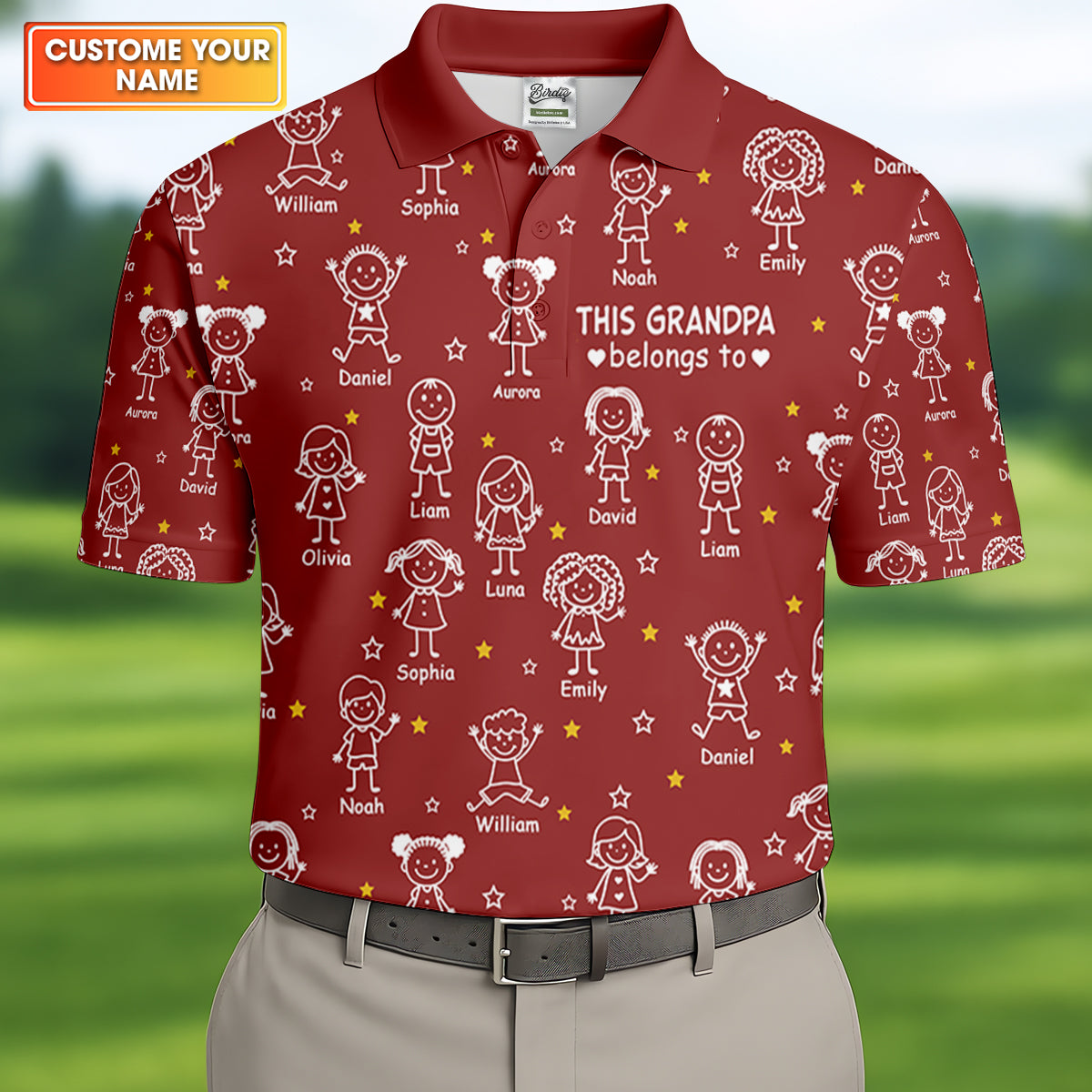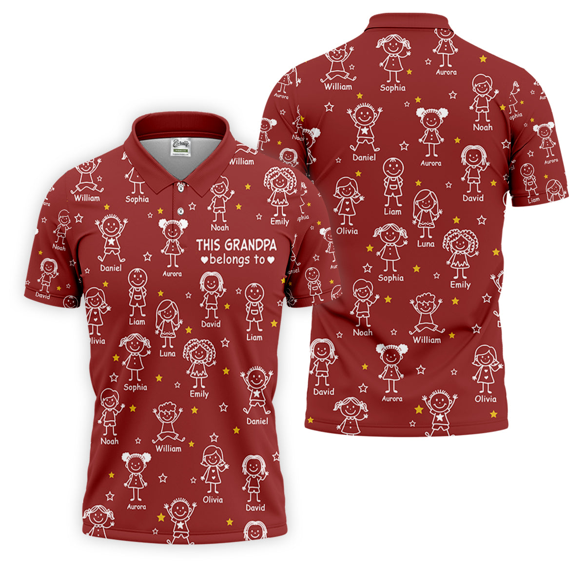 This Grandpa Dad Belongs To Kids Pet Red Golf Shirt, Polo Shirts For Men, Golf Gift For Men