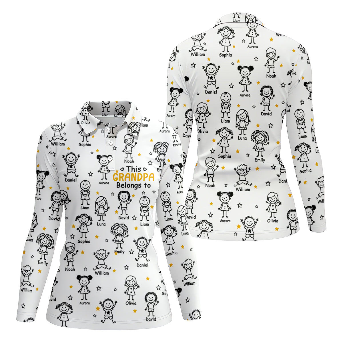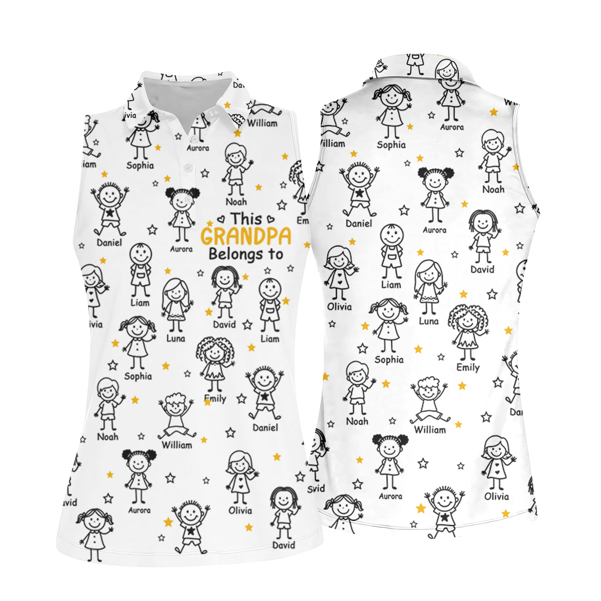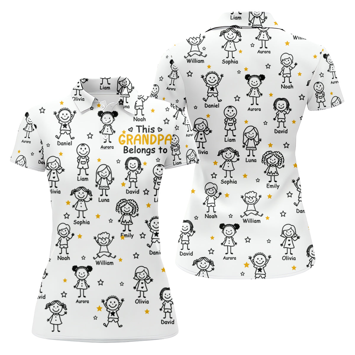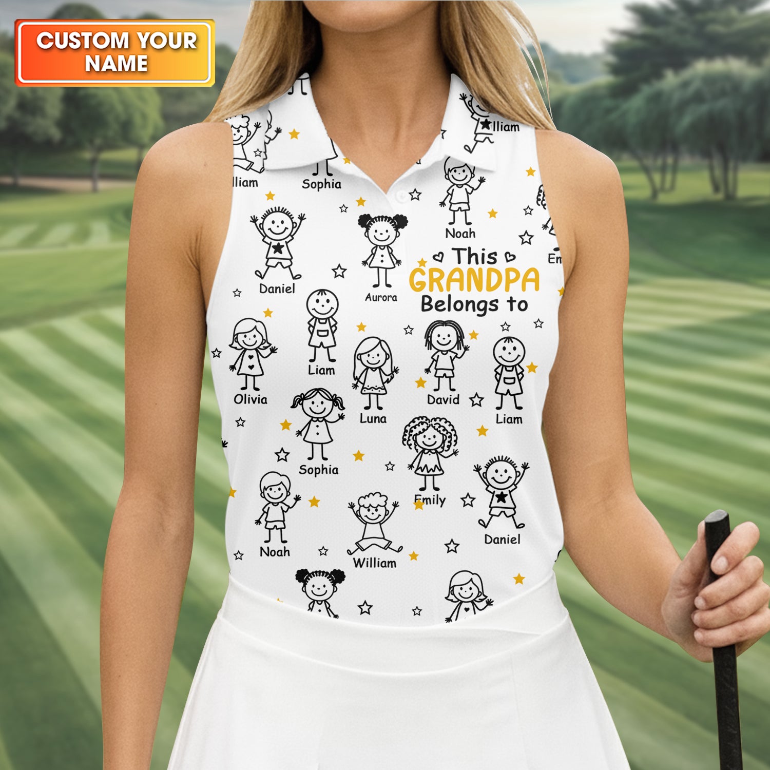 This Grandpa Dad Belongs To Kids Pet White Golf Shirt, Ladies Golf Tops, Women Golf Top, Golfing Apparel