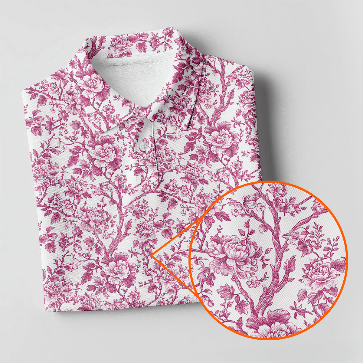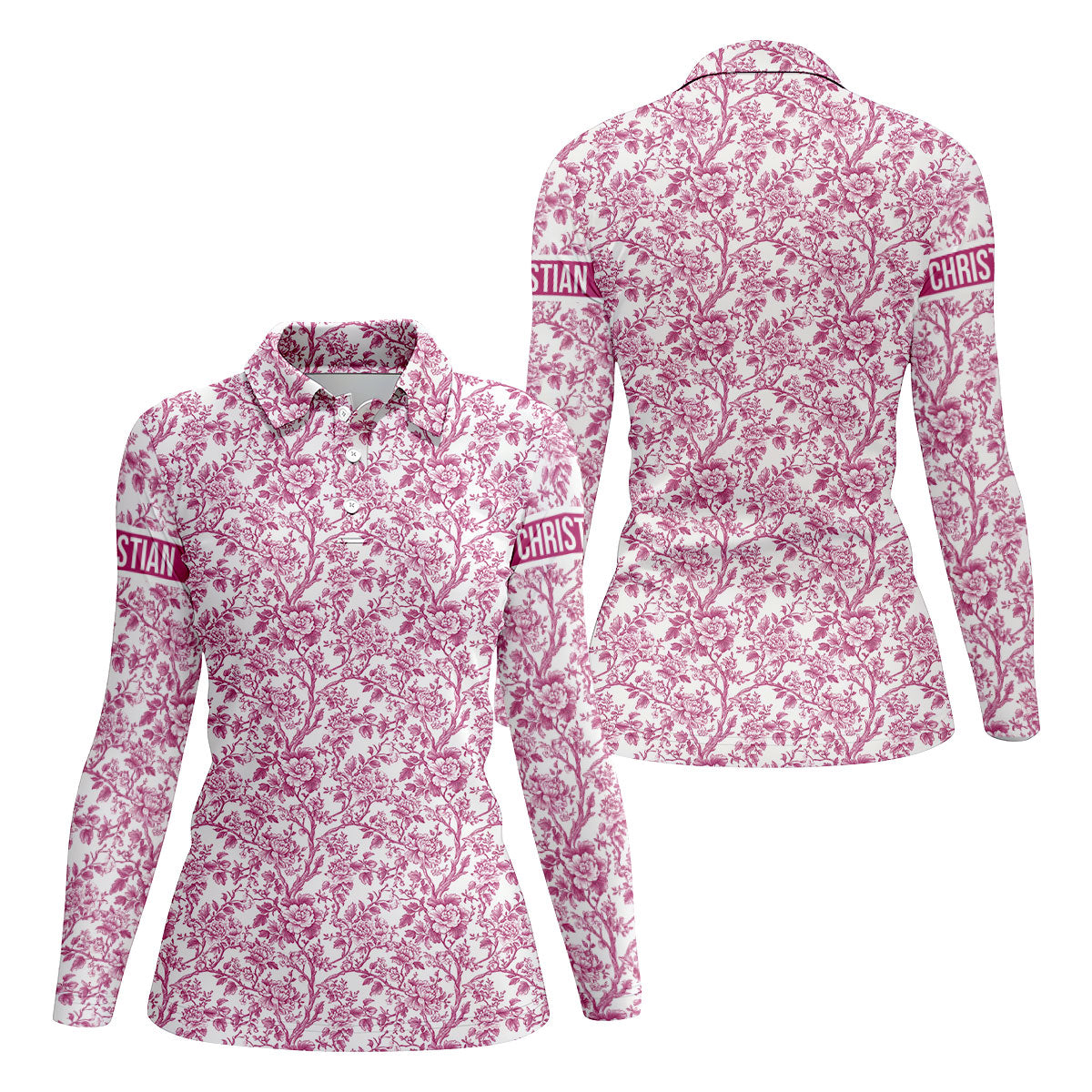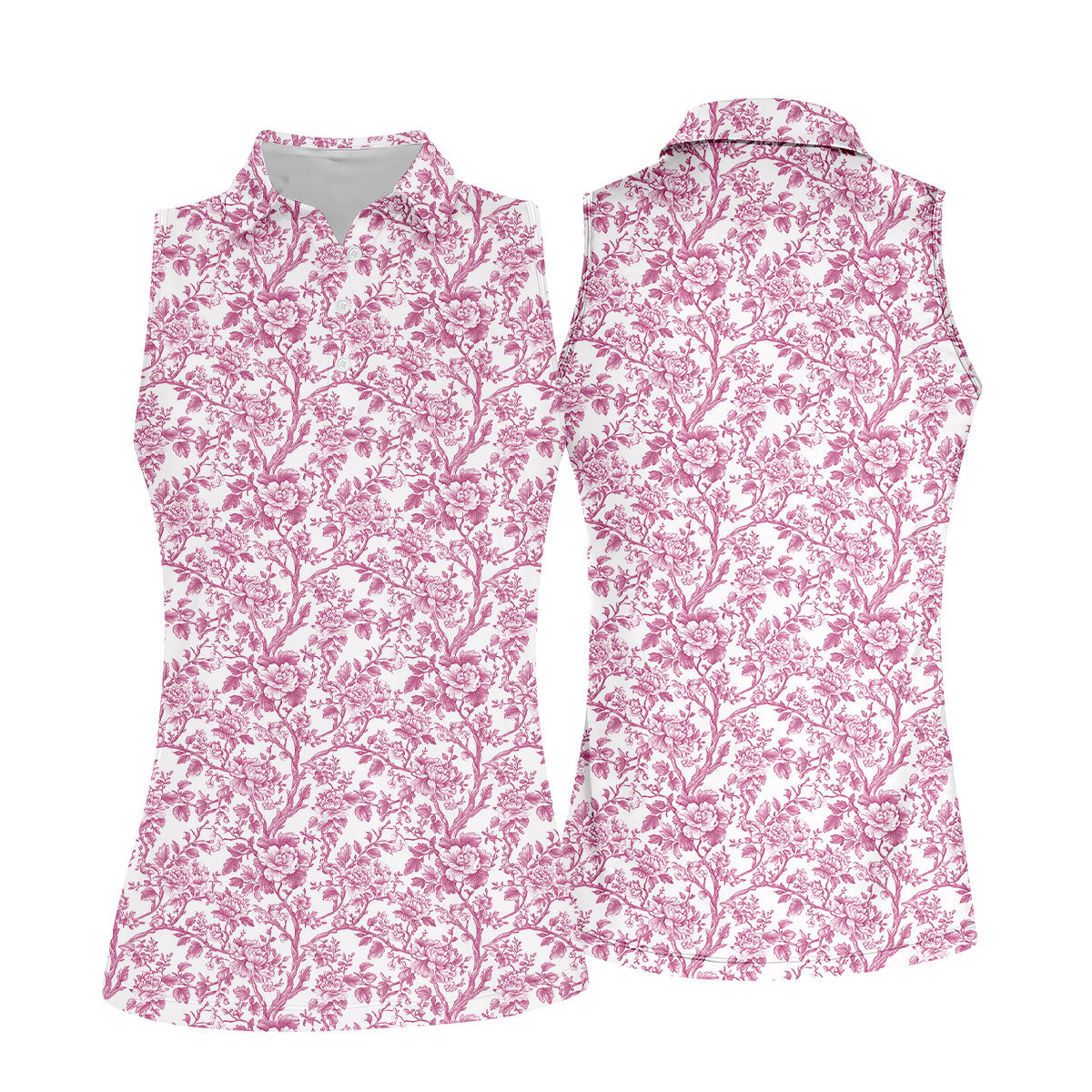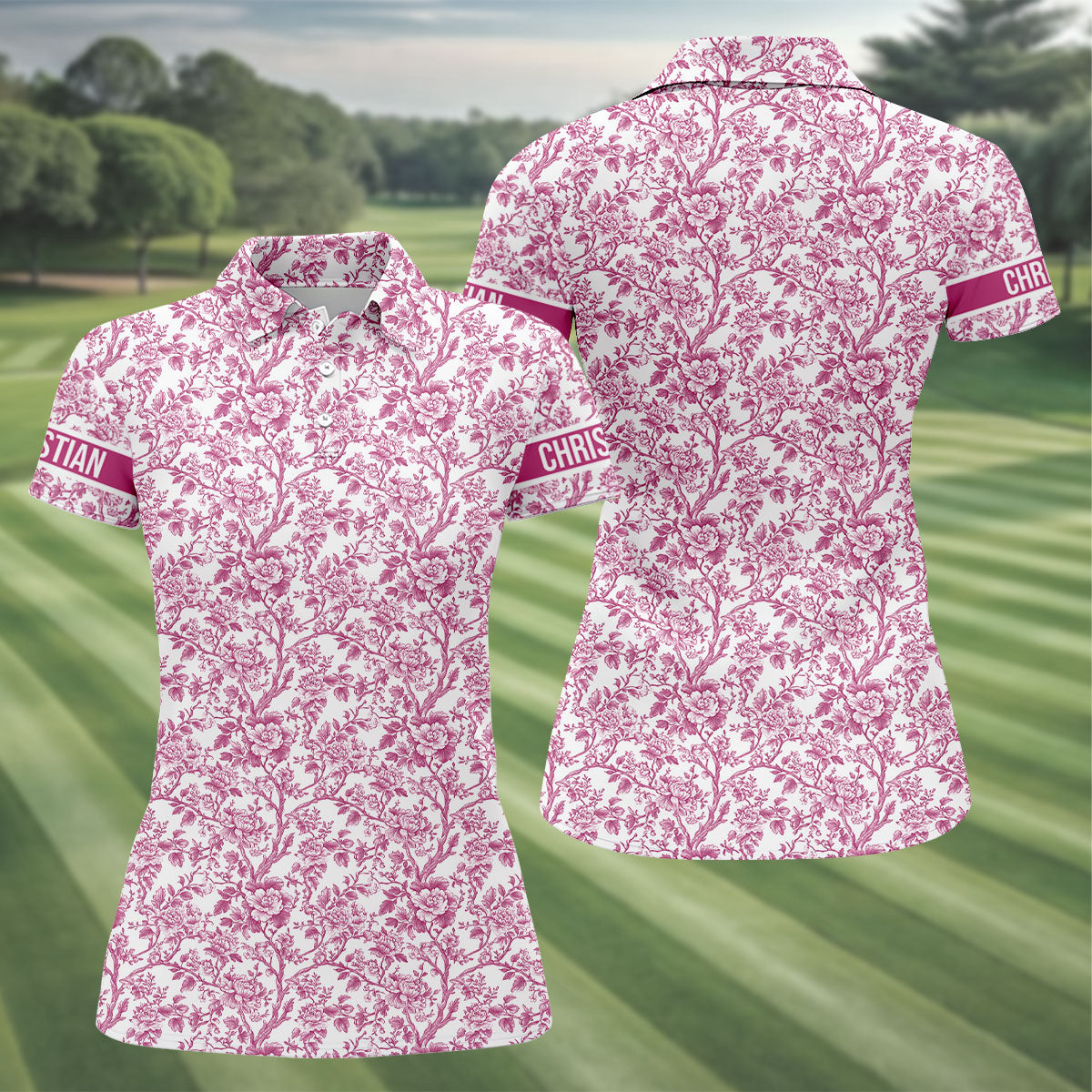 Toile De Jouy Pink Golf Shirt, Women's Golf Tops, Ladies Golf Shirts, Golf Gift For Ladies, Golf Shirt For Women