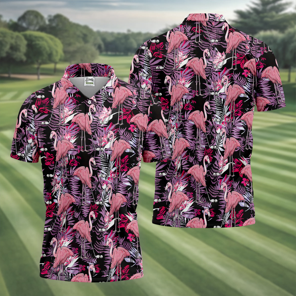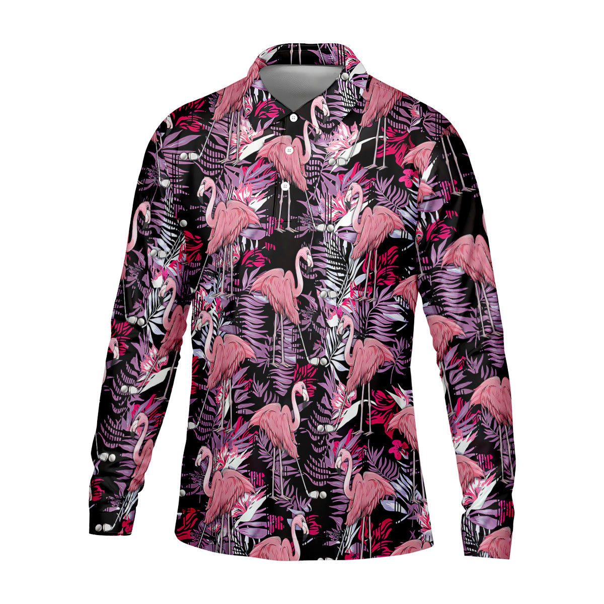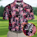 Tropical Flamingo Purple Golf Shirt, Golf Tops For Men, Polo Shirts For Men, Golfing Apparel