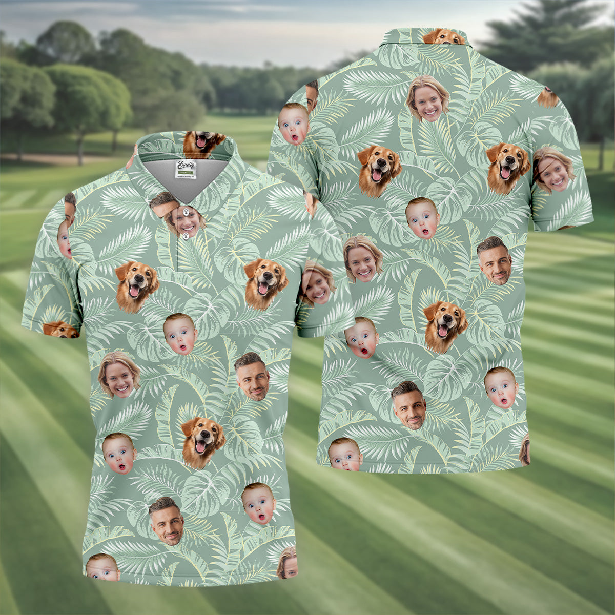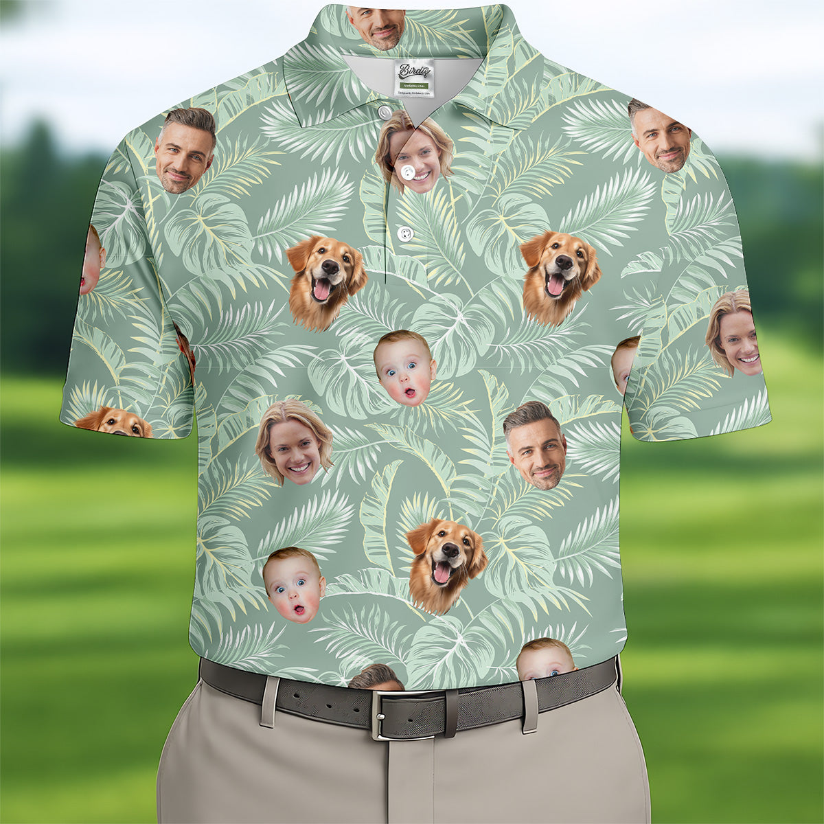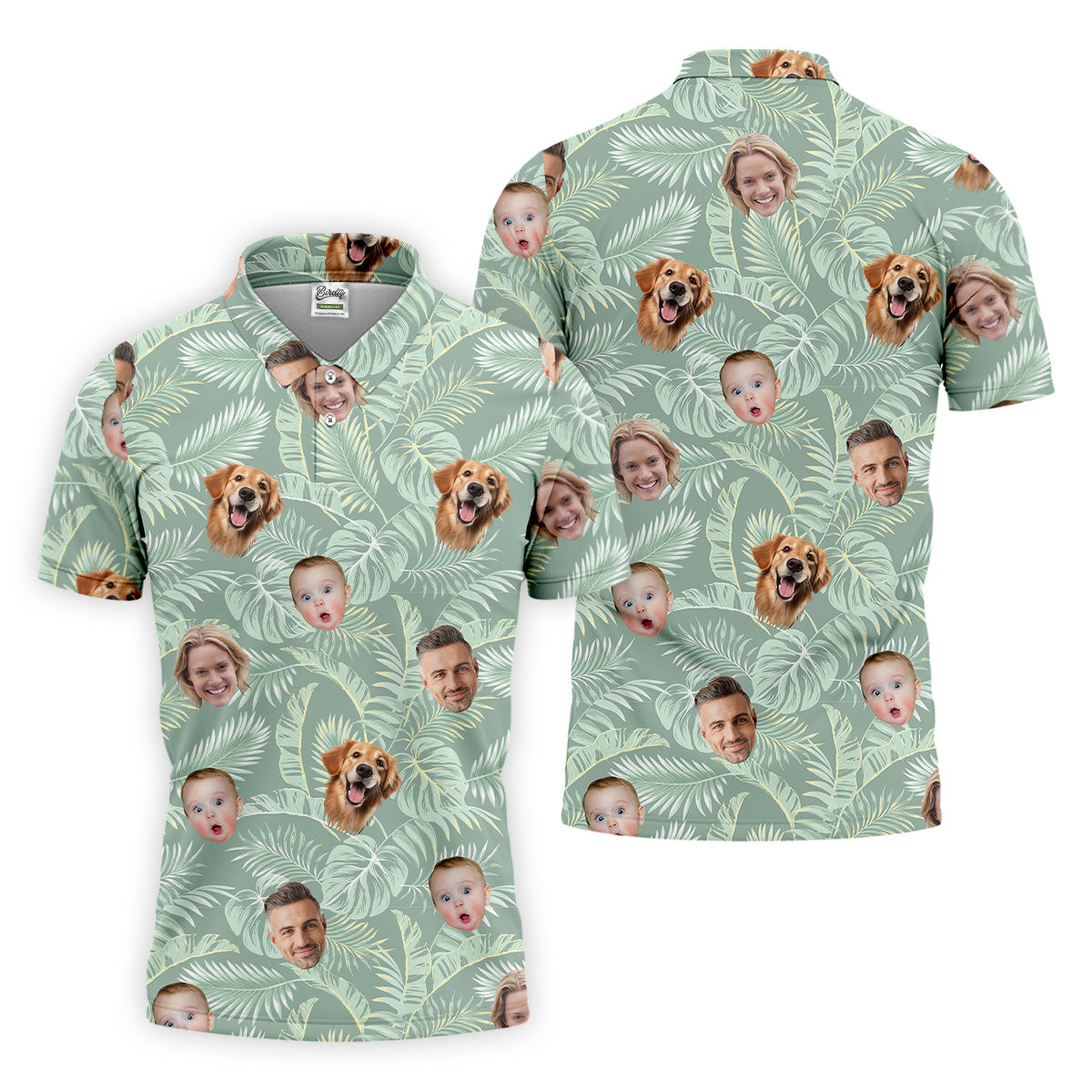 Tropical Leaf Pattern Mens Hawaiian Golf Shirts, Custom Team Shirt, Green Polo Shirt, Best Gifts For Men Golfers