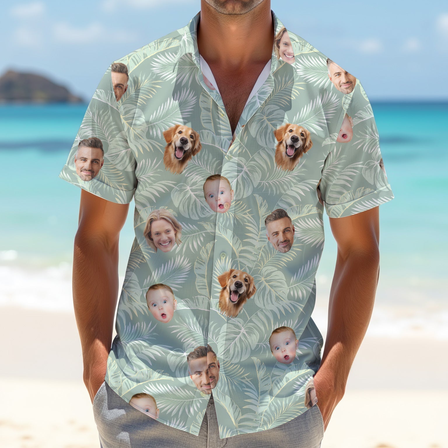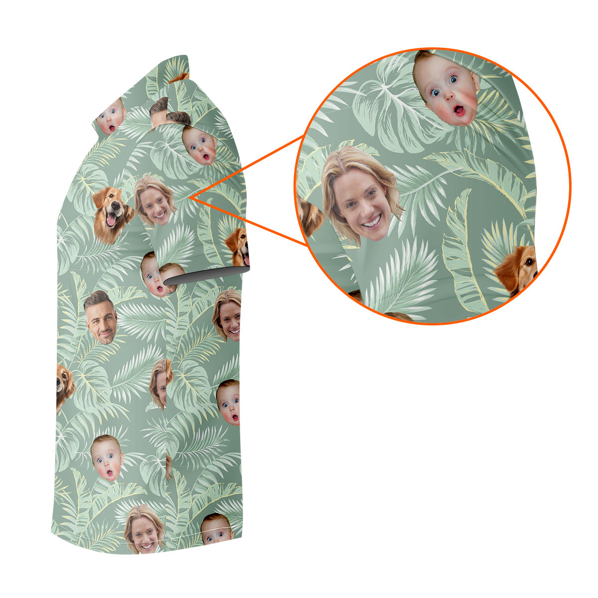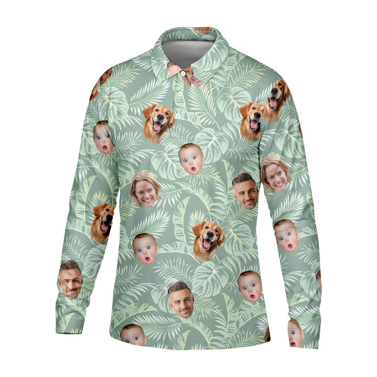 Tropical Leaf Pattern Mens Hawaiian Golf Shirts, Custom Team Shirt, Green Polo Shirt, Best Gifts For Men Golfers