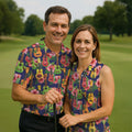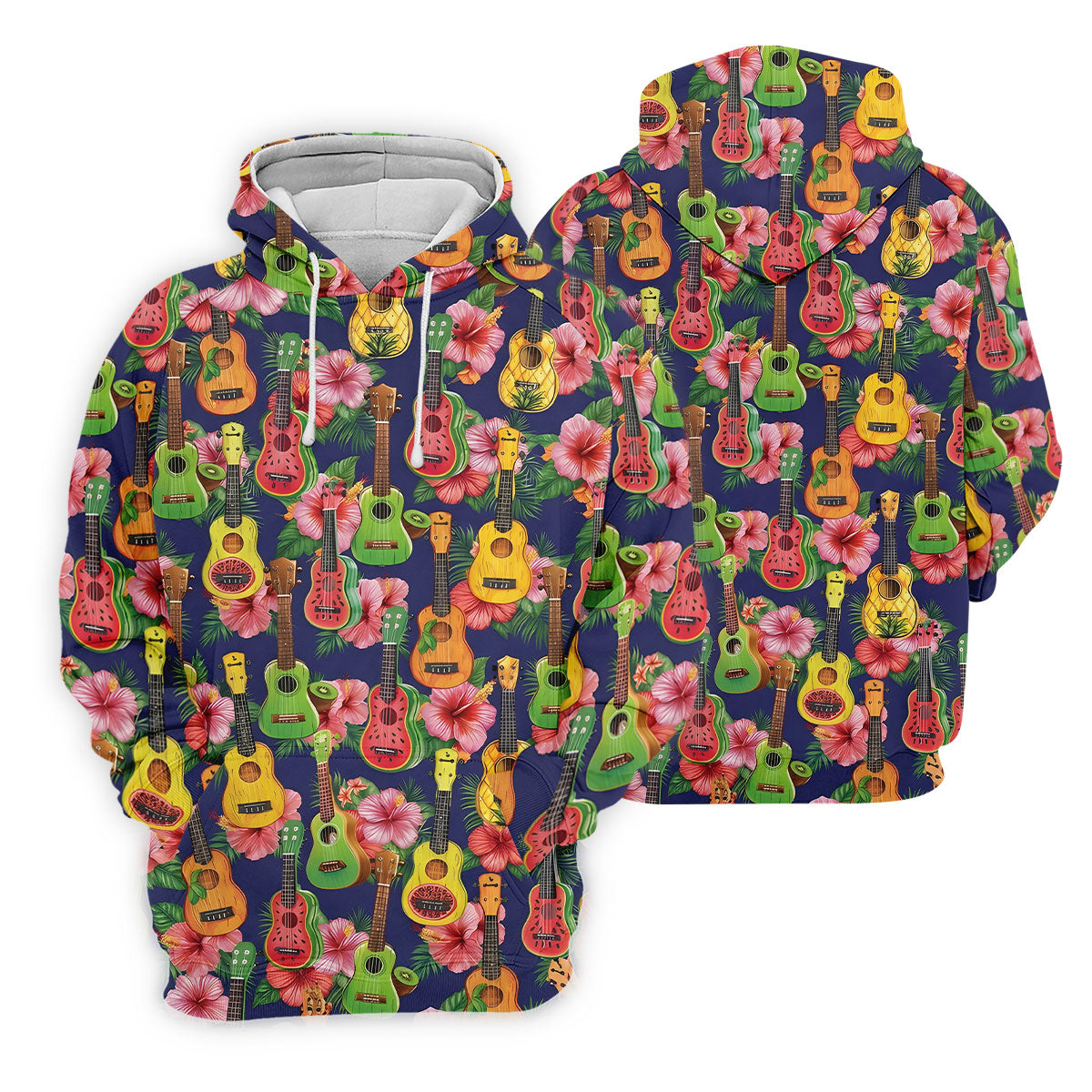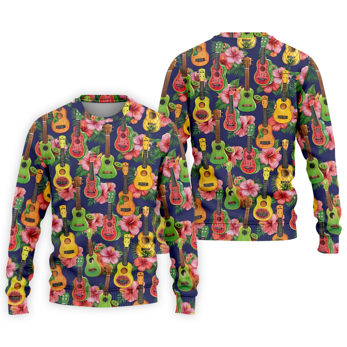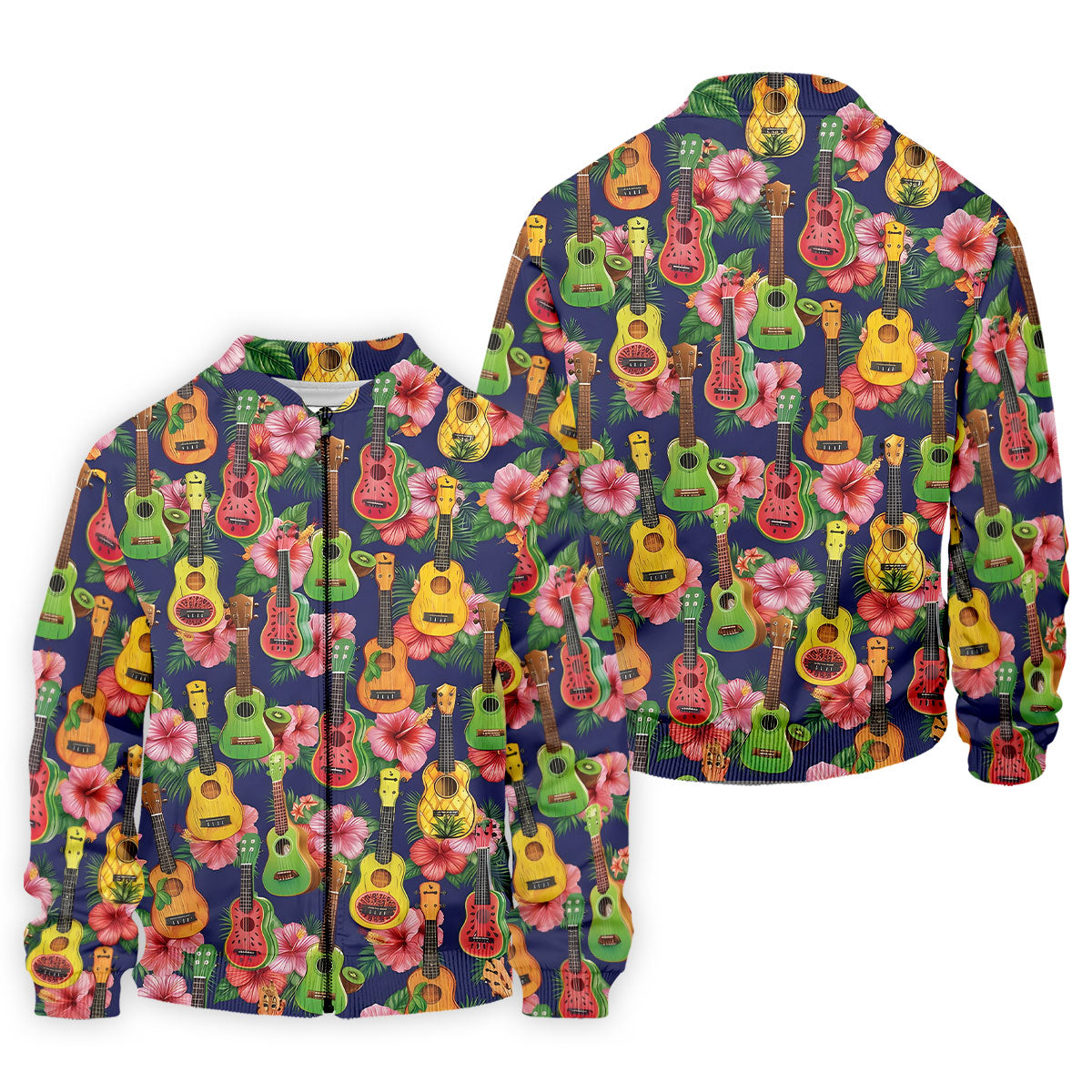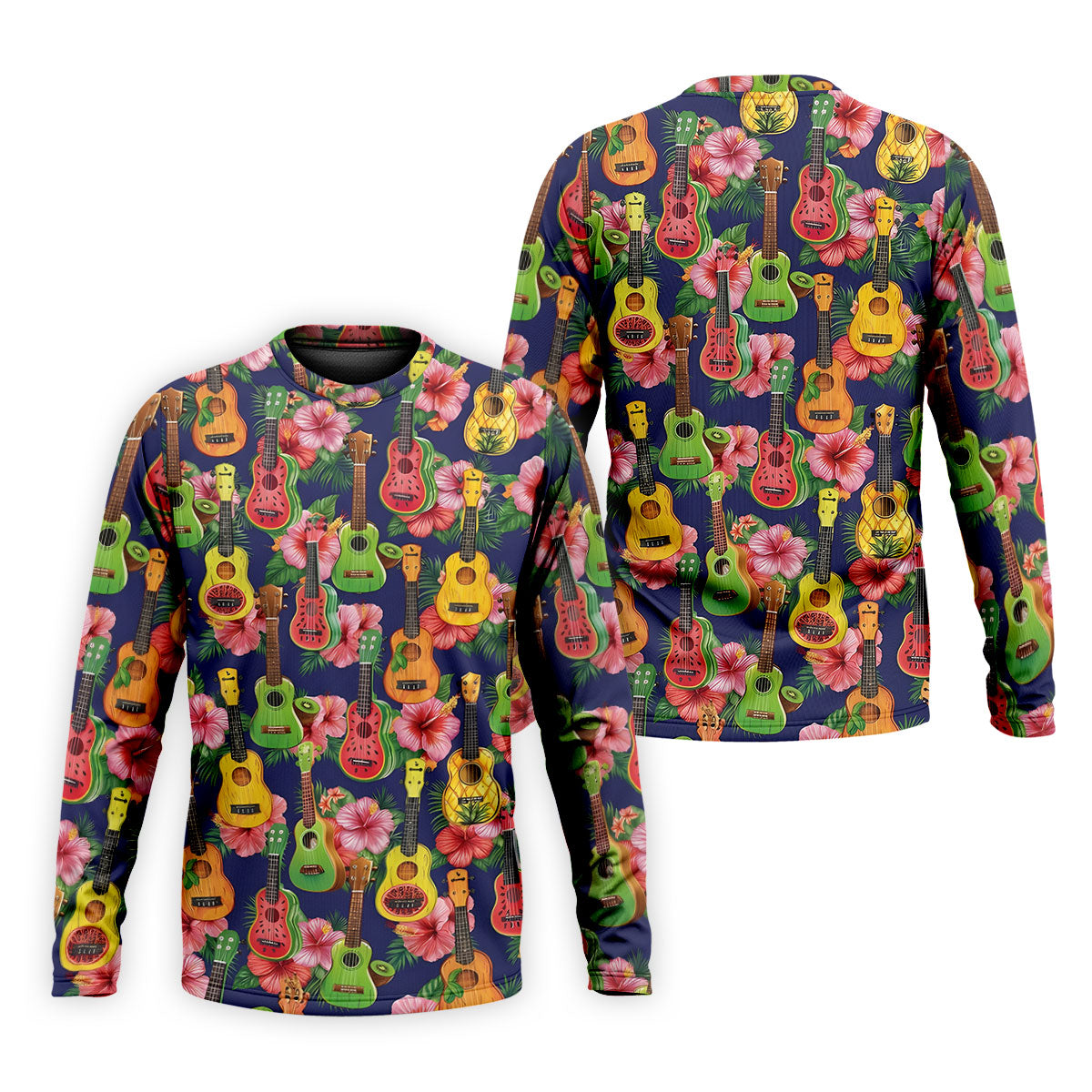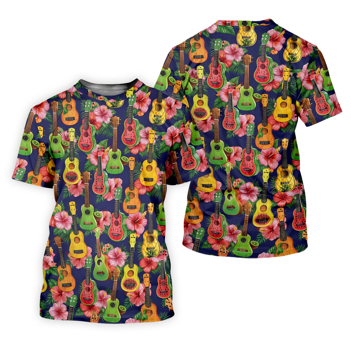 Tropical Ukulele Fruit Pattern 250 Retro Golf Shirt, Hawaiian Vibe Golf Shirts For Men