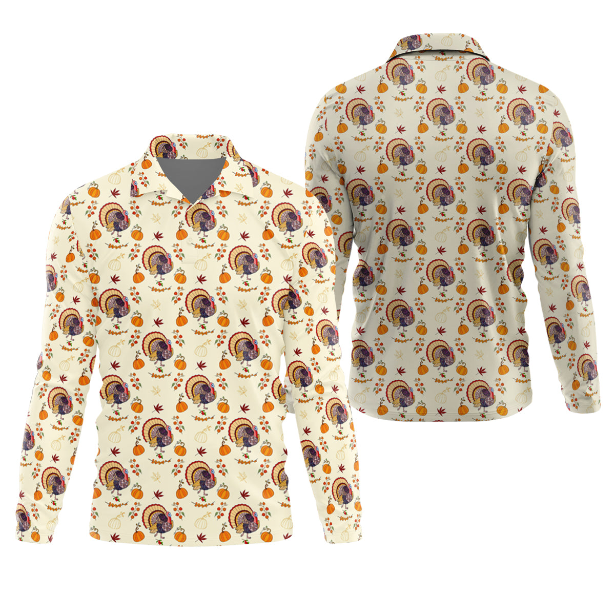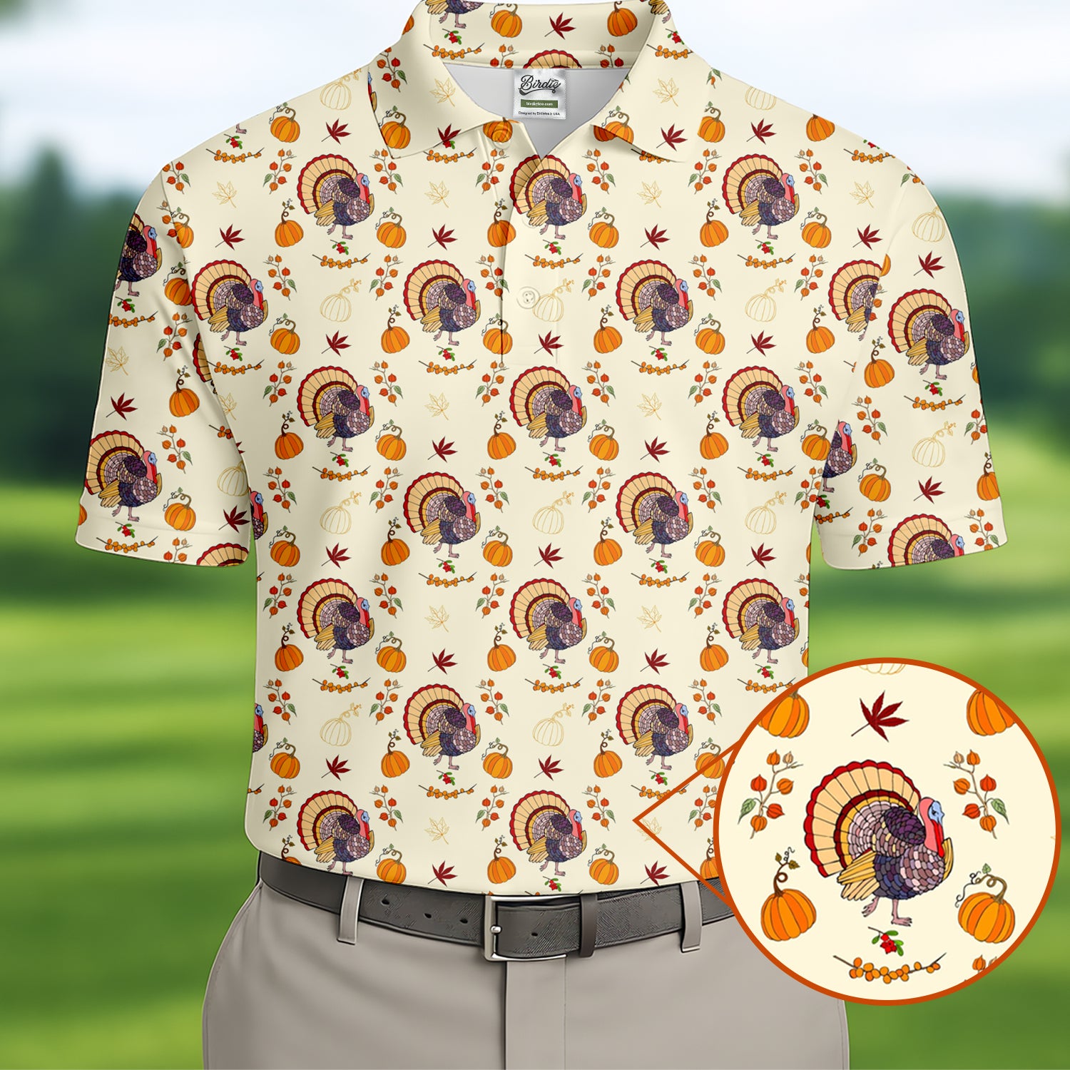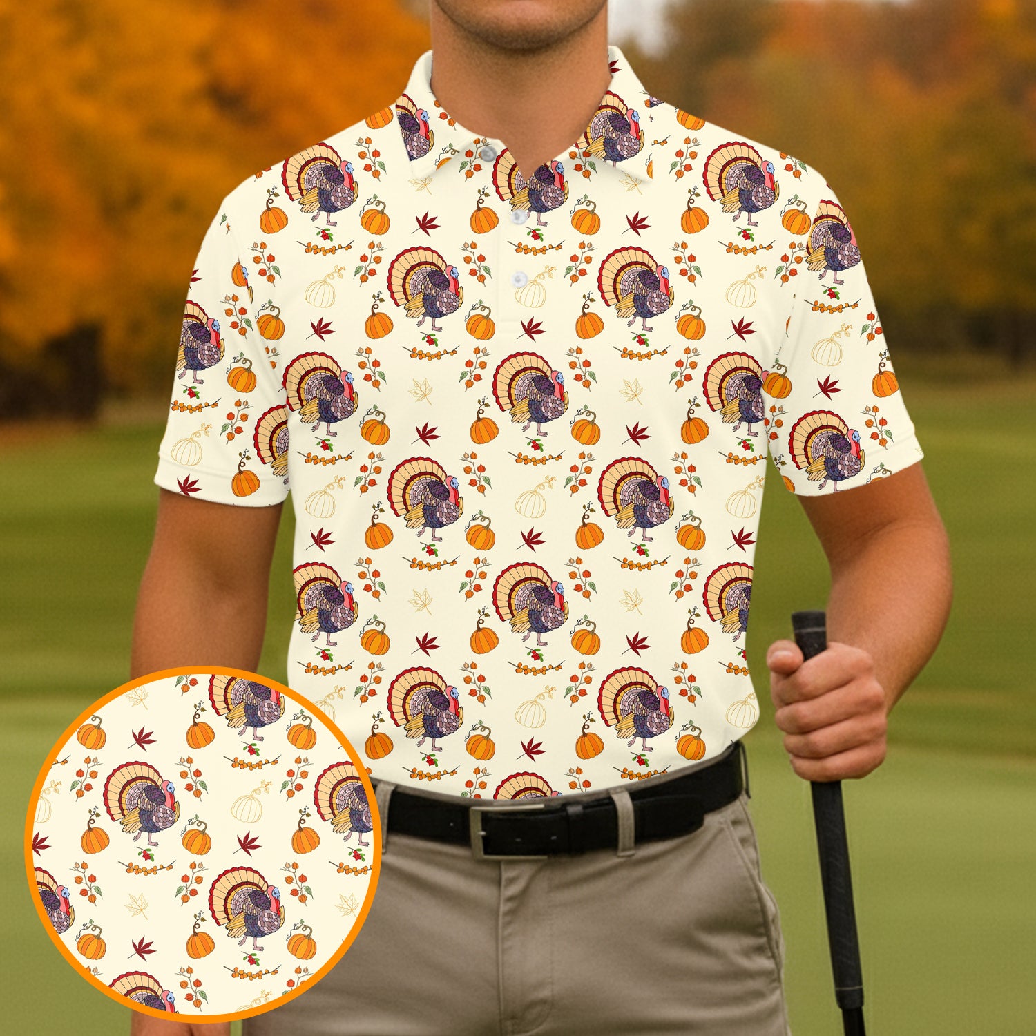 Turkey Pumpkin Thanksgiving Holiday Beige Golf Tops For Men, Polo Shirts For Men, Golf Gift For Men, Golfing Apparel
