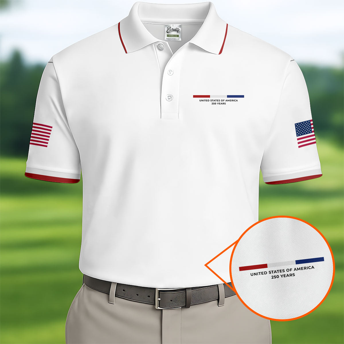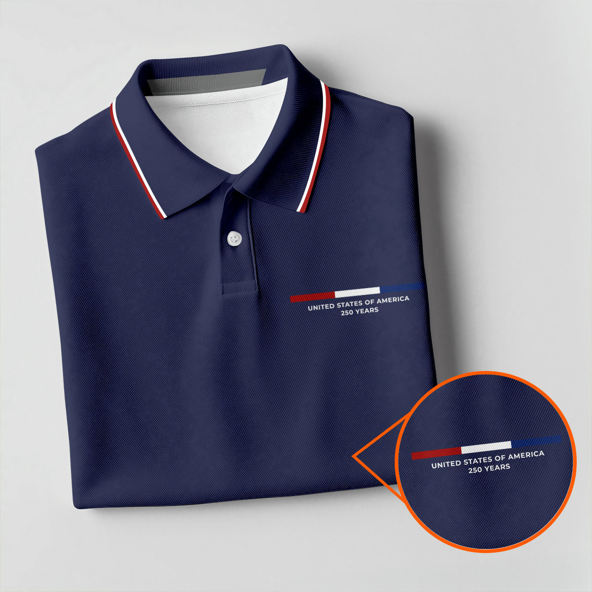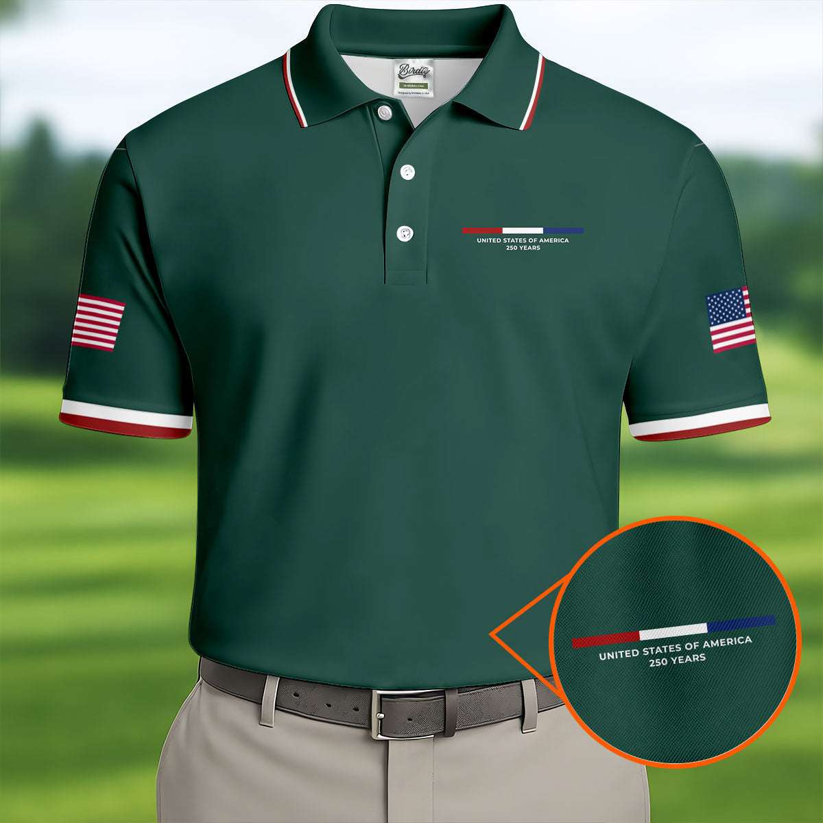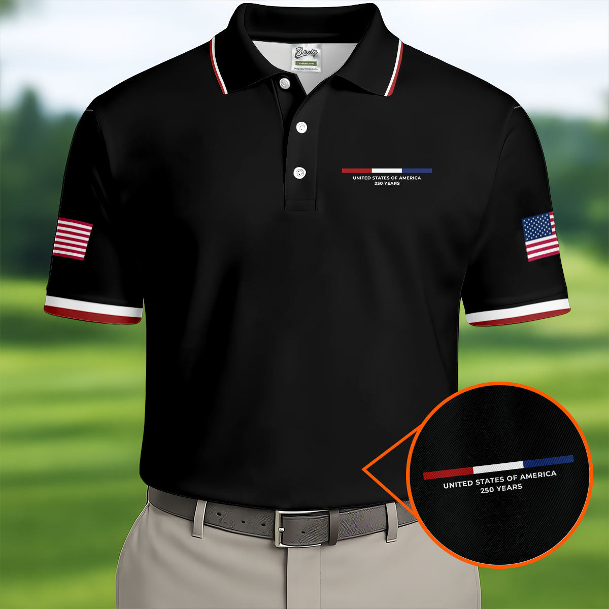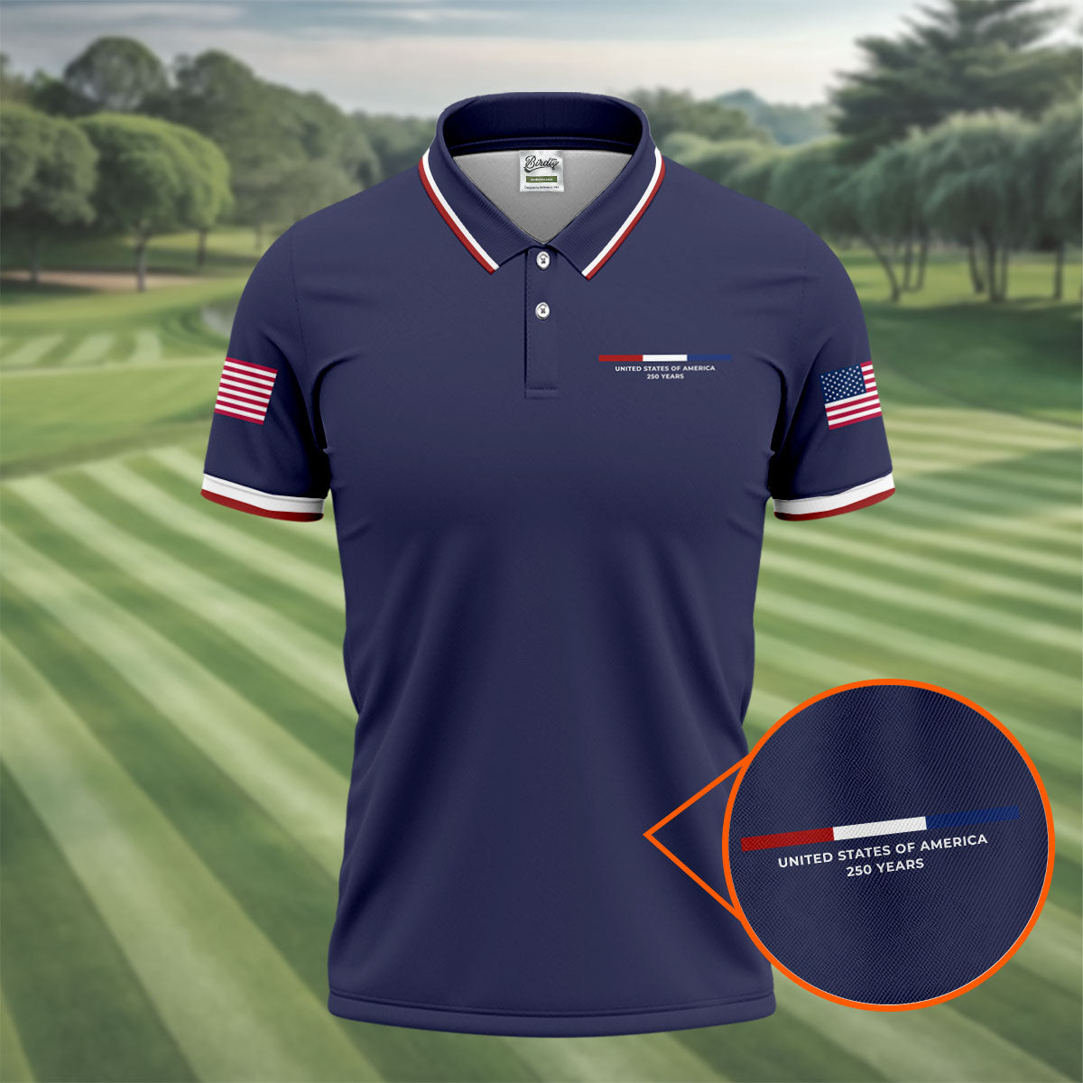 United States Of America 250 Years Navy Golf Shirt, Patriotic Golf Shirt, Golf Shirts For Men, 4th Of July Golf Shirt