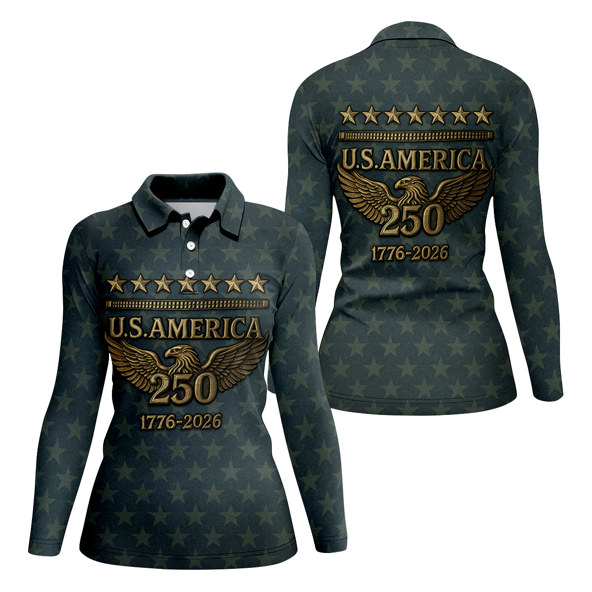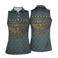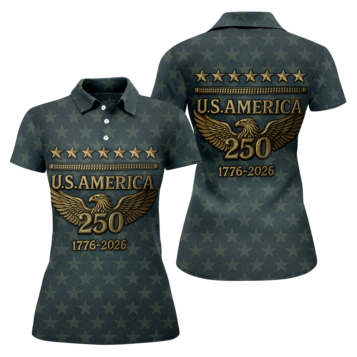 US America 250th Anniversary Denim Color Star Pattern Women's Golf Tops, Patriotic Golf Shirt, Ladies Golf Shirts