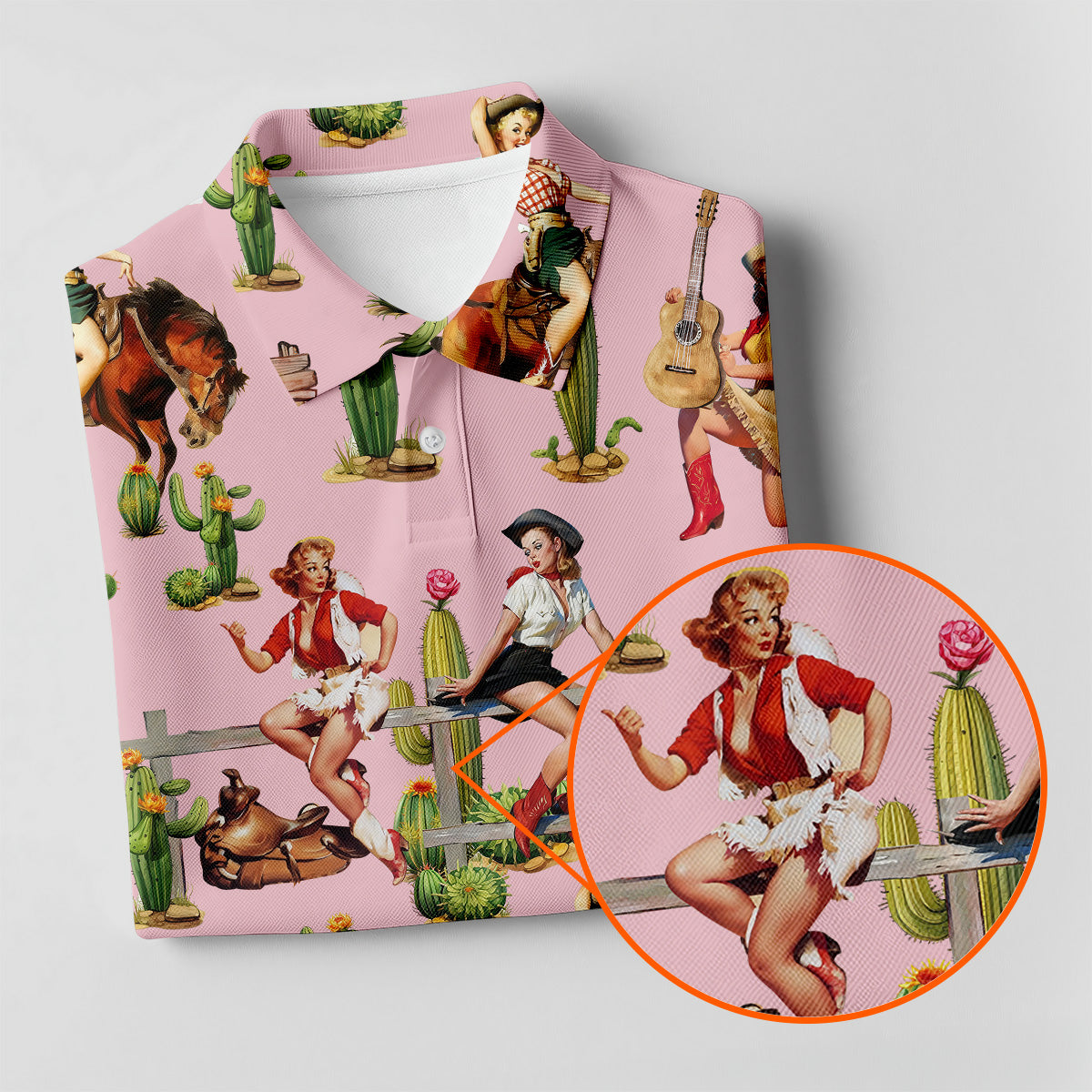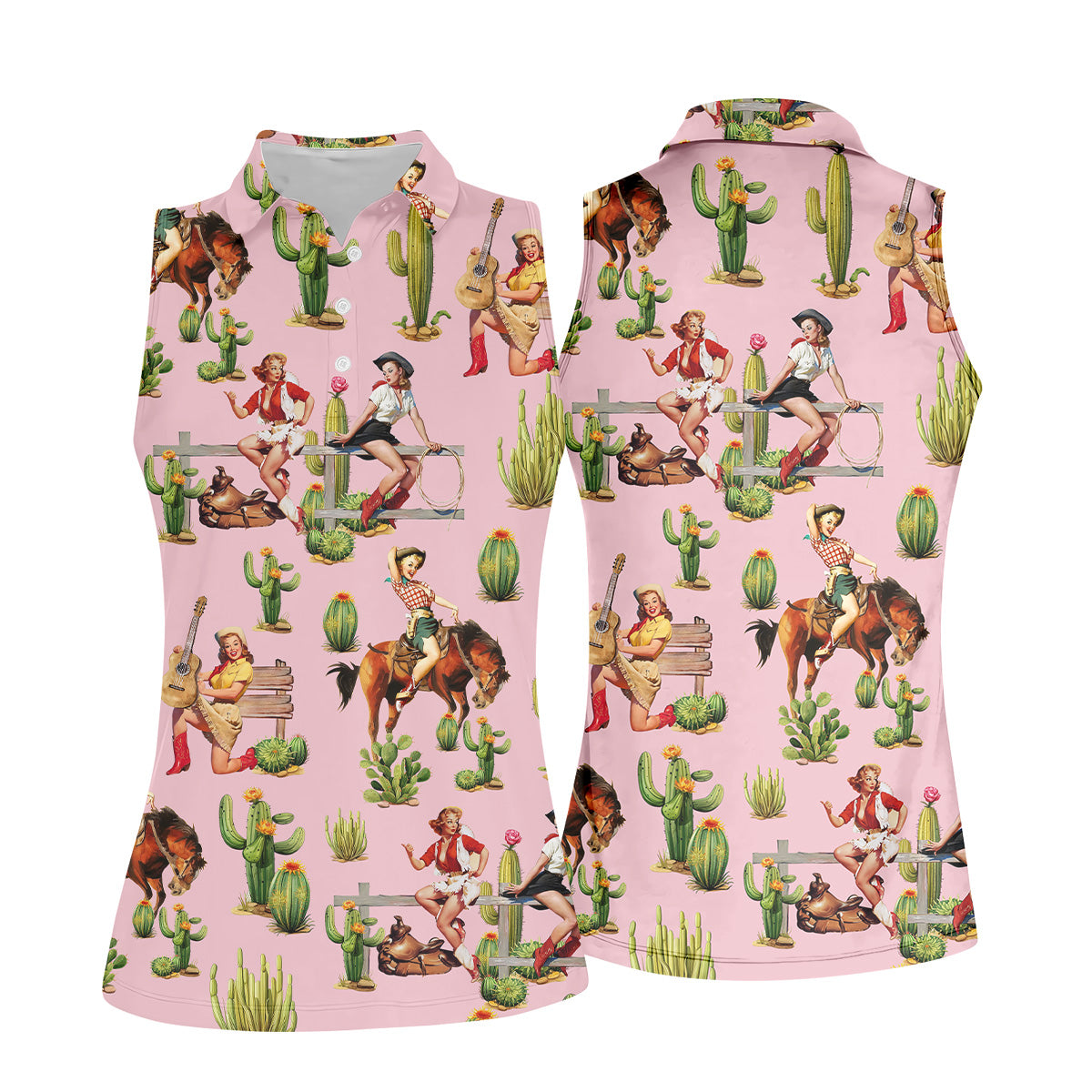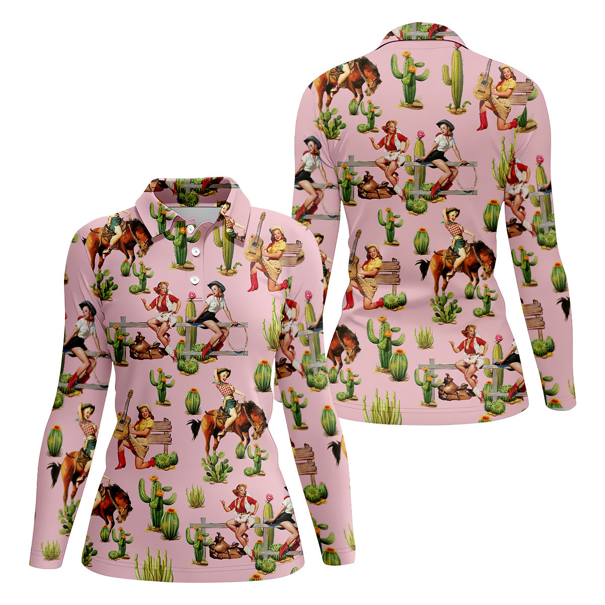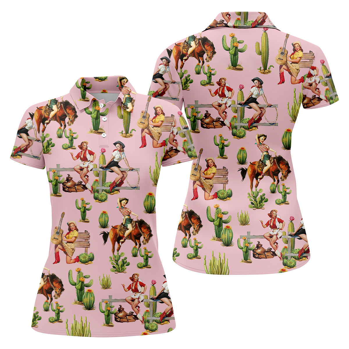 Vintage Cowgirl Pink Women's Golf Polo, Western Rodeo Women Golf Top, Cute Golf Outfit, Golfing Apparel