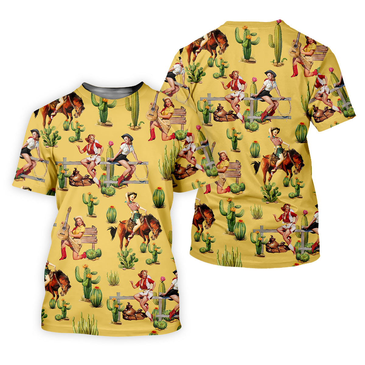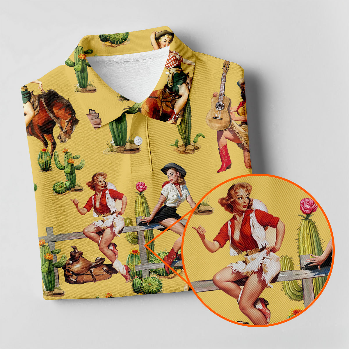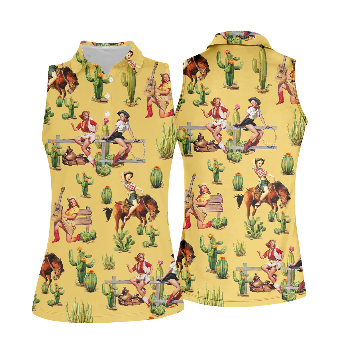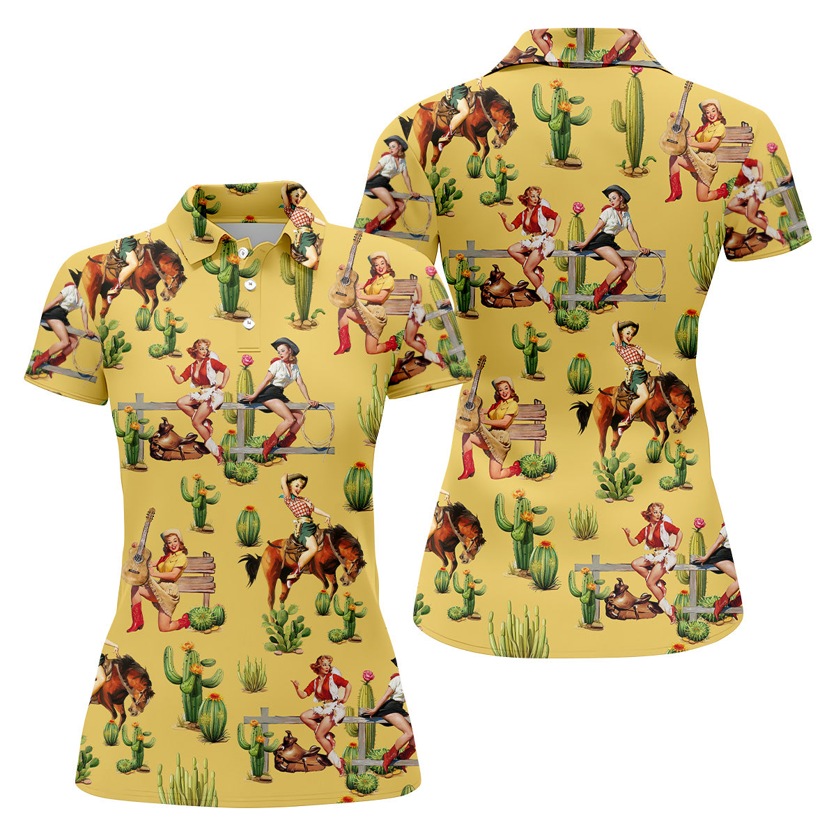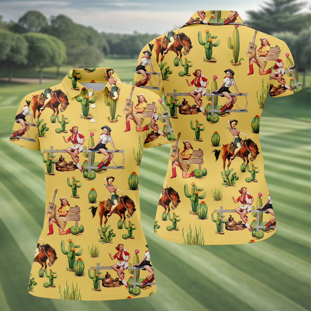 Vintage Cowgirl Yellow Women's Golf Polo, Western Rodeo Women Golf Top, Cute Golf Outfit, Golfing Apparel