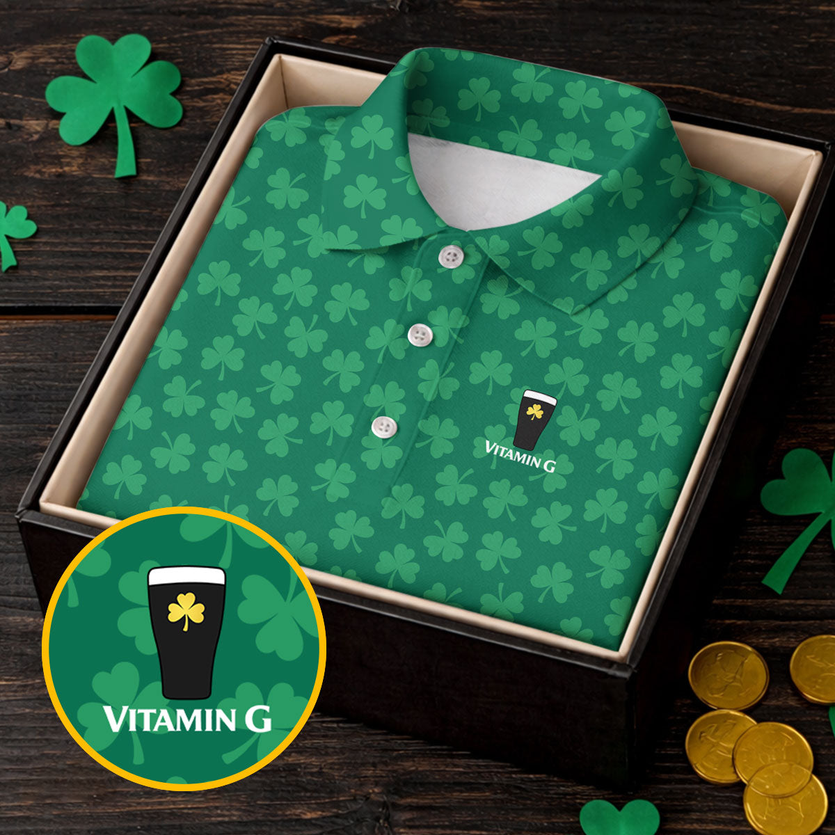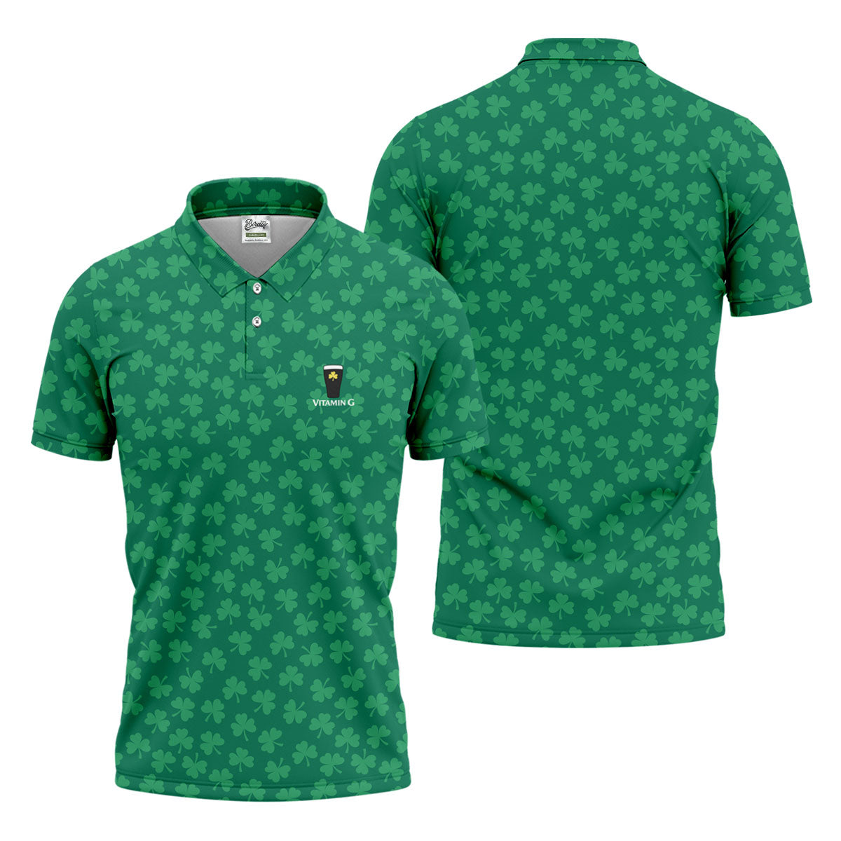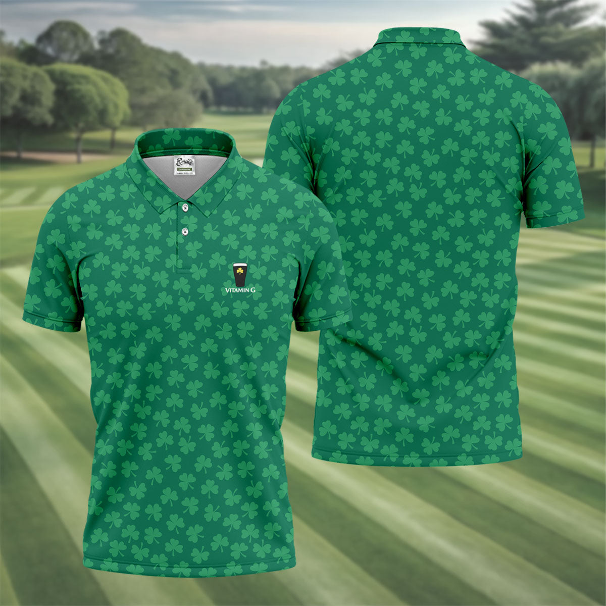 Vitamin G Shamrock Pattern Golf And Beer Green Golf Shirt, St Patrick's Day Golf Shirt, Polo Shirts For Men