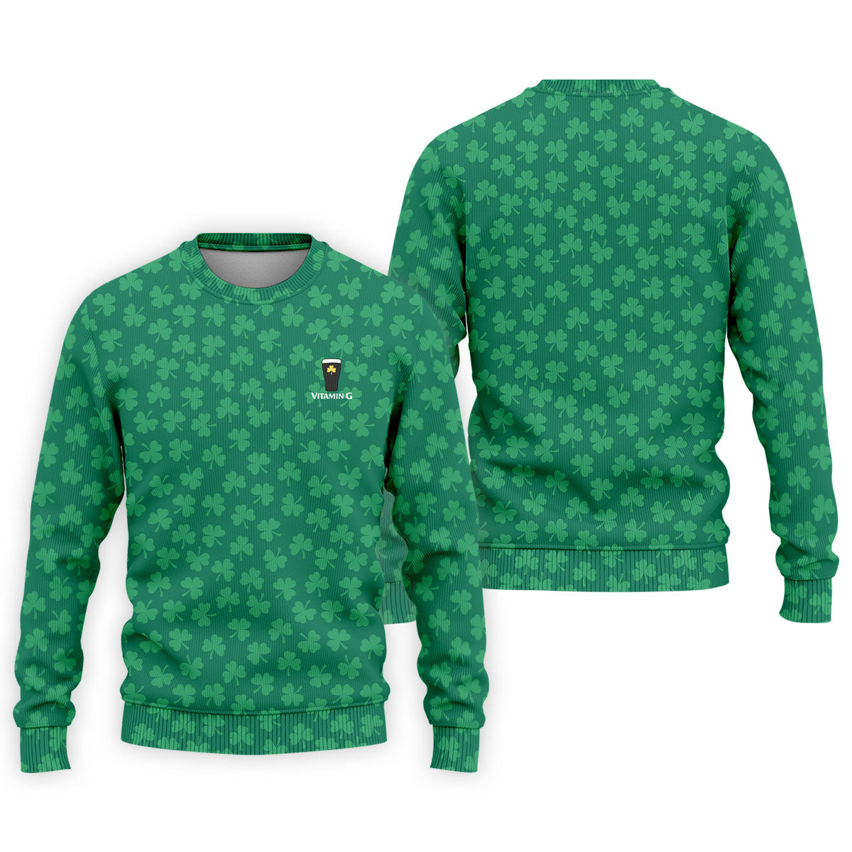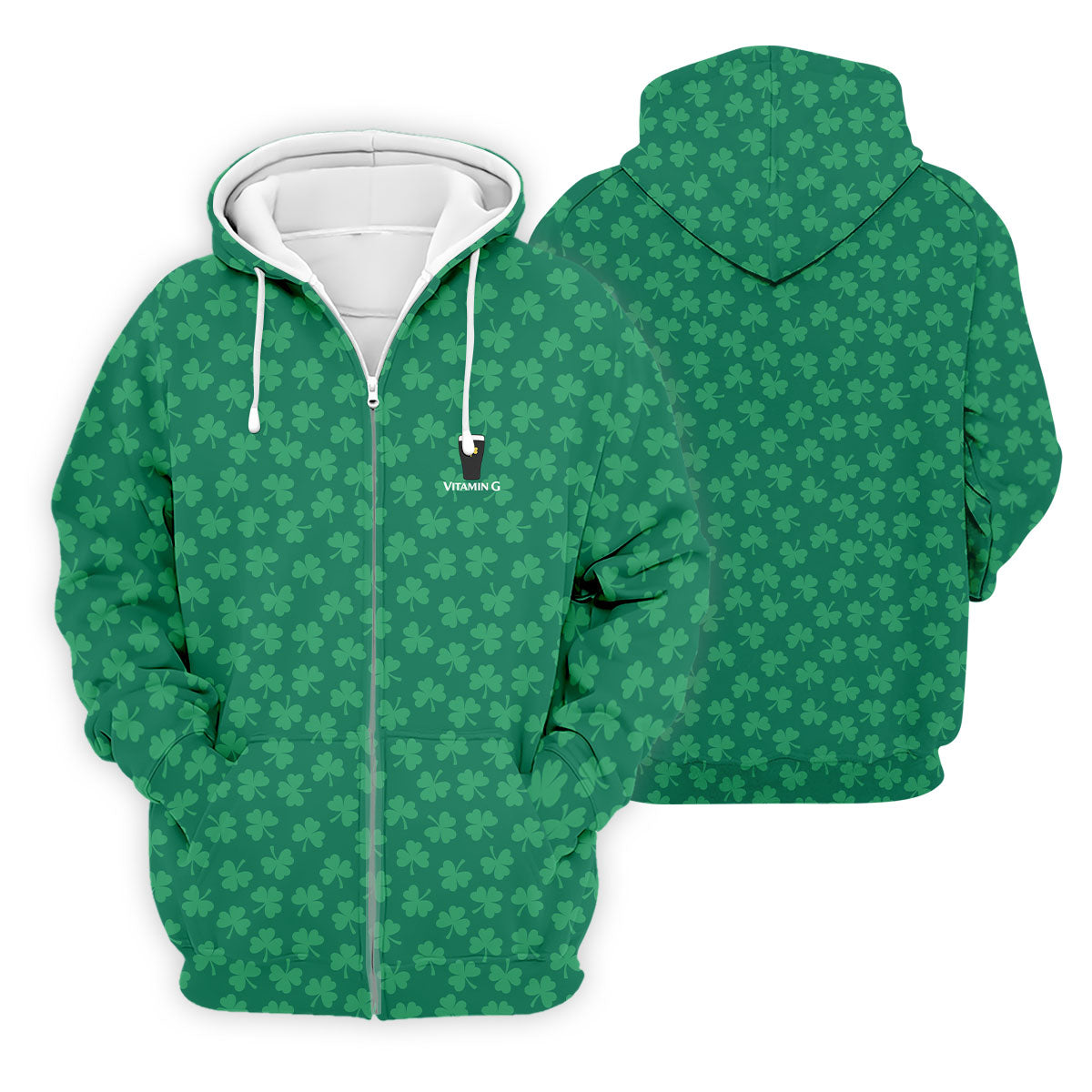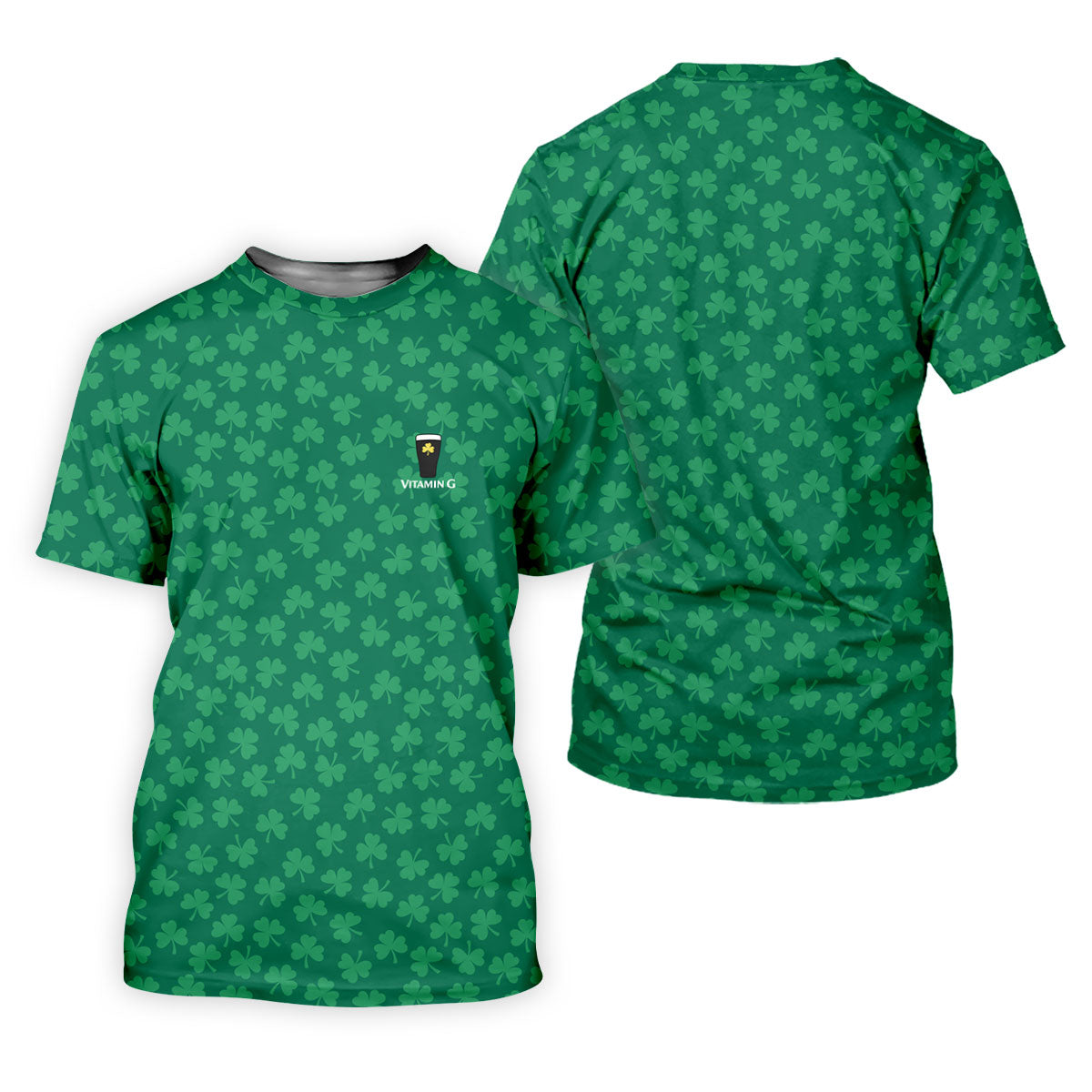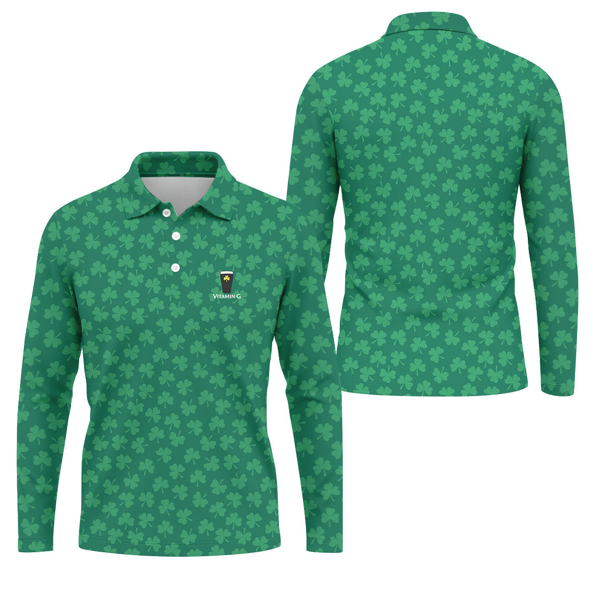 Vitamin G Shamrock Pattern Golf And Beer Green Golf Shirt, St Patrick's Day Golf Shirt, Polo Shirts For Men