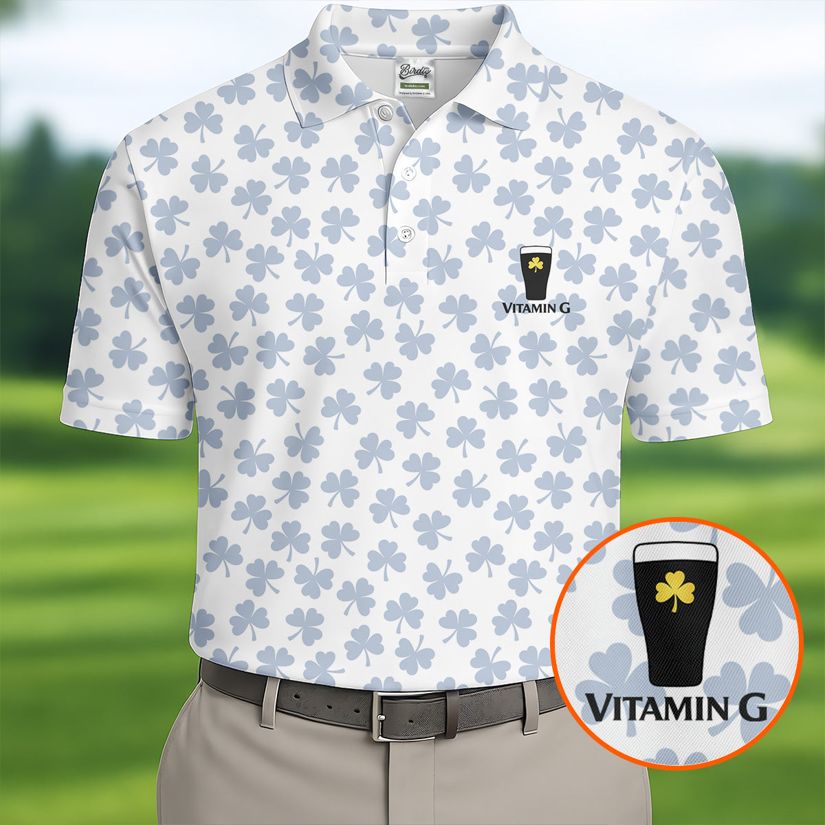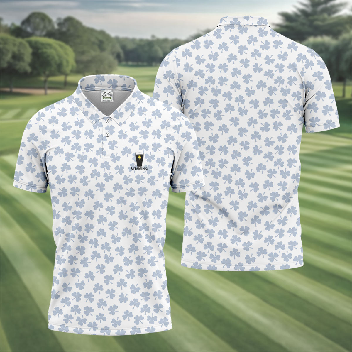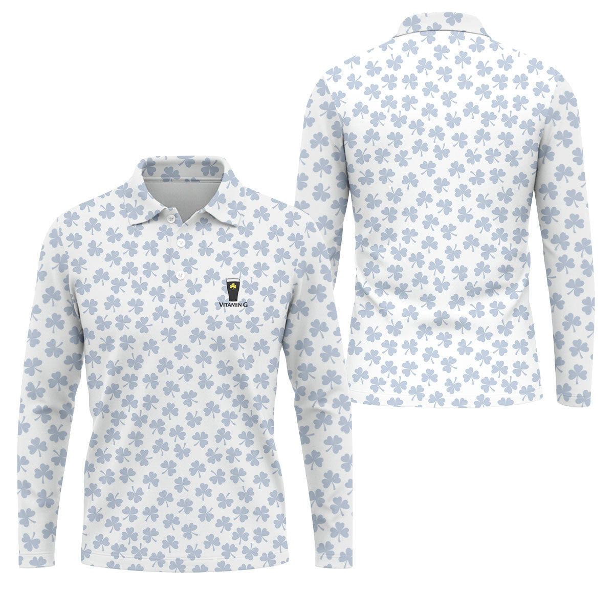 Vitamin G Shamrock Pattern Golf And Beer White Golf Shirt, St Patrick's Day Golf Shirt, Polo Shirts For Men