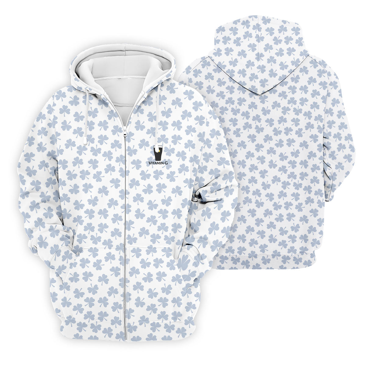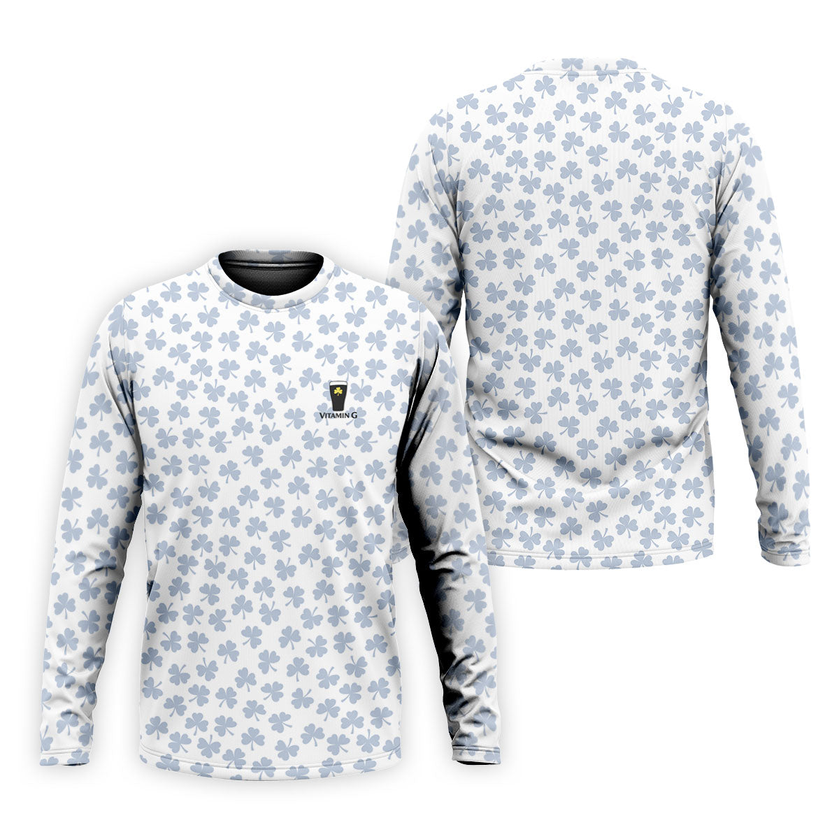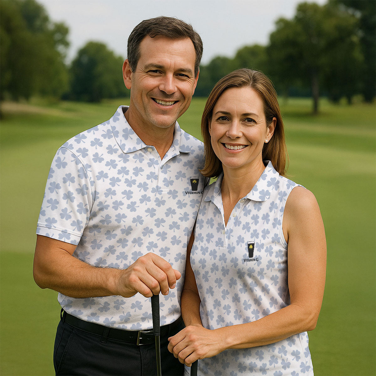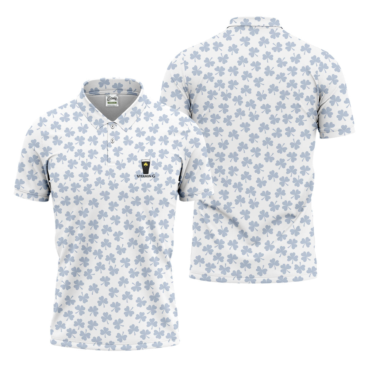 Vitamin G Shamrock Pattern Golf And Beer White Golf Shirt, St Patrick's Day Golf Shirt, Polo Shirts For Men