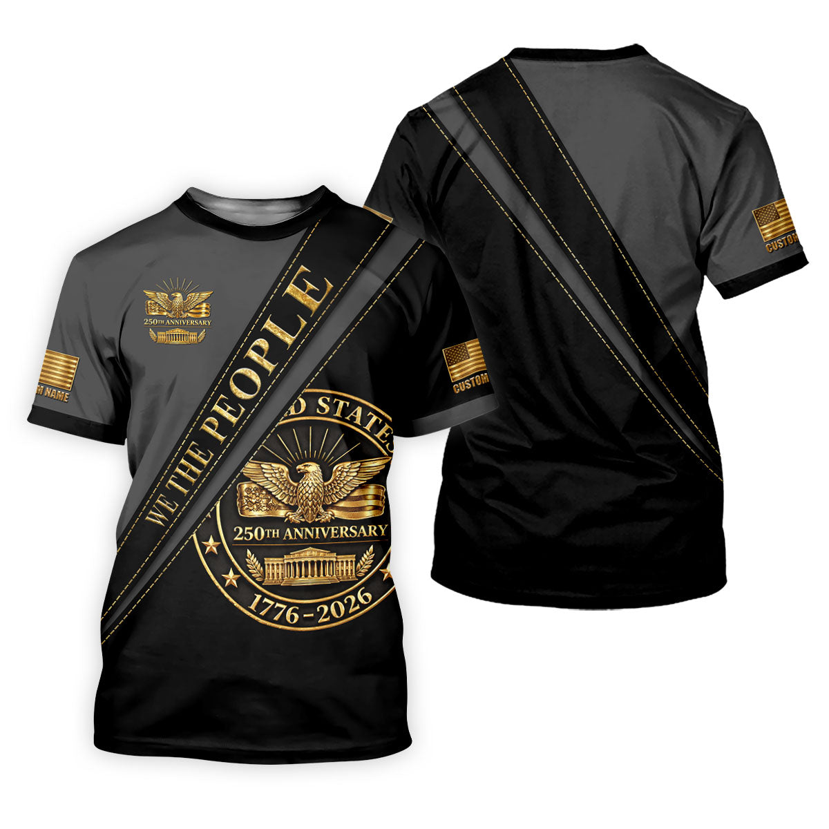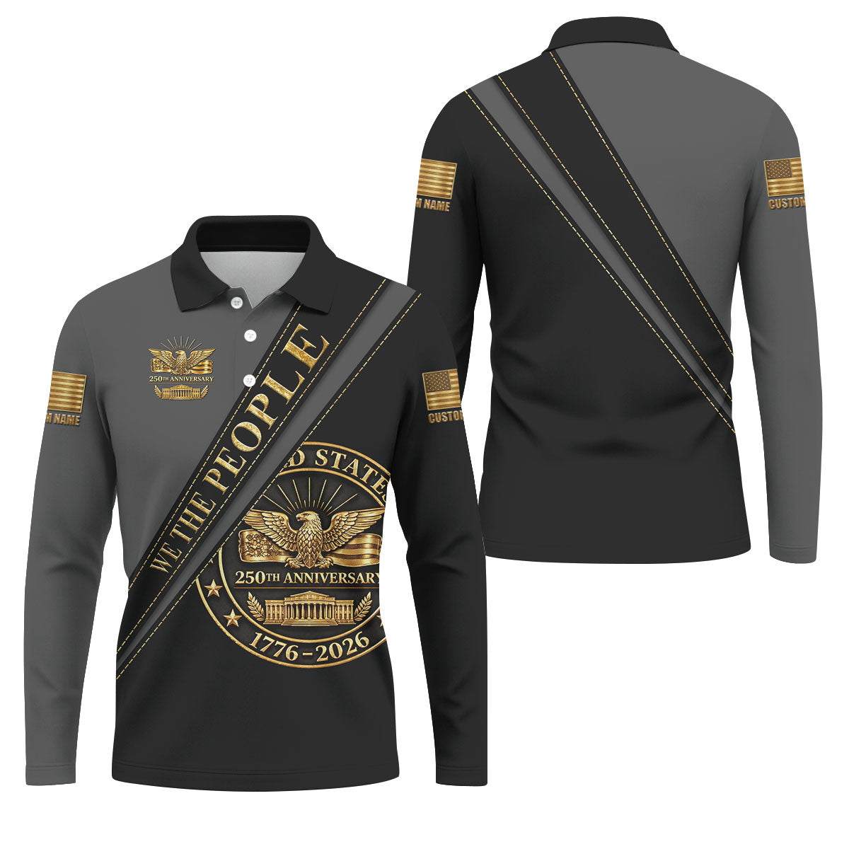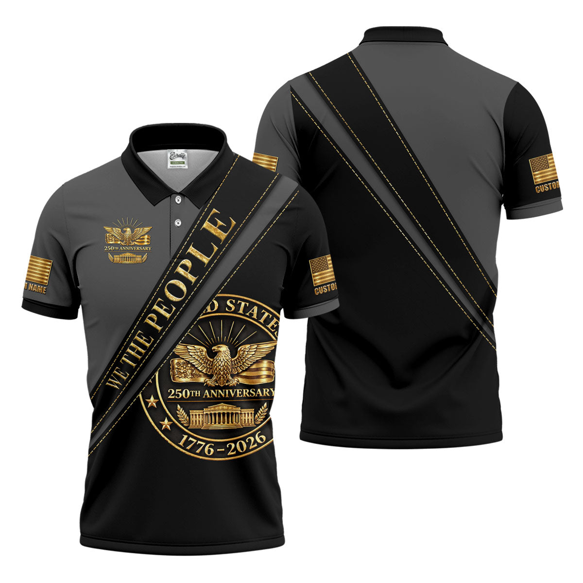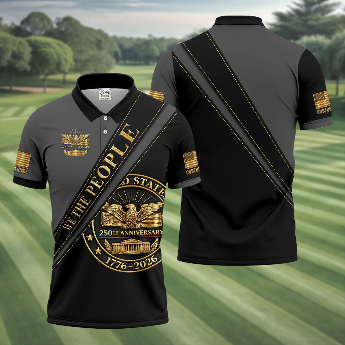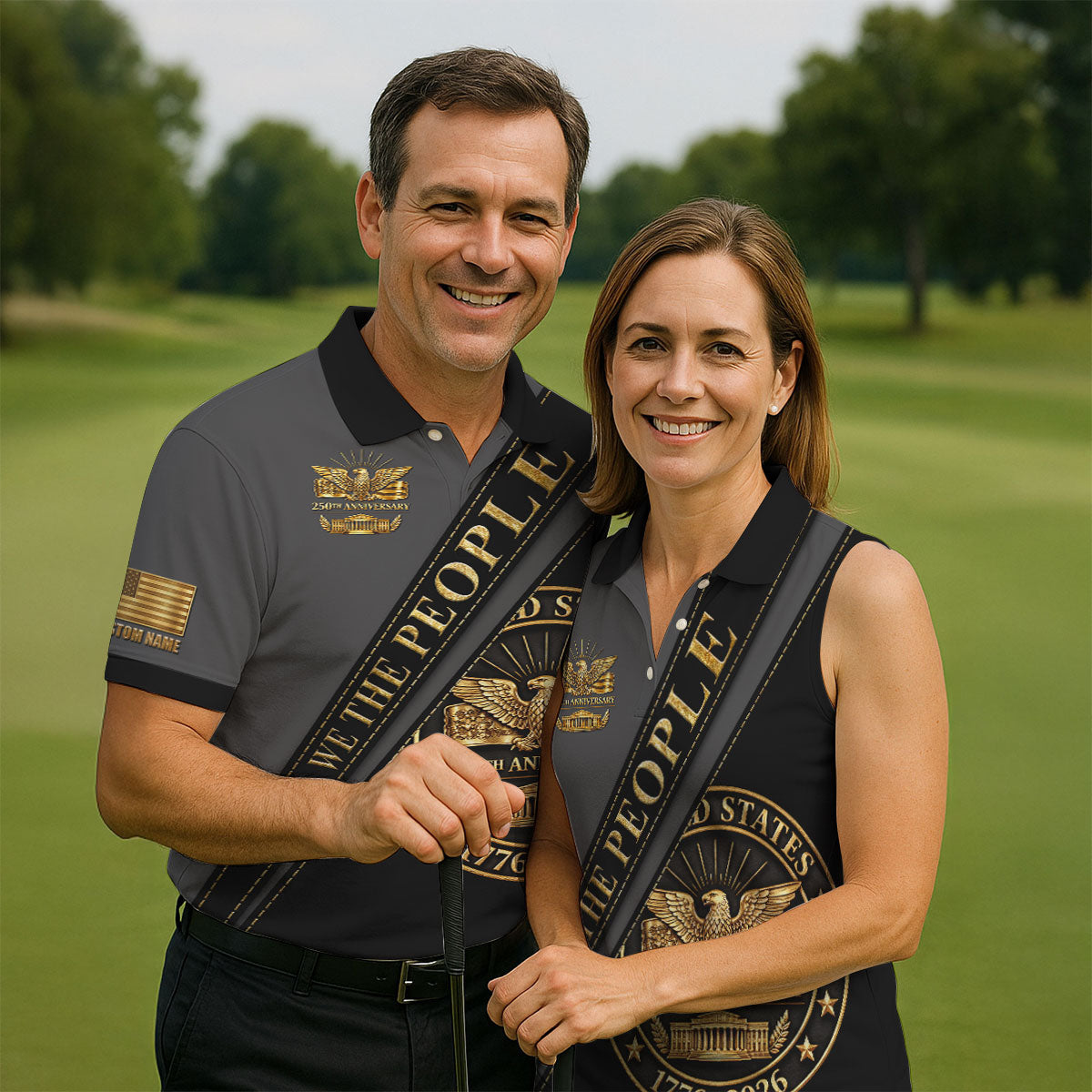 We The People 250th Anniversary Black And Gold Golf Tops For Men, Patriotic 4th Of July Golf Shirts For Men