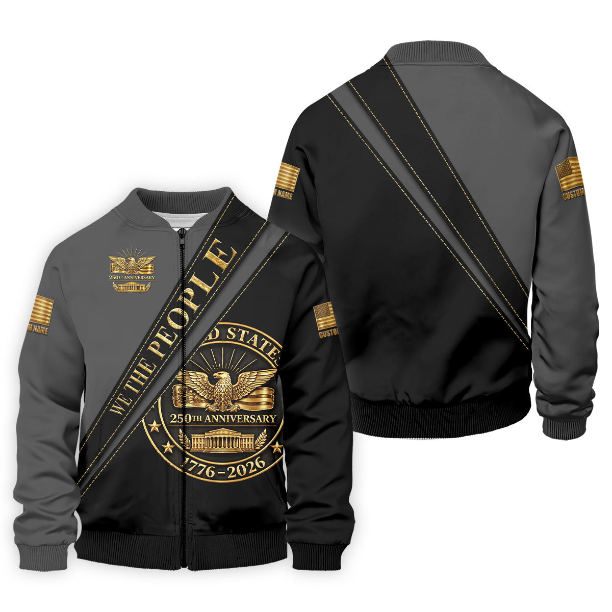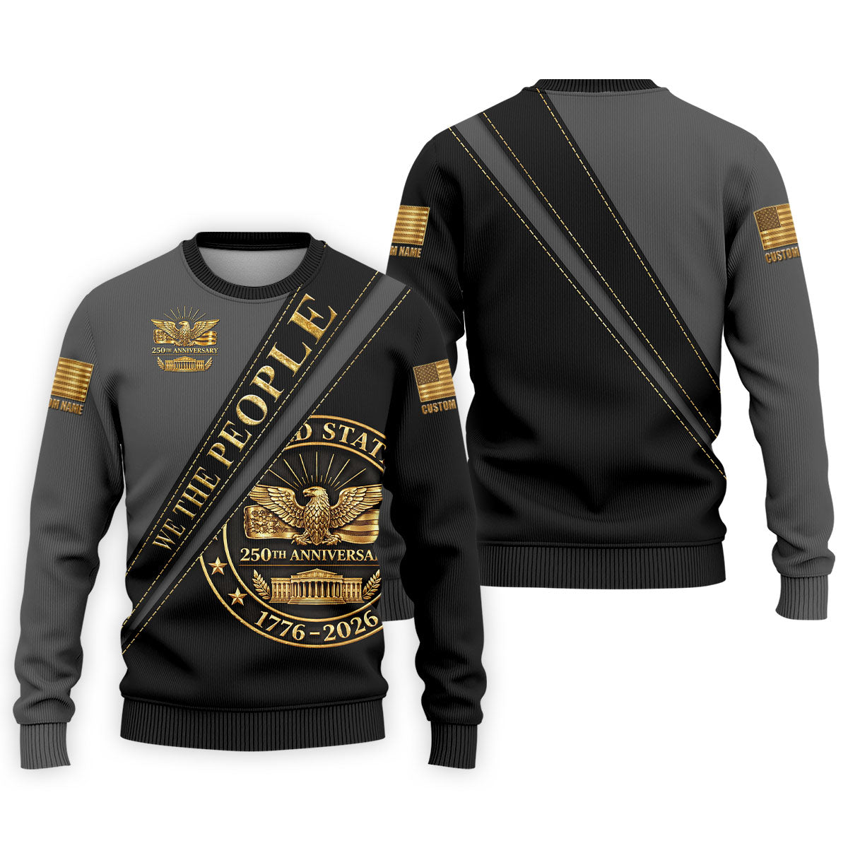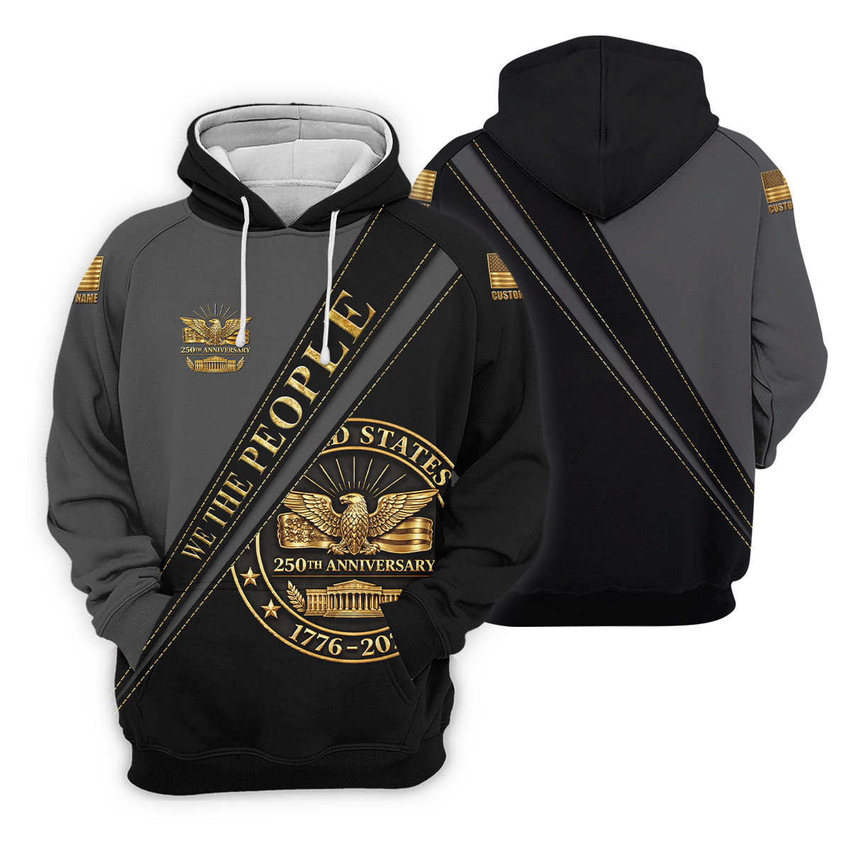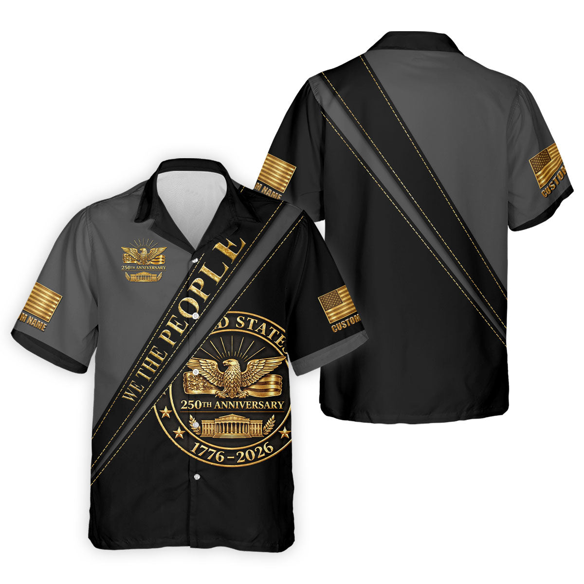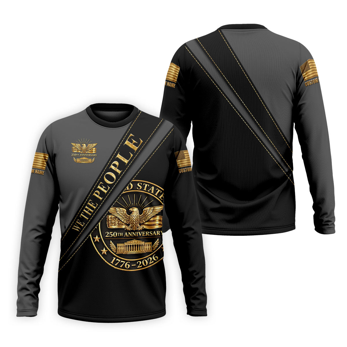 We The People 250th Anniversary Black And Gold Golf Tops For Men, Patriotic 4th Of July Golf Shirts For Men