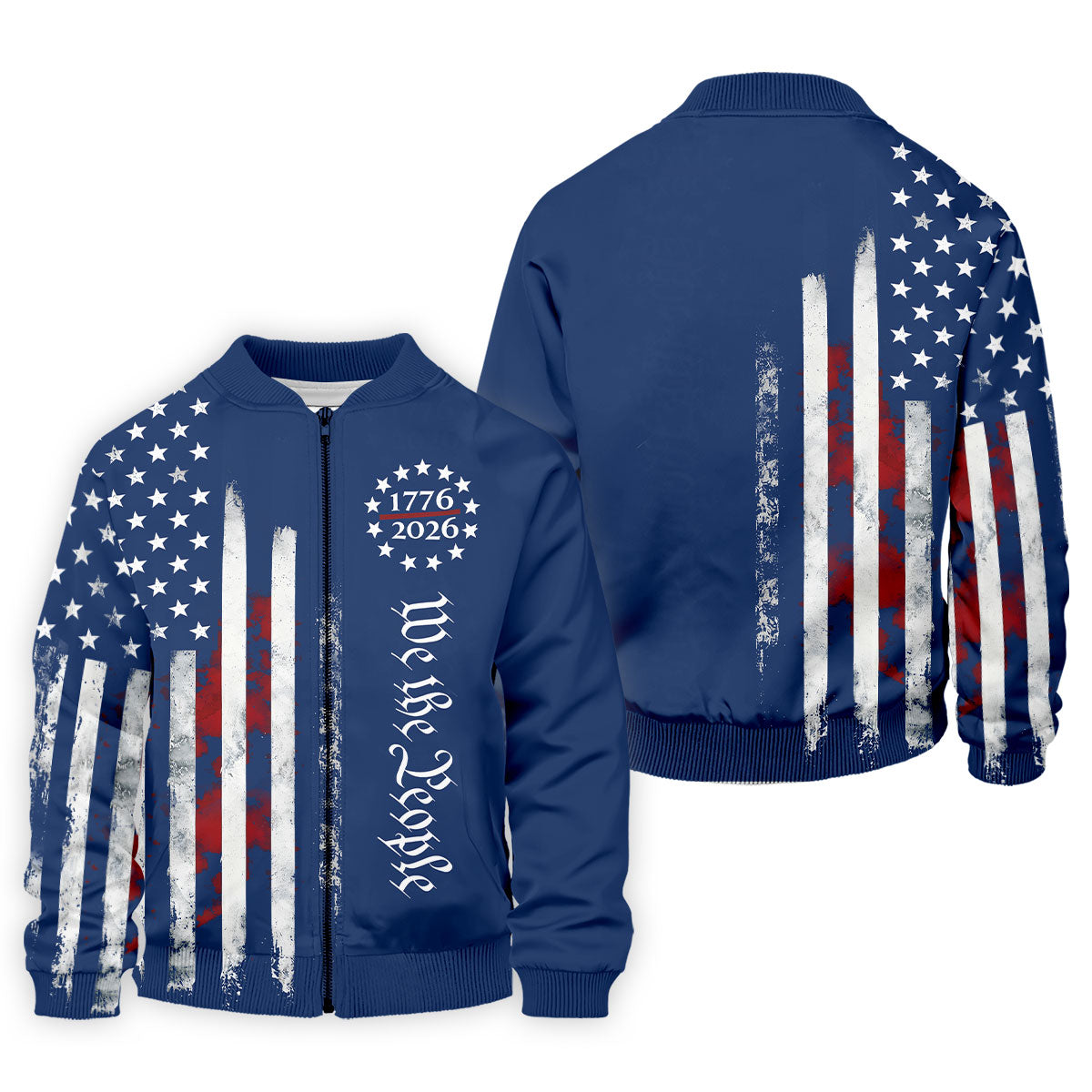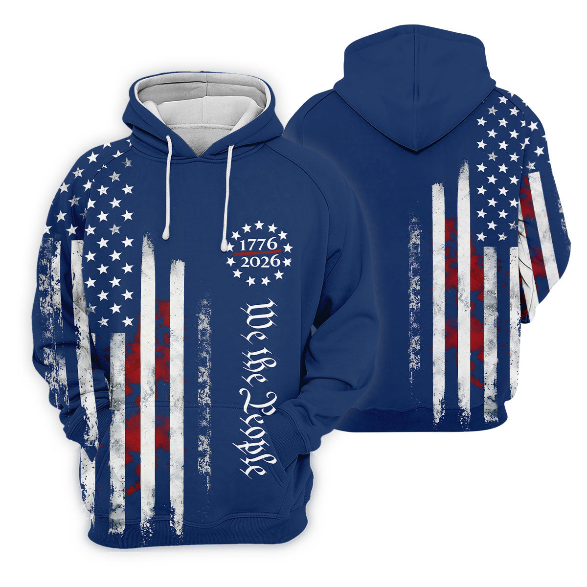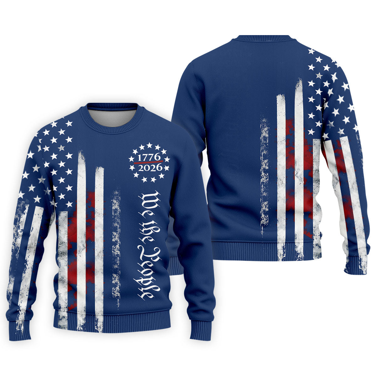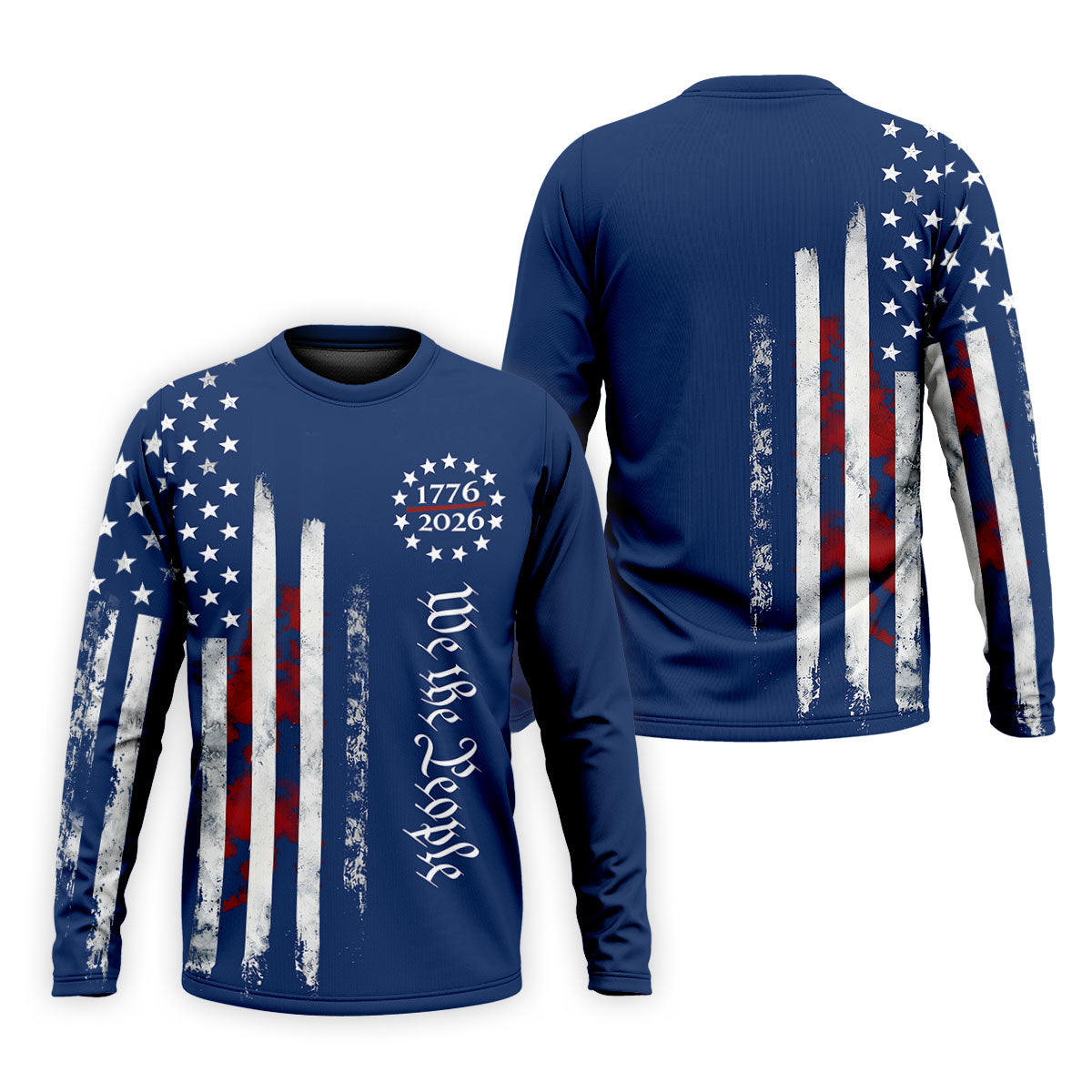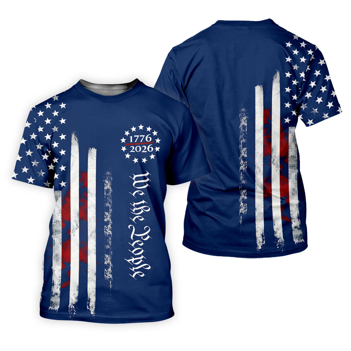 We The People Distressed Flag Patriotic Blue Golf Shirt, 250 Years 4th Of July Golf Shirts For Men