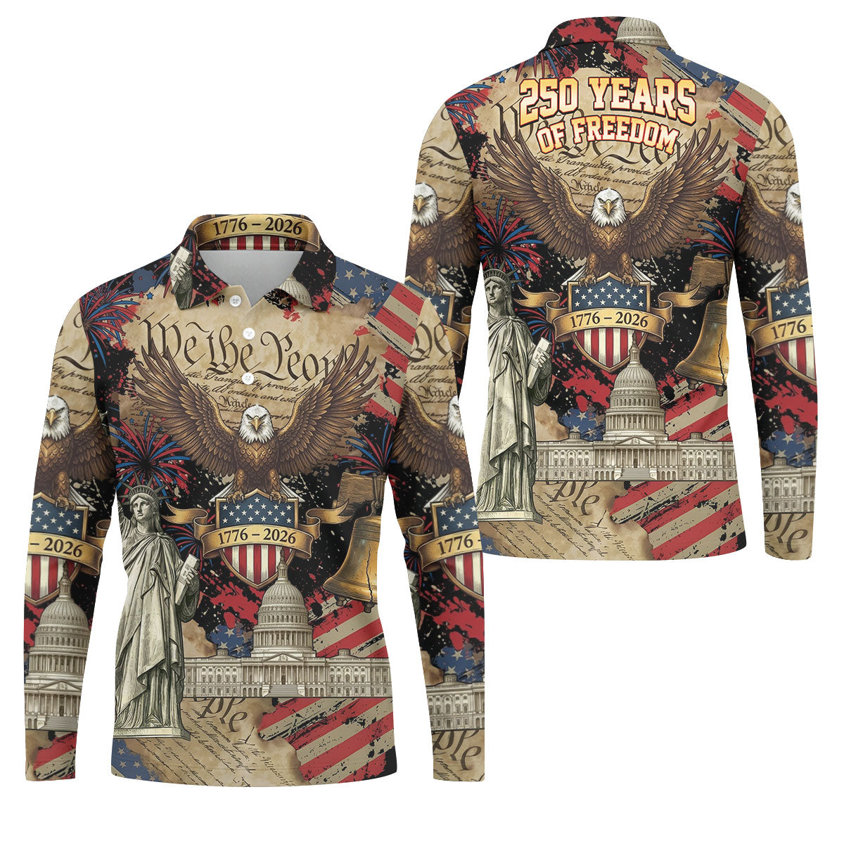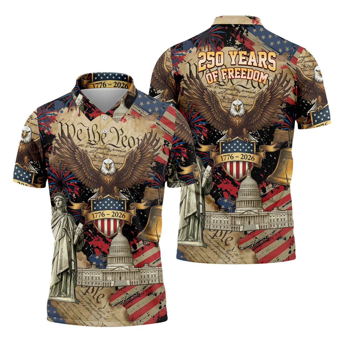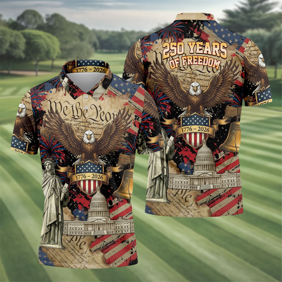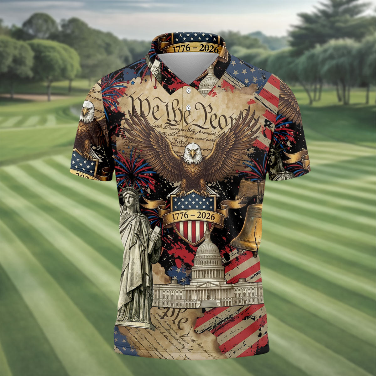 We The People Patriotic Eagle Statue Of Liberty 250 Years Golf Tops For Men, 4th Of July Golf Shirts For Men