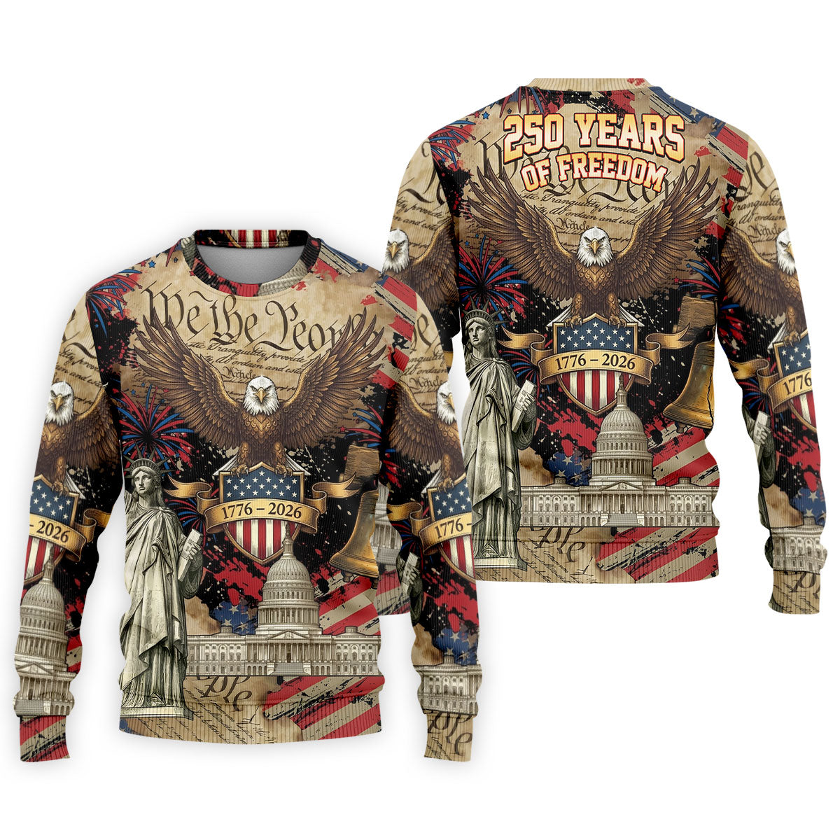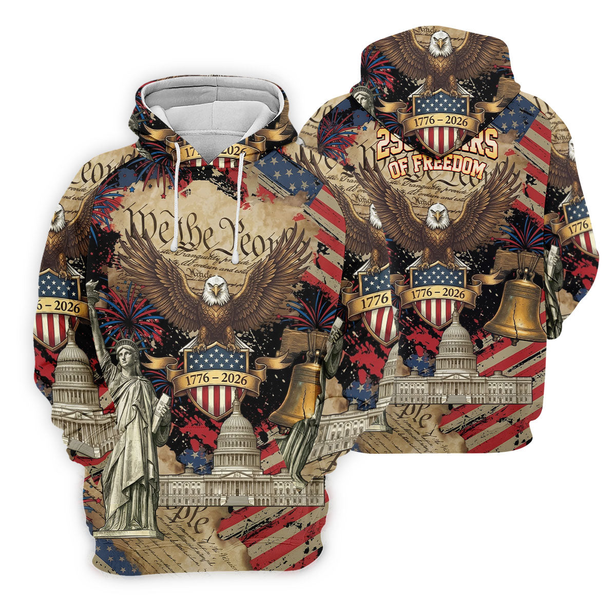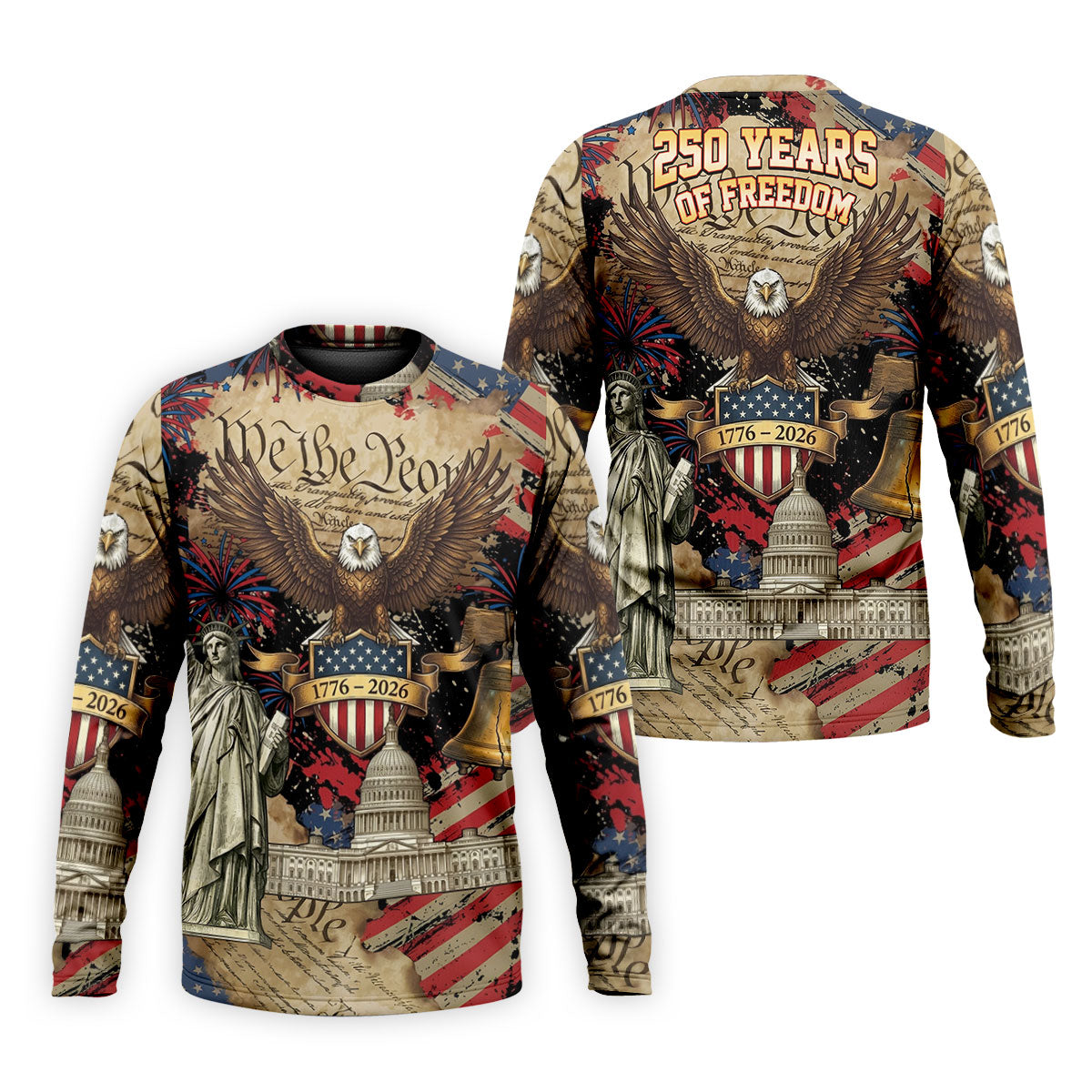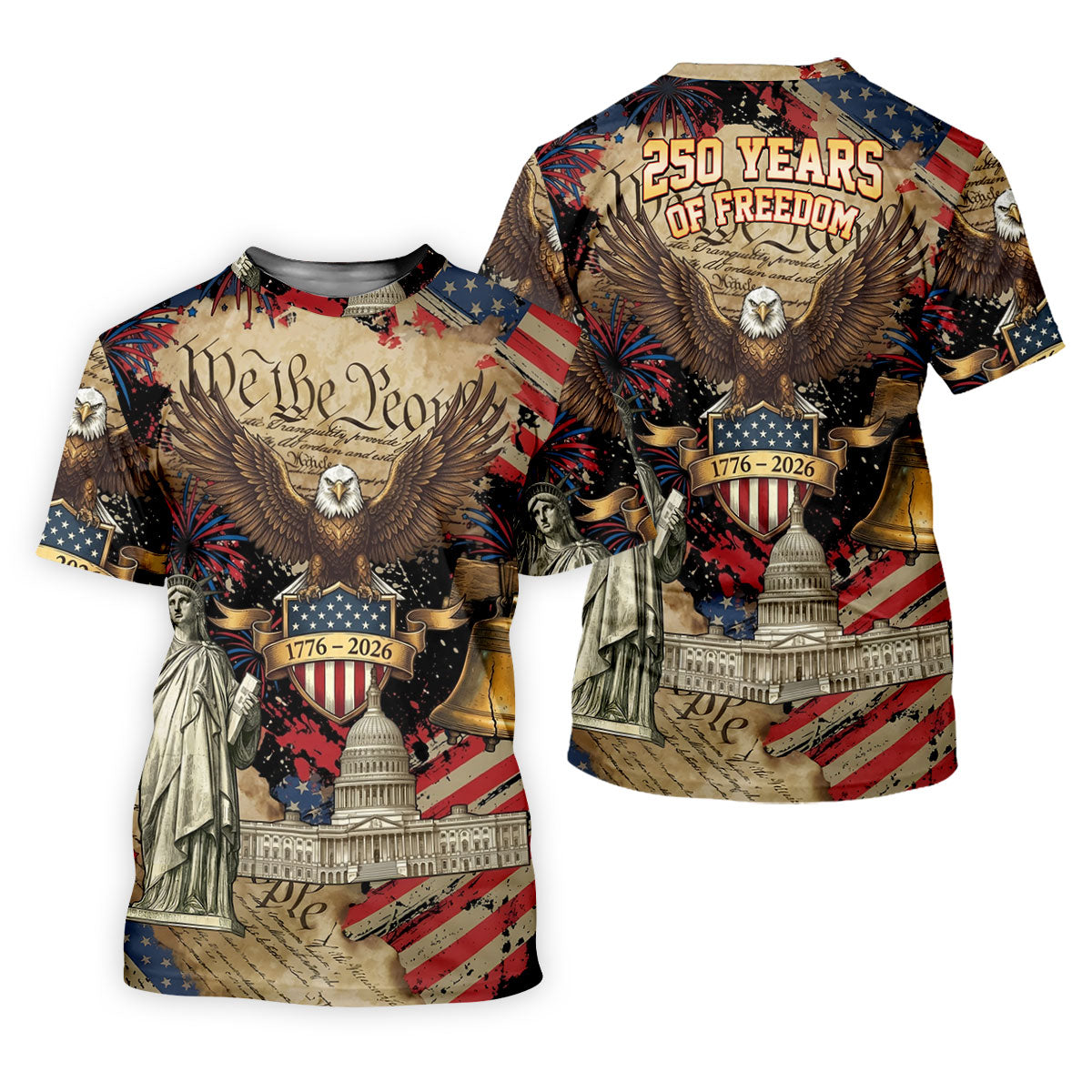 We The People Patriotic Eagle Statue Of Liberty 250 Years Golf Tops For Men, 4th Of July Golf Shirts For Men