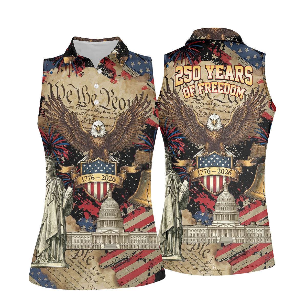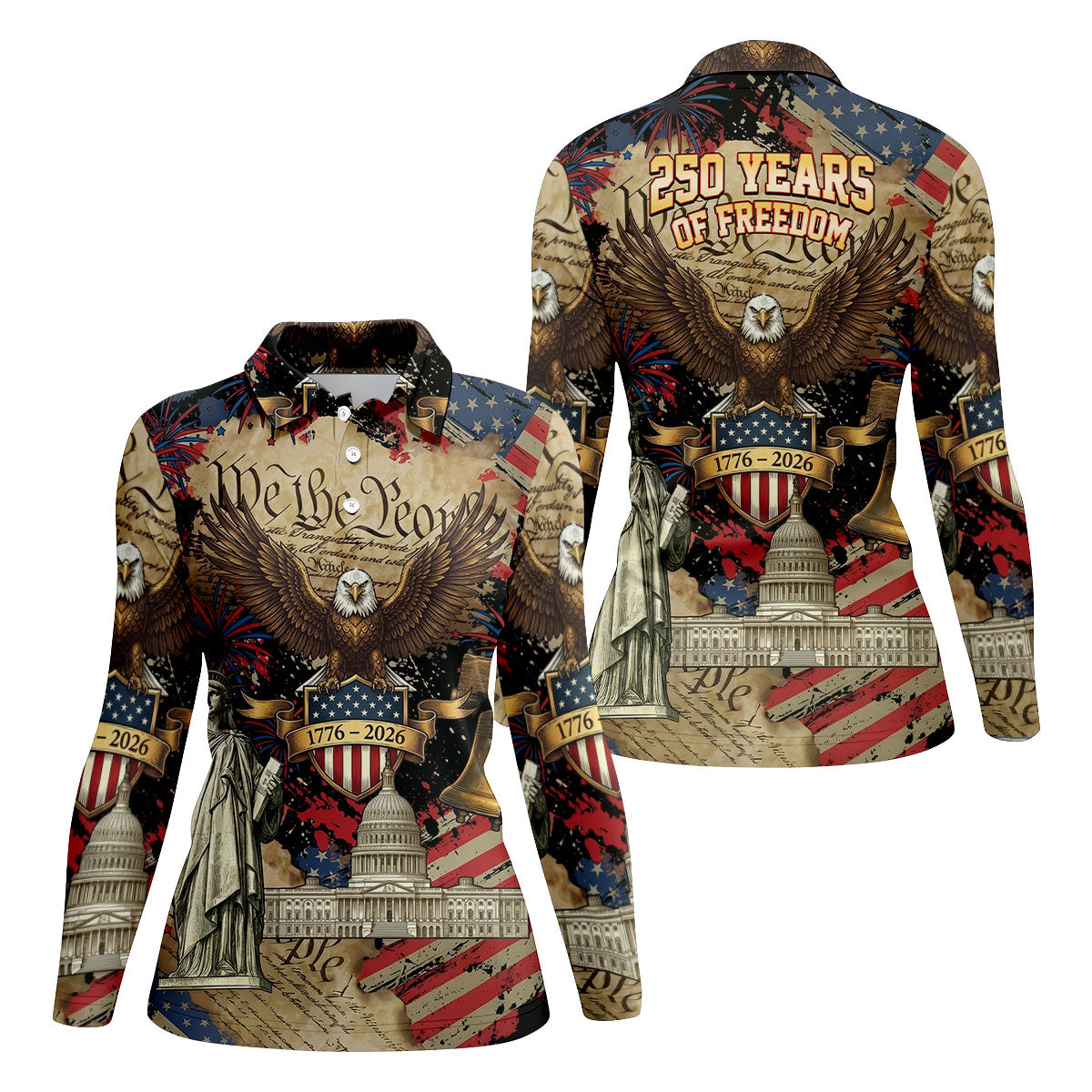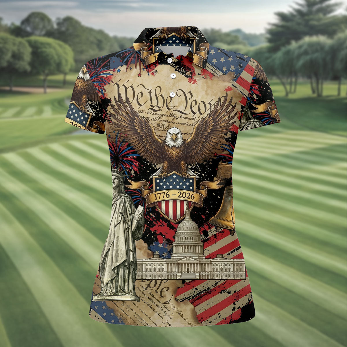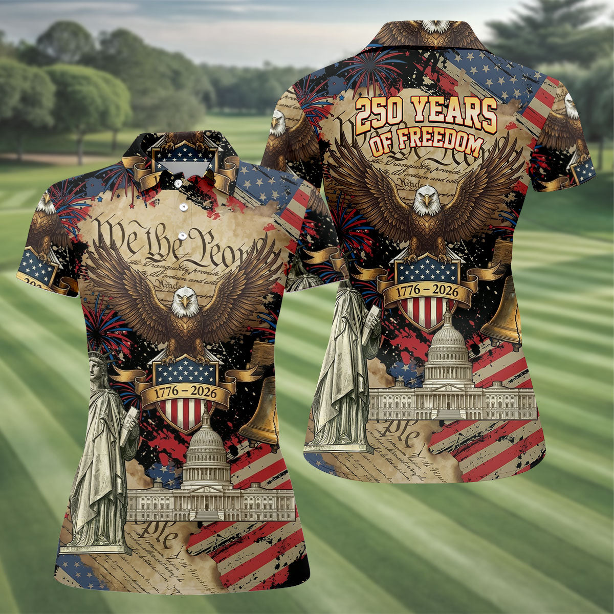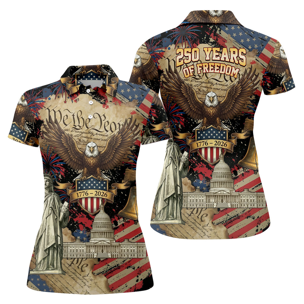 We The People Patriotic Eagle Statue Of Liberty 250 Years Ladies Golf Tops, 4th Of July Golf Shirt For Women