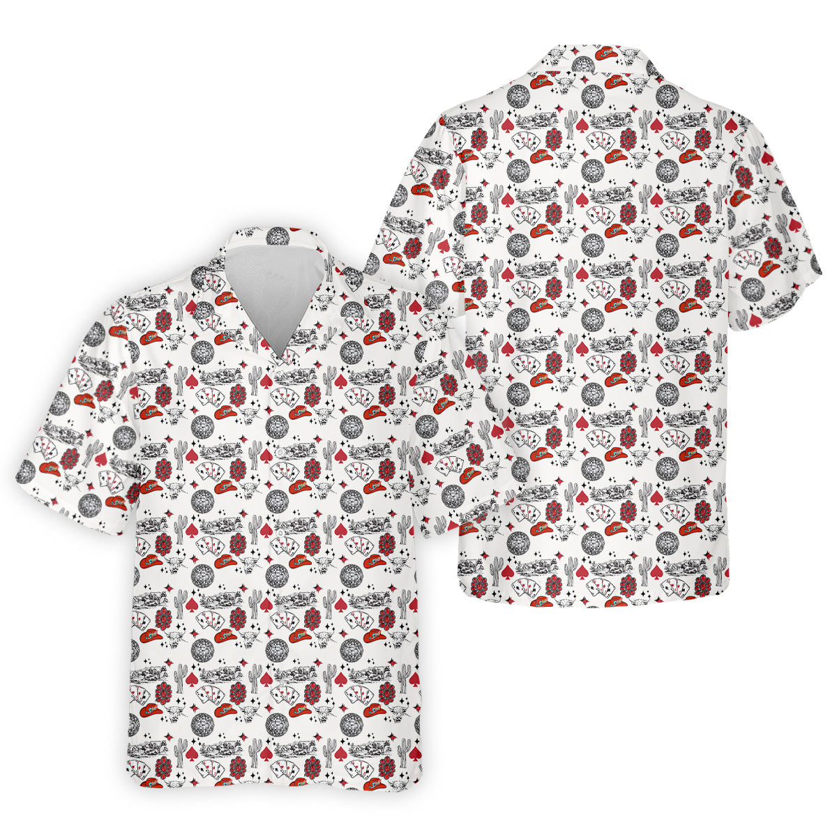 Western Cards Red Cowboy Hat Seamless Pattern Golf Tops For Men, Western Golf Shirt, Polo Shirts For Men