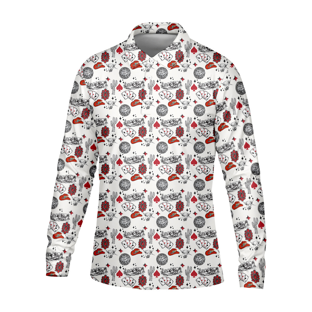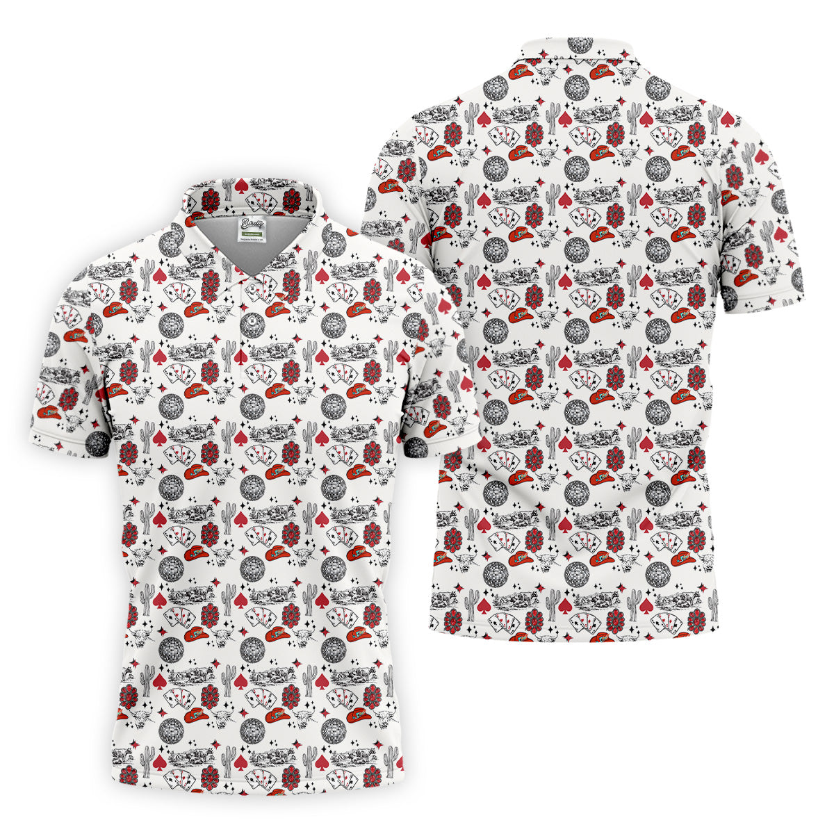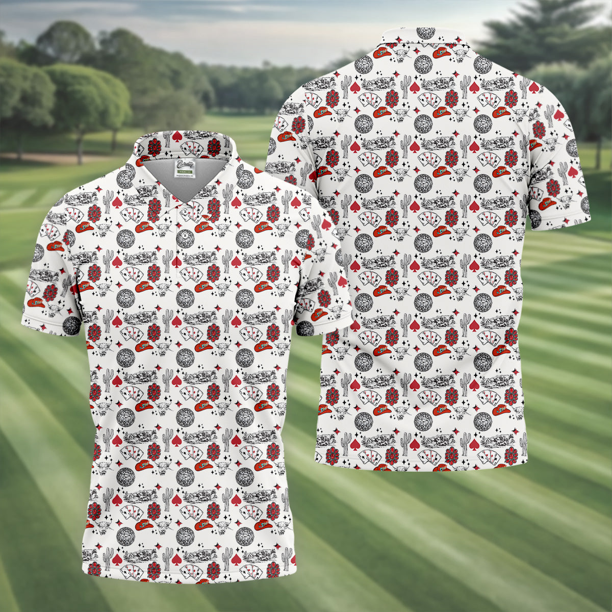 Meet the Western Cards Red Cowboy Hat Seamless Pattern Golf Tops For Men, Western Golf Shirt, Polo Shirts For Men – a shirt so bold it makes argyle cry in the corner. Designed for golfers who'd rather make a fashion statement than follow dress codes, this polo is your ticket to turning heads, raising eyebrows, and maybe distracting your buddies just enough to win a few holes. (We’re not saying it’s cheating... we’re saying it’s strategy.)