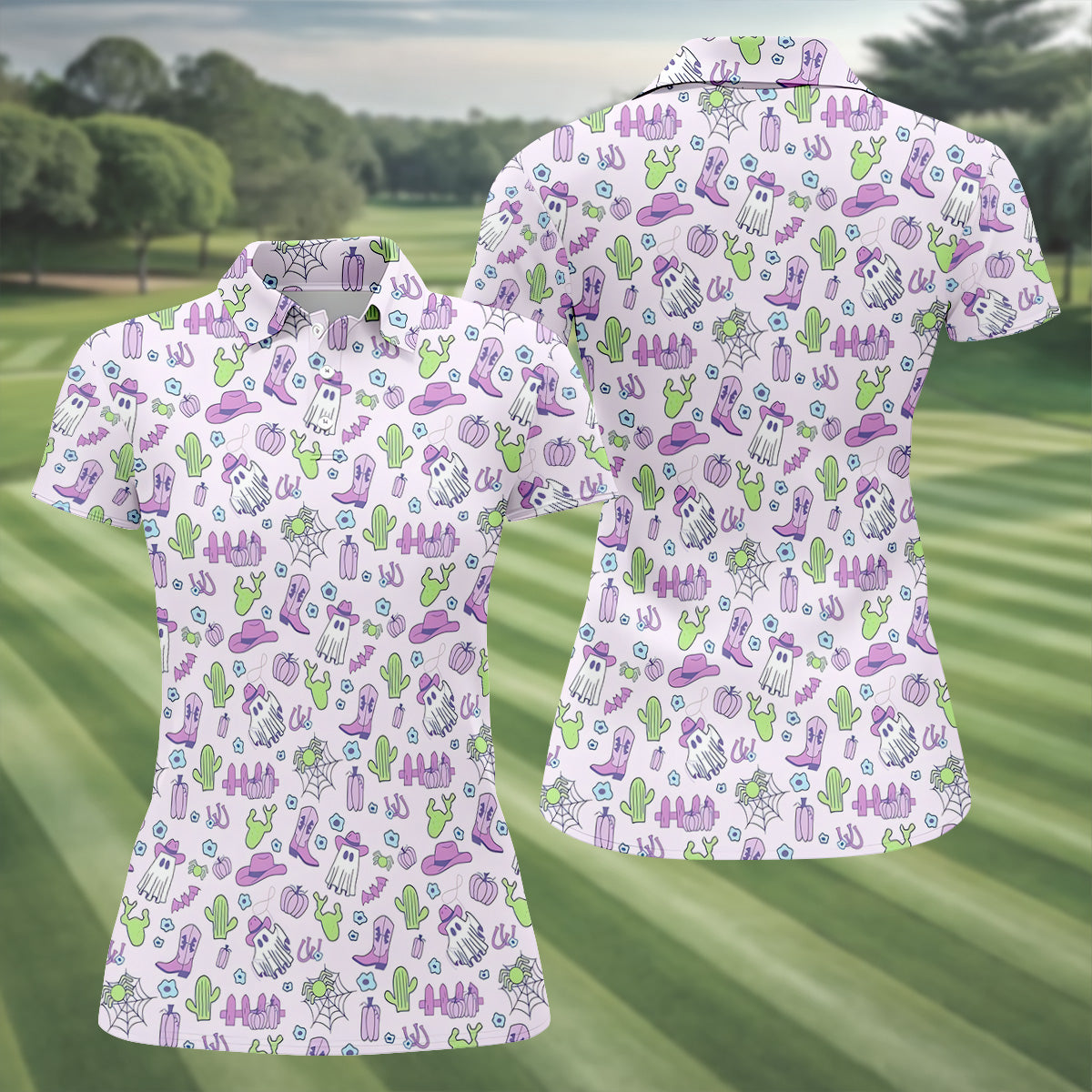 Western Halloween Purple Women Golf Top, Cute Golf Outfit, Ladies Golf Shirts, Golfing Apparel