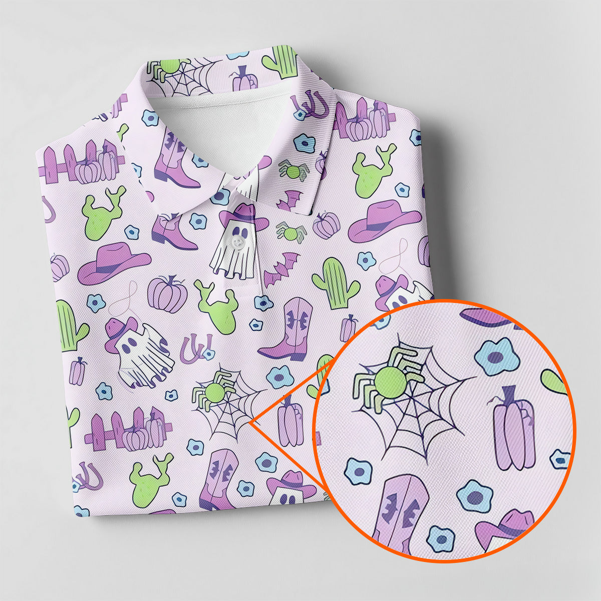 Meet the Western Halloween Purple Women Golf Top, Cute Golf Outfit, Ladies Golf Shirts, Golfing Apparel – a shirt so bold it makes argyle cry in the corner. Designed for golfers who'd rather make a fashion statement than follow dress codes, this polo is your ticket to turning heads, raising eyebrows, and maybe distracting your buddies just enough to win a few holes. (We’re not saying it’s cheating... we’re saying it’s strategy.)