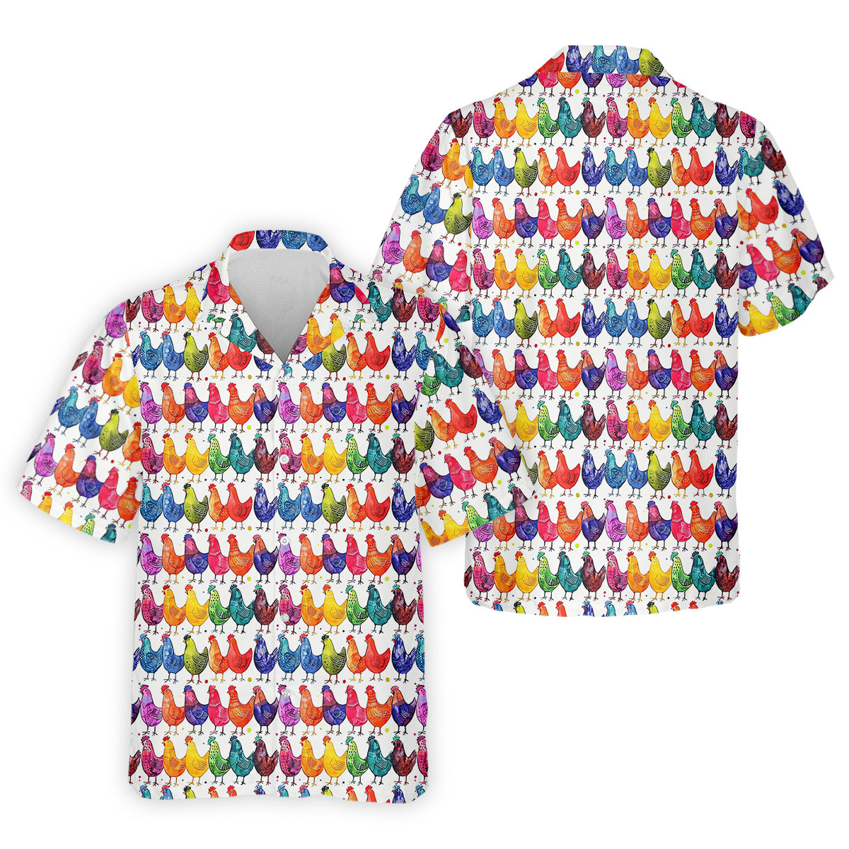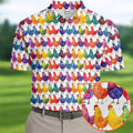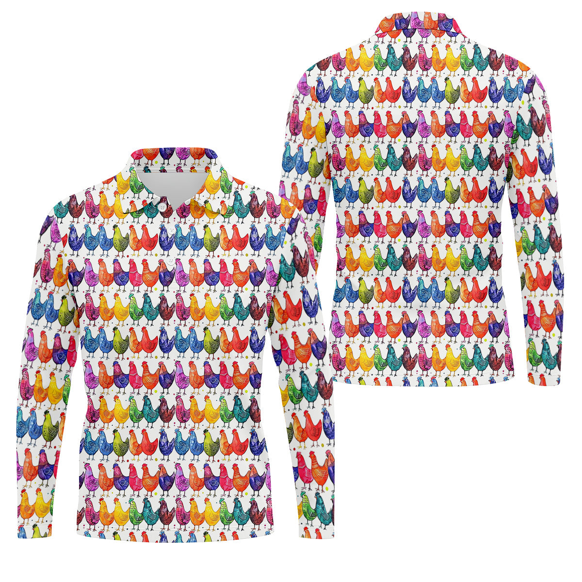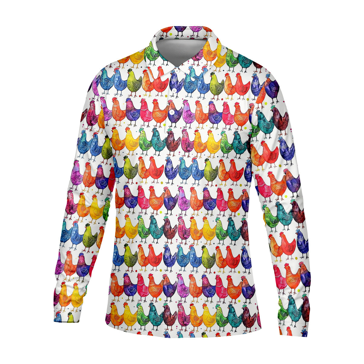Whimsical Chicken Colorful Golf Shirt, Cute Golf Outfit, Polo Shirts For Men, Golfing Apparel