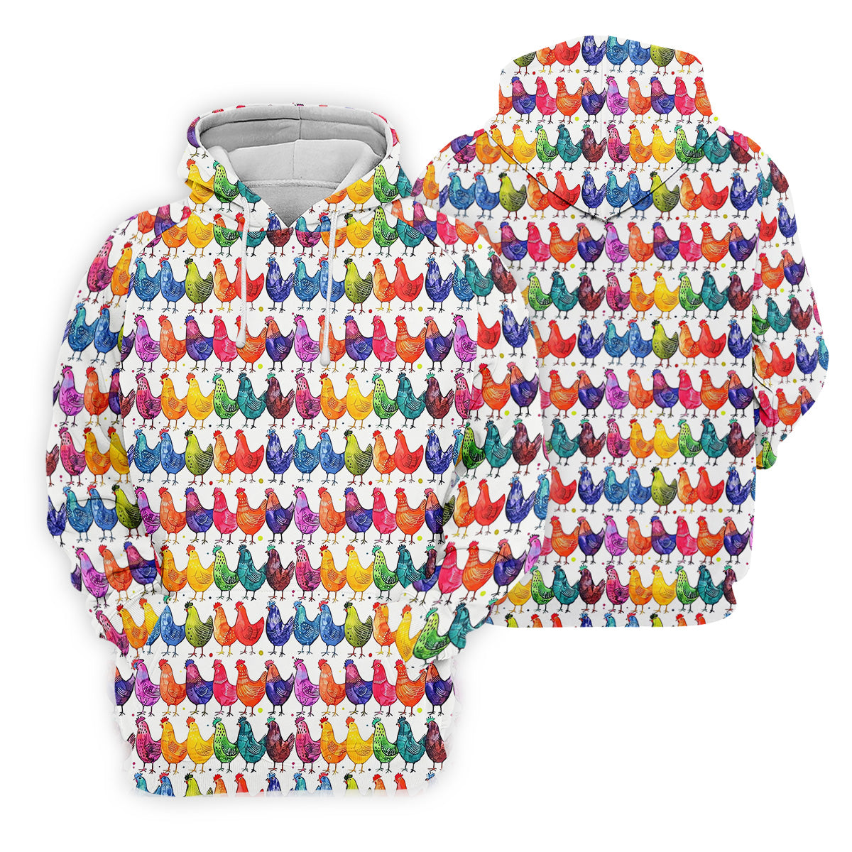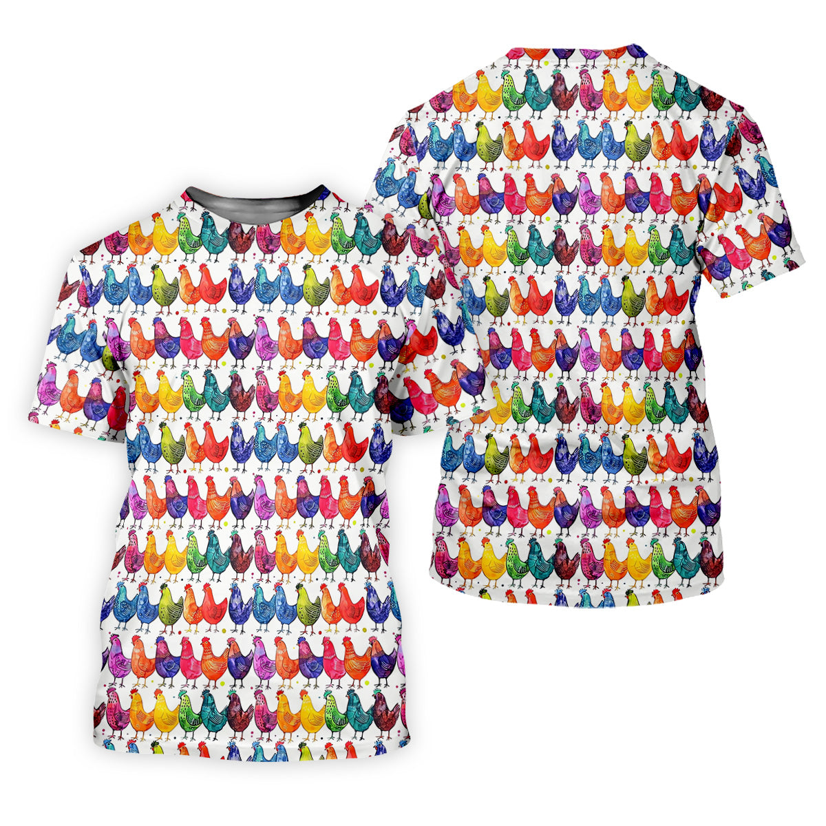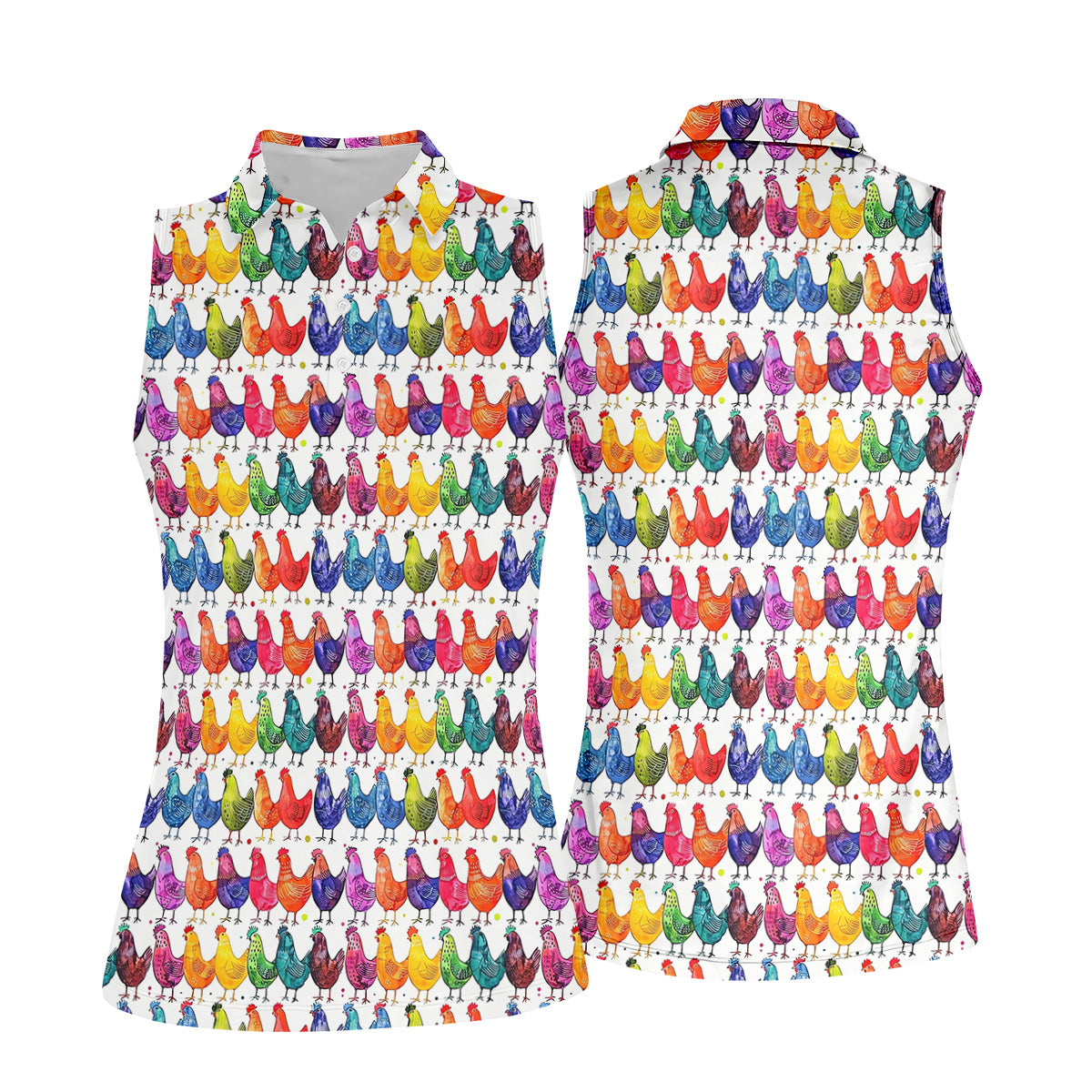 Whimsical Chicken Colorful Golf Shirt, Cute Golf Outfit, White Polo Women, Ladies Golf Shirts