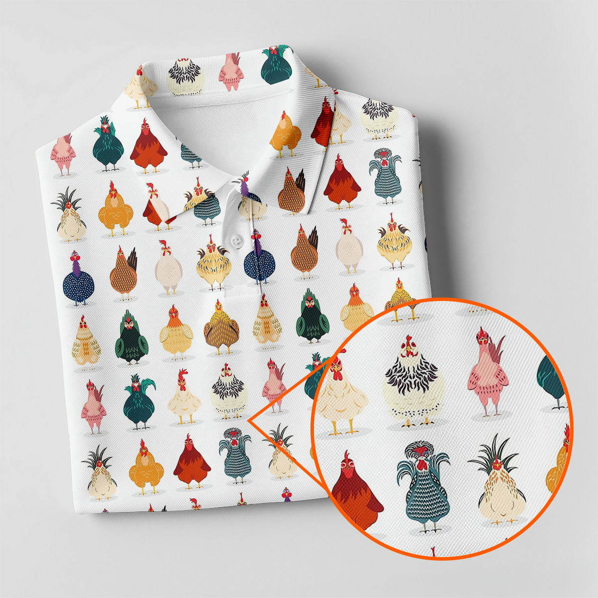 Whimsical Chicken Funny Golf Shirts Women, Cute Golf Outfit, White Polo Women, Ladies Golf Shirts
