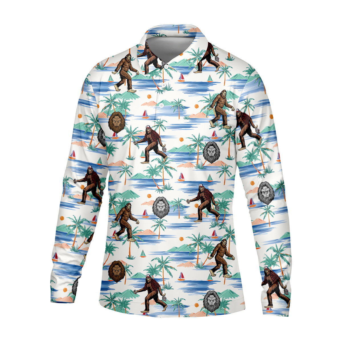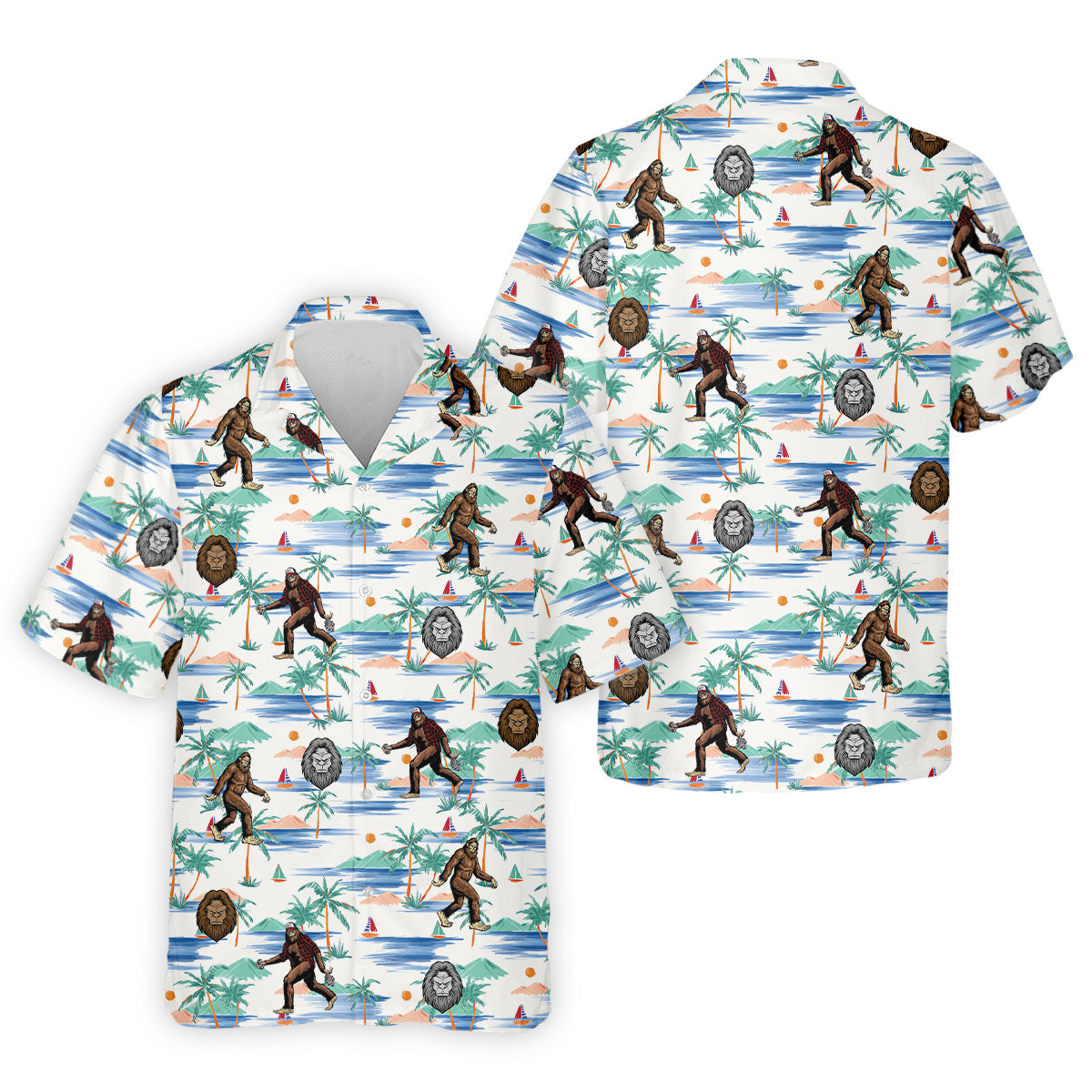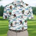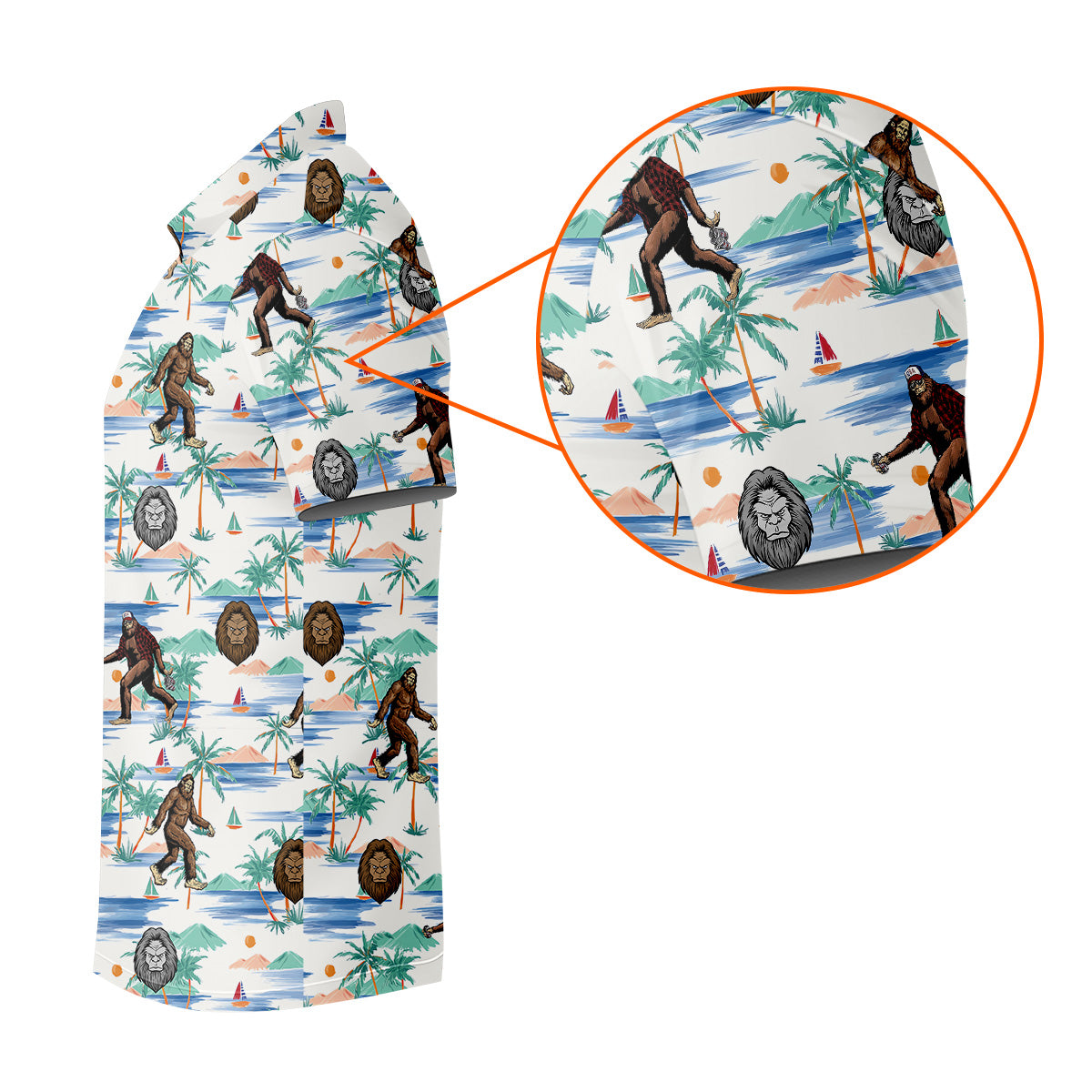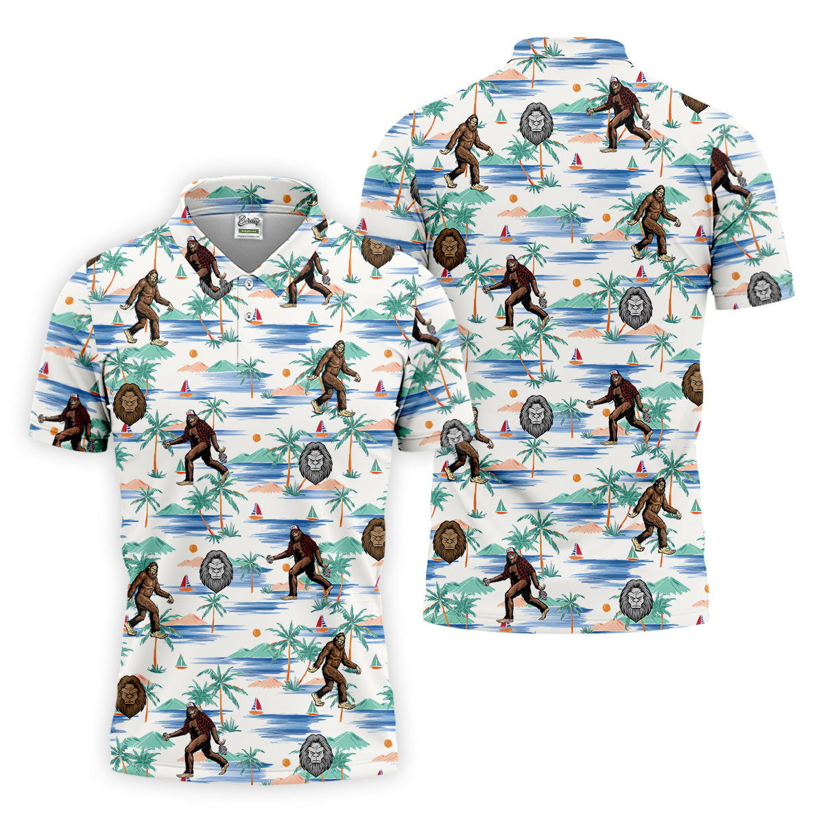 White And Blue Funny Sasquatch Tropical Golf Shirts, Fun Men's Golf Polos, Hawaiian Golf Shirts, Golfing Apparel