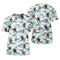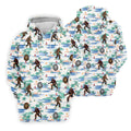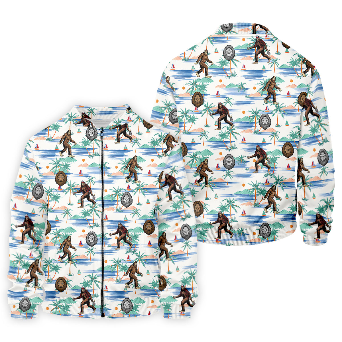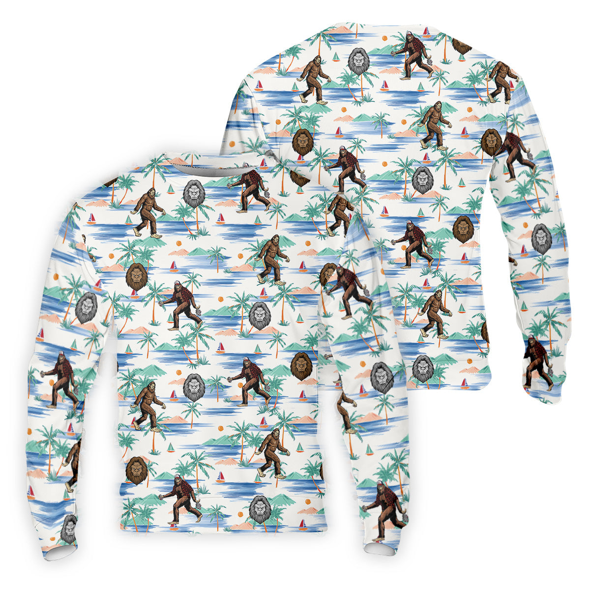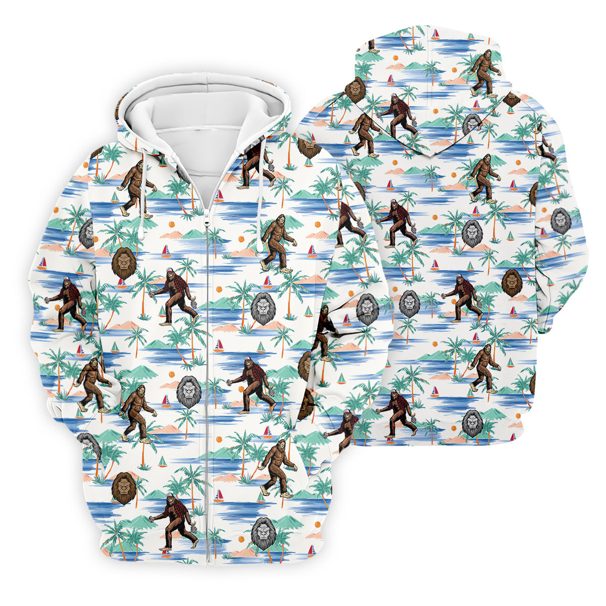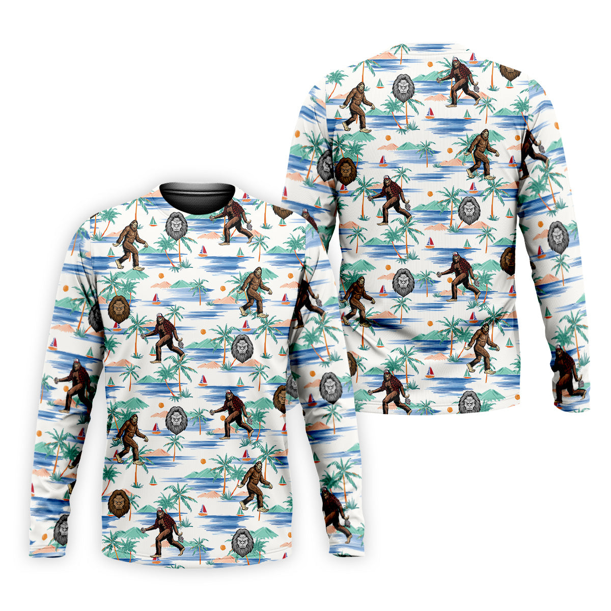 White And Blue Funny Sasquatch Tropical Golf Shirts, Fun Men's Golf Polos, Hawaiian Golf Shirts, Golfing Apparel