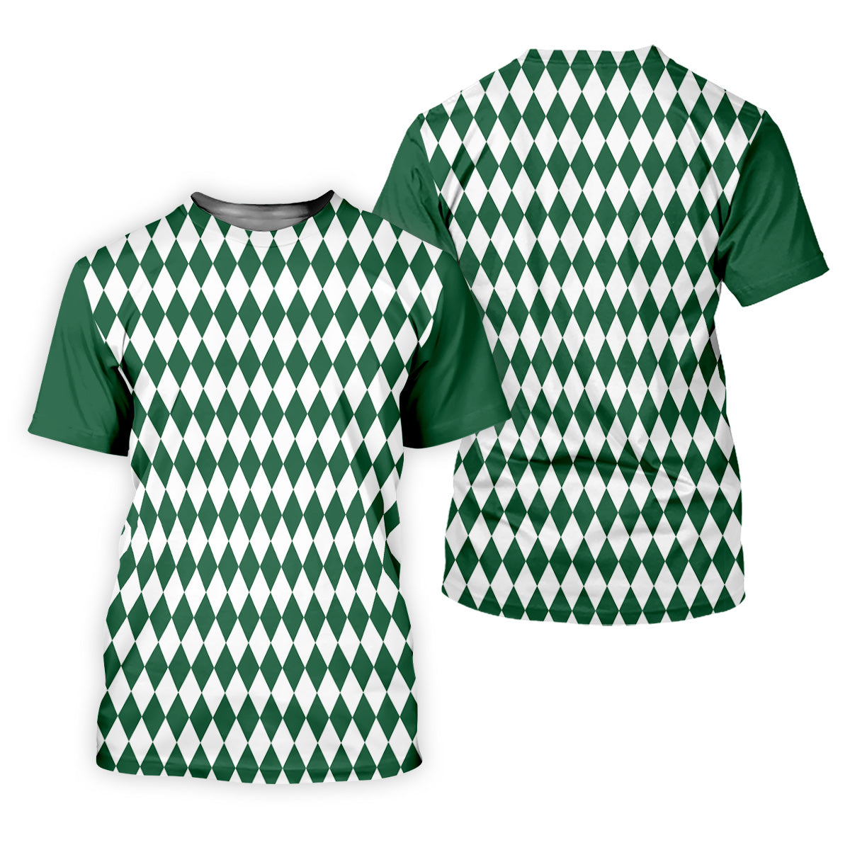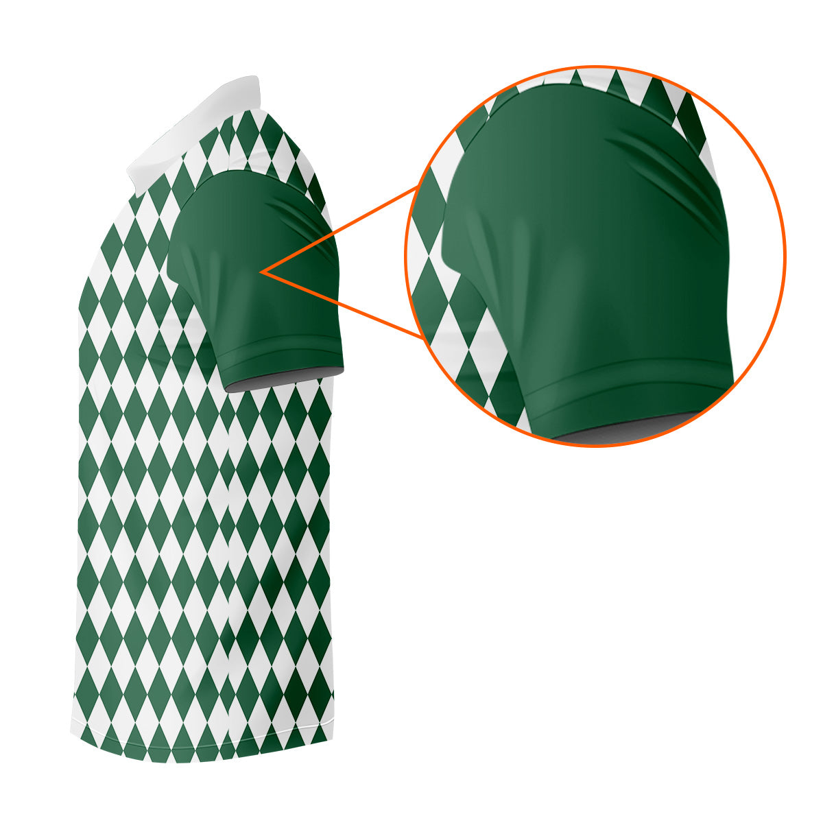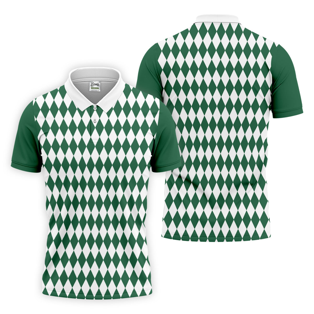 White And Green Argyle Pattern Men Polo, Polo Shirts For Men, Golf Gift For Men, Golfing Apparel