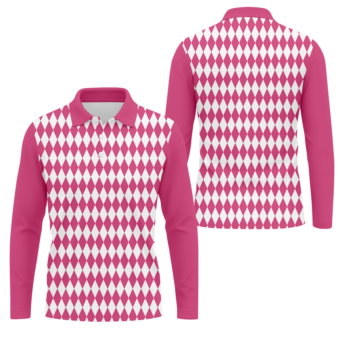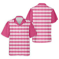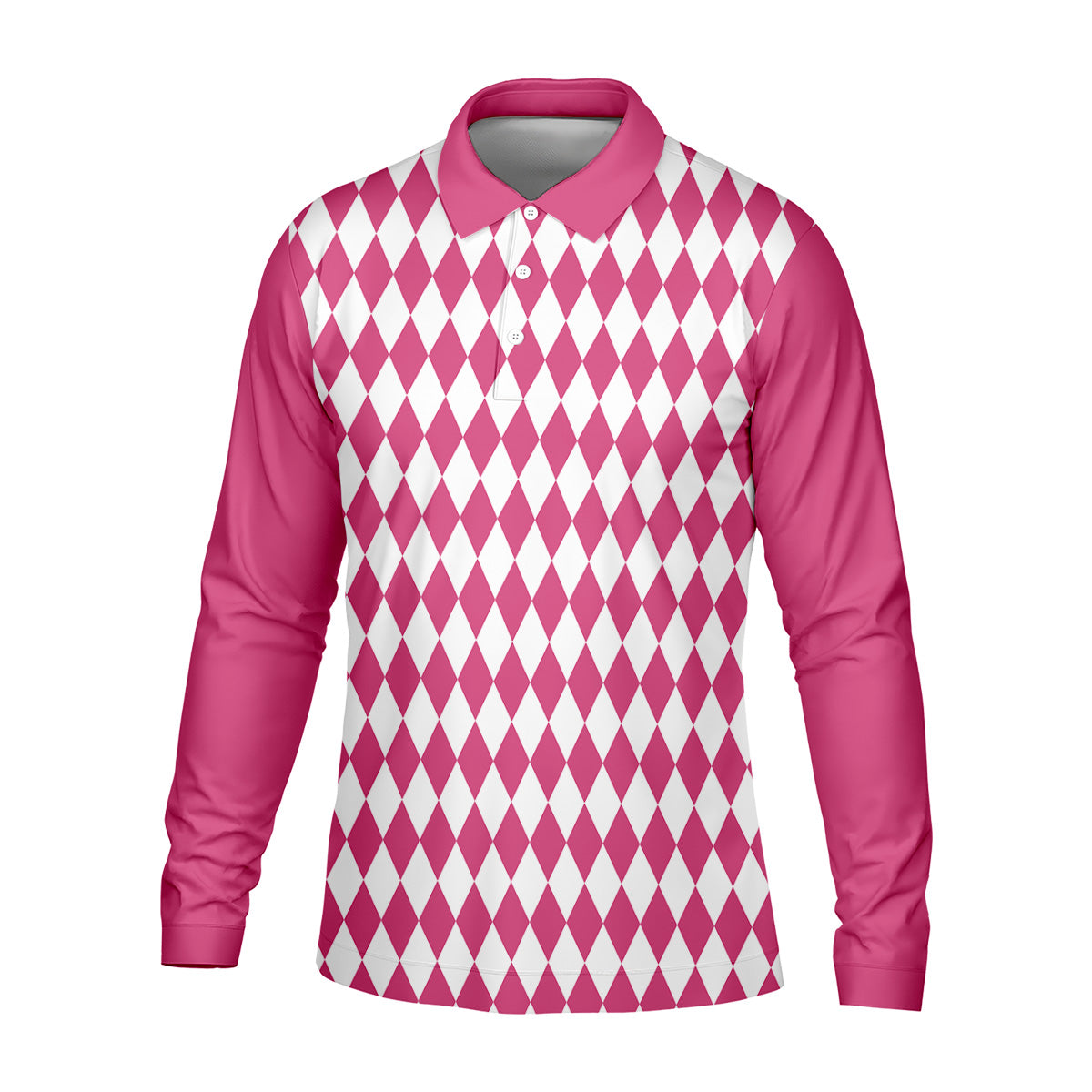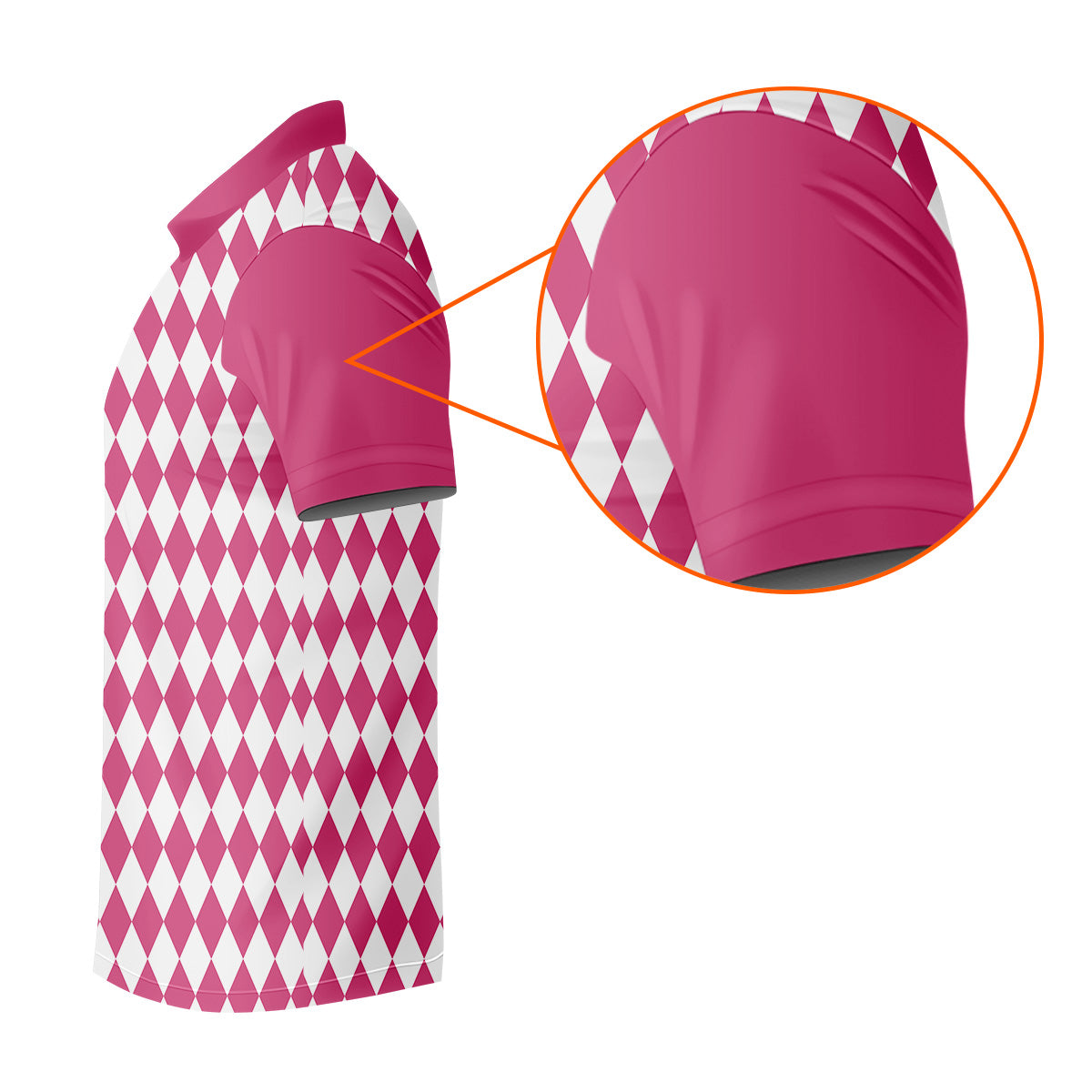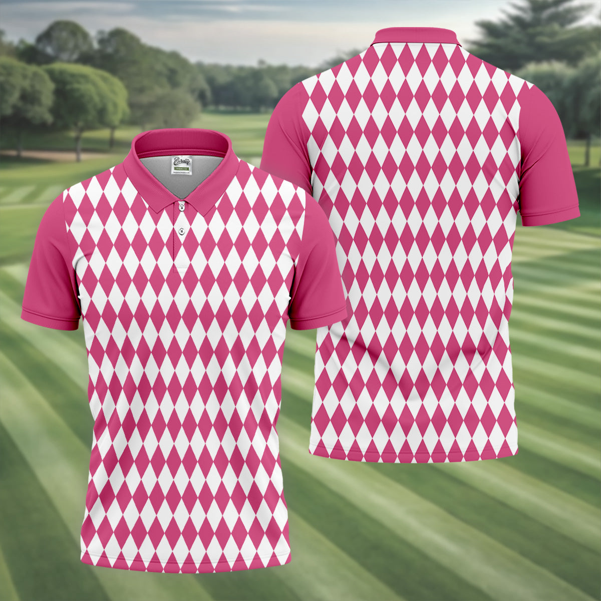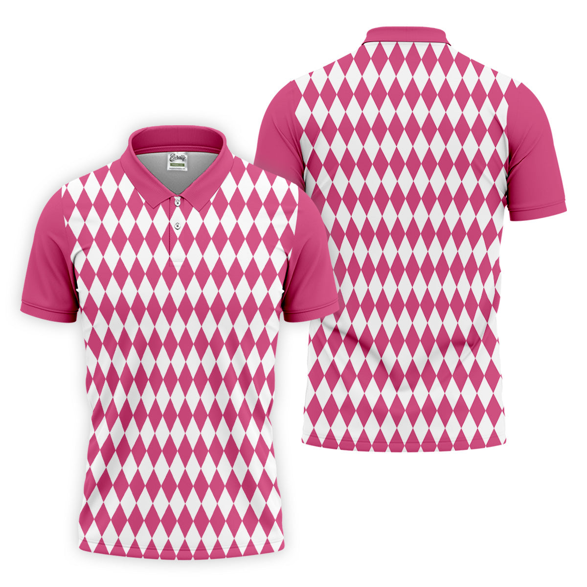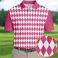 White And Pink Argyle Pattern Men Polo, Polo Shirts For Men, Golf Gift For Men, Golfing Apparel