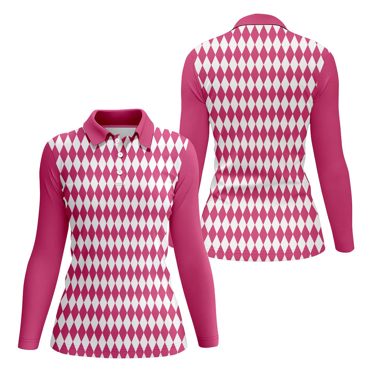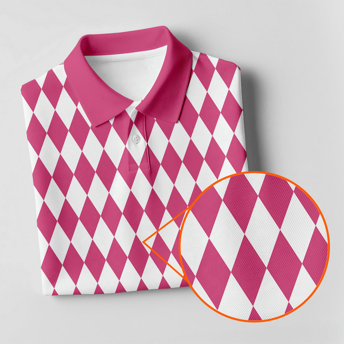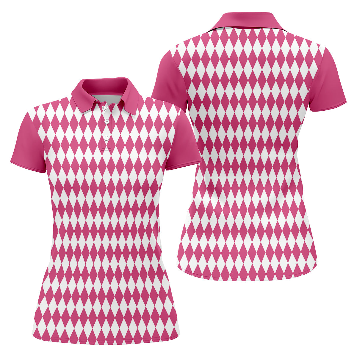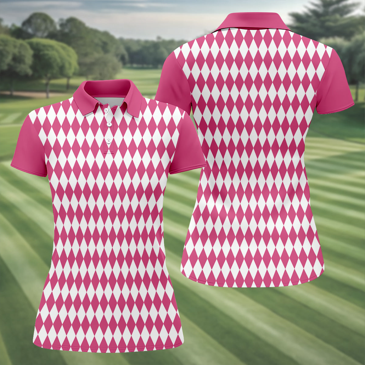 Meet the White And Pink Argyle Pattern Women's Golf Shirts, Ladies Sleeveless Polo, Ladies Golf Shirts – a shirt so bold it makes argyle cry in the corner. Designed for golfers who'd rather make a fashion statement than follow dress codes, this polo is your ticket to turning heads, raising eyebrows, and maybe distracting your buddies just enough to win a few holes. (We’re not saying it’s cheating... we’re saying it’s strategy.)