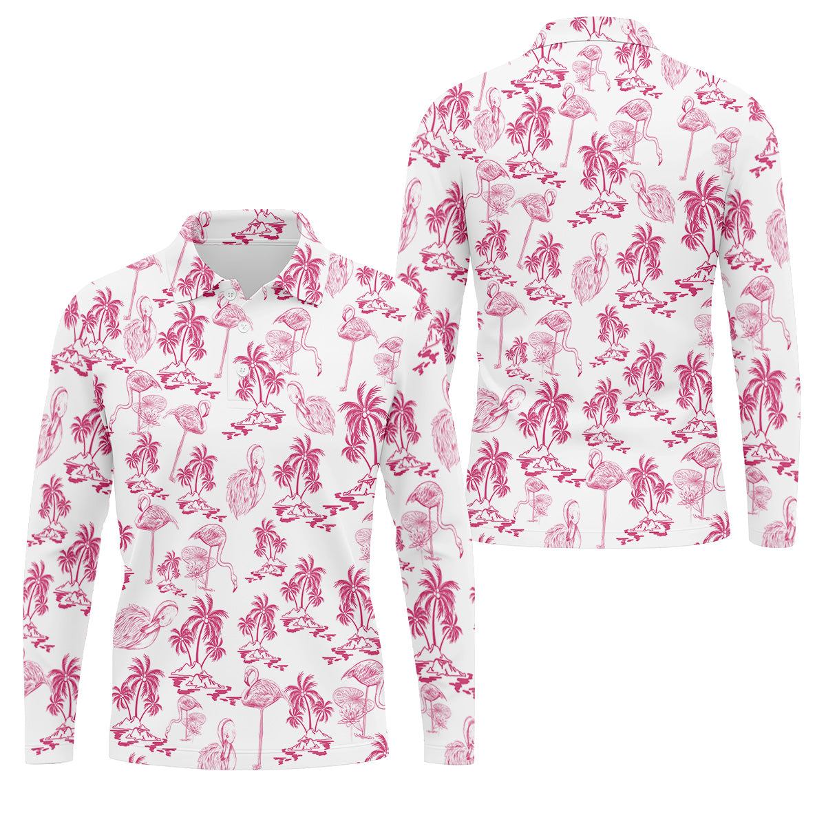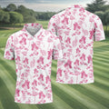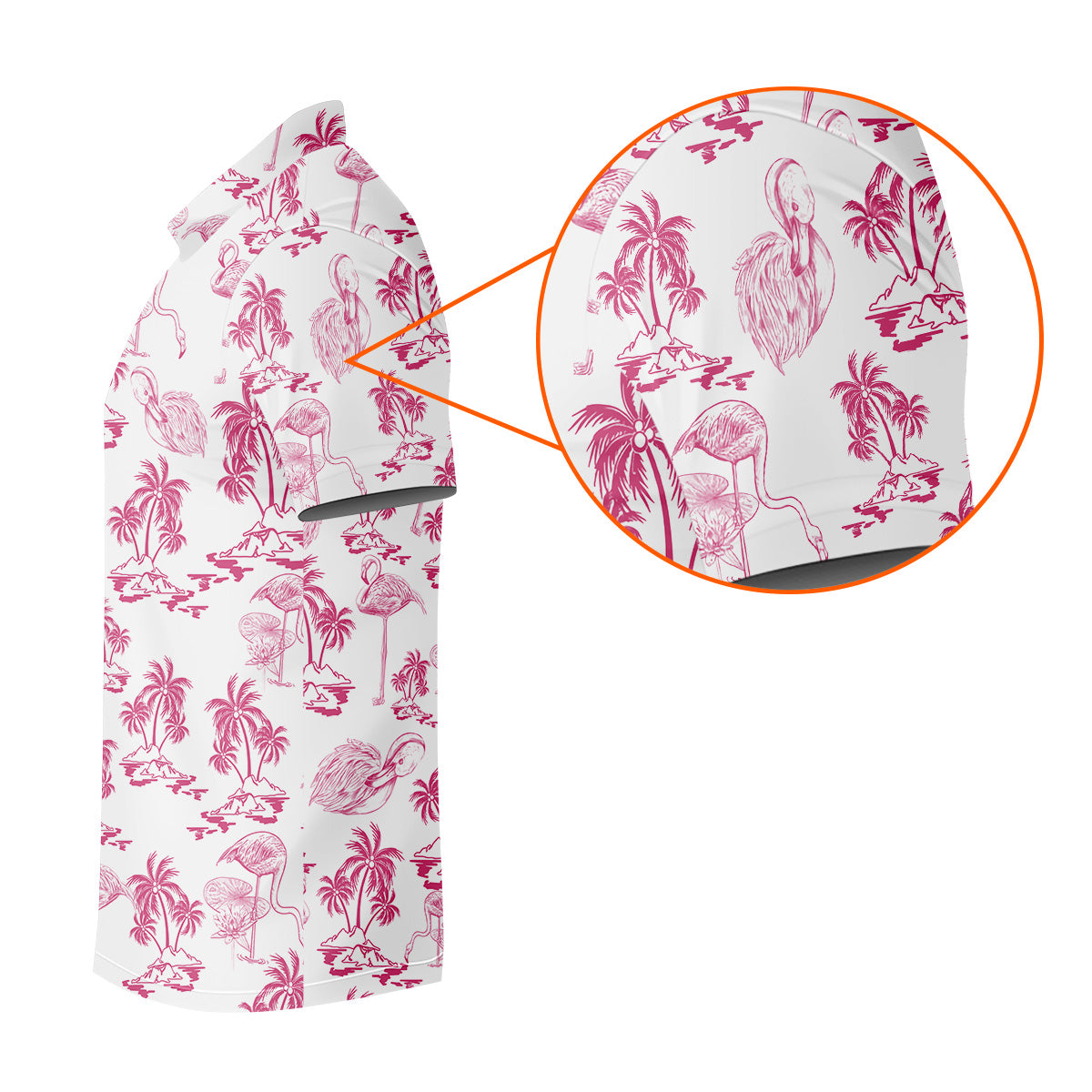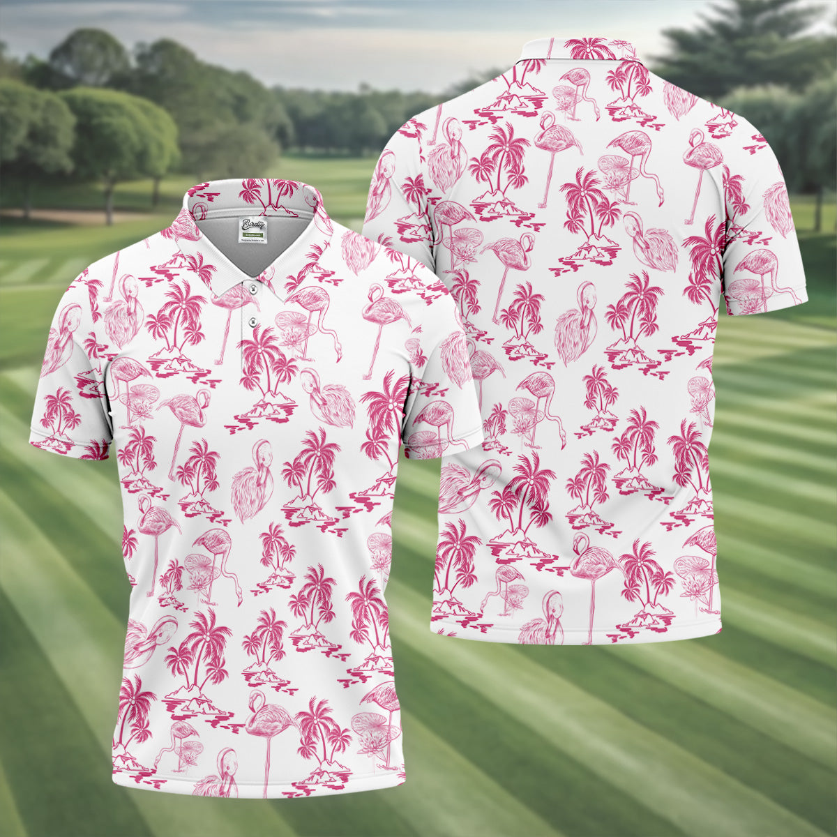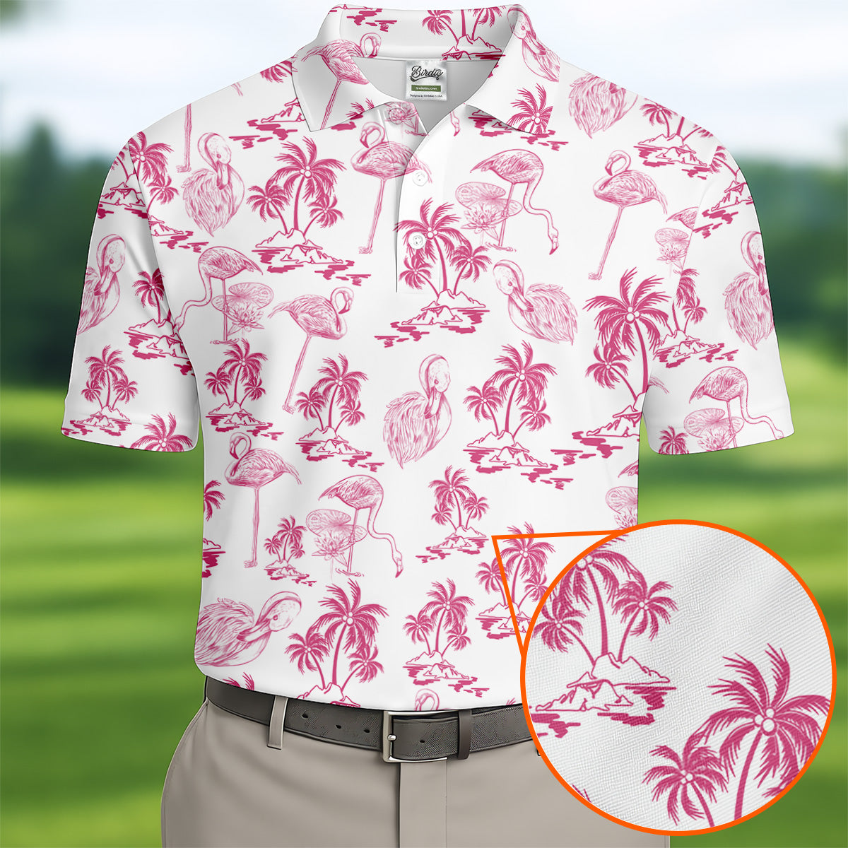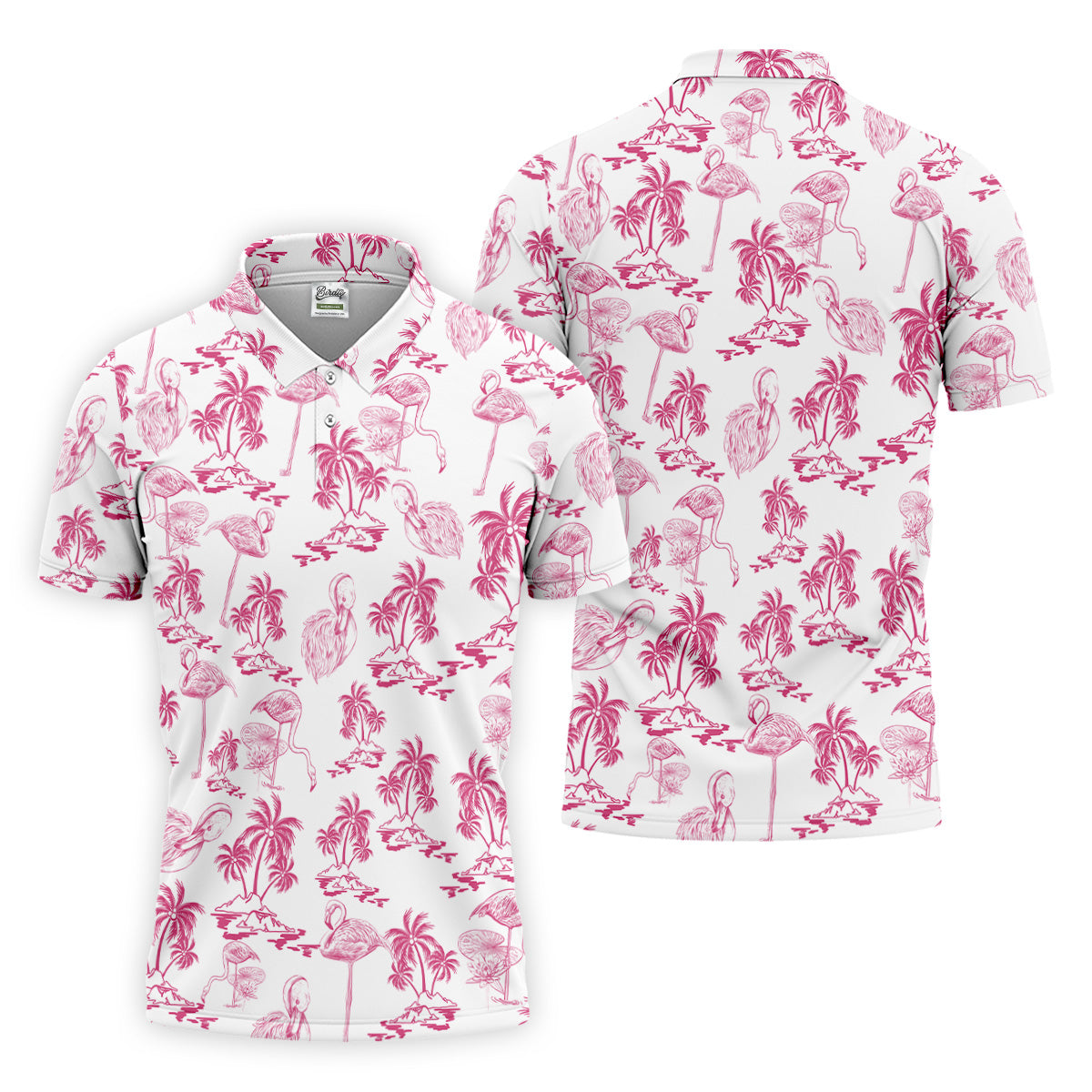 White And Pink Flamingo Tropical Men Polo, Polo Shirts For Men, Golf Gift For Men, Golfing Apparel