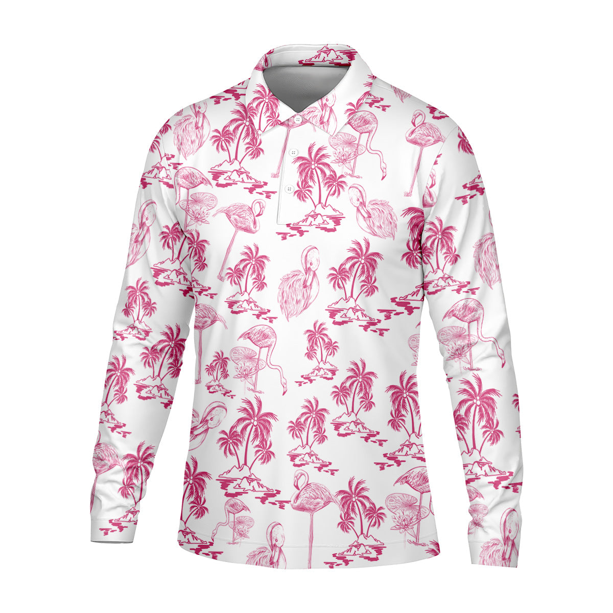 Meet the White And Pink Flamingo Tropical Men Polo, Polo Shirts For Men, Golf Gift For Men, Golfing Apparel – a shirt so bold it makes argyle cry in the corner. Designed for golfers who'd rather make a fashion statement than follow dress codes, this polo is your ticket to turning heads, raising eyebrows, and maybe distracting your buddies just enough to win a few holes. (We’re not saying it’s cheating... we’re saying it’s strategy.)