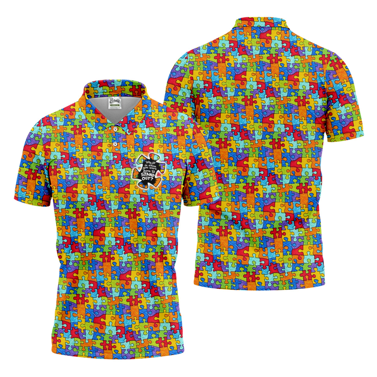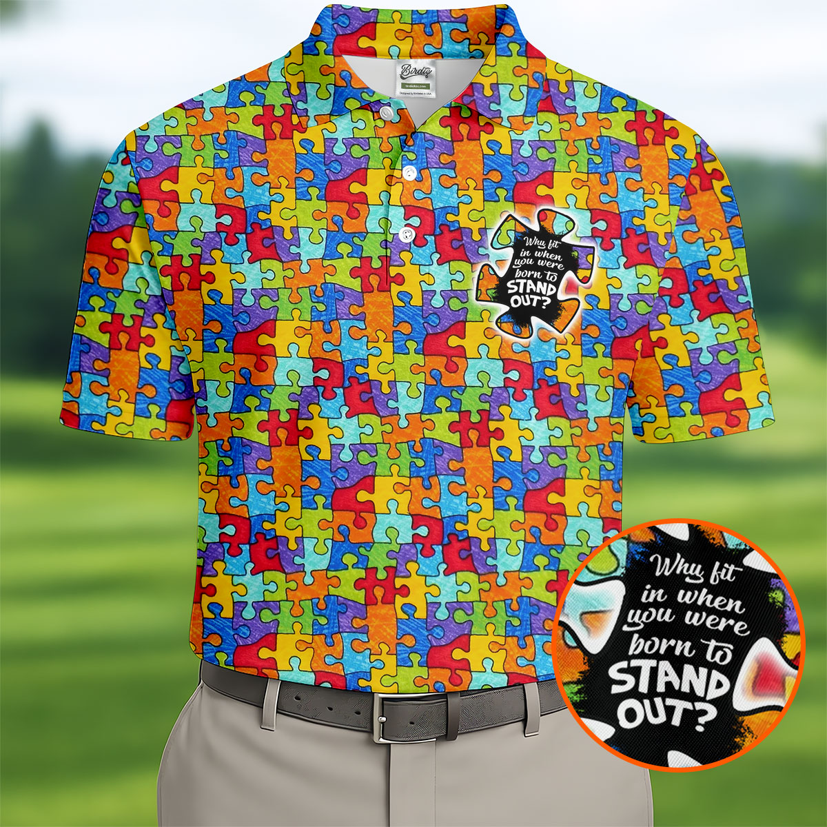 Why Fit In When You Were Born To Stand Out Autism Puzzle Golf Tops For Men, Golf Shirts For Men