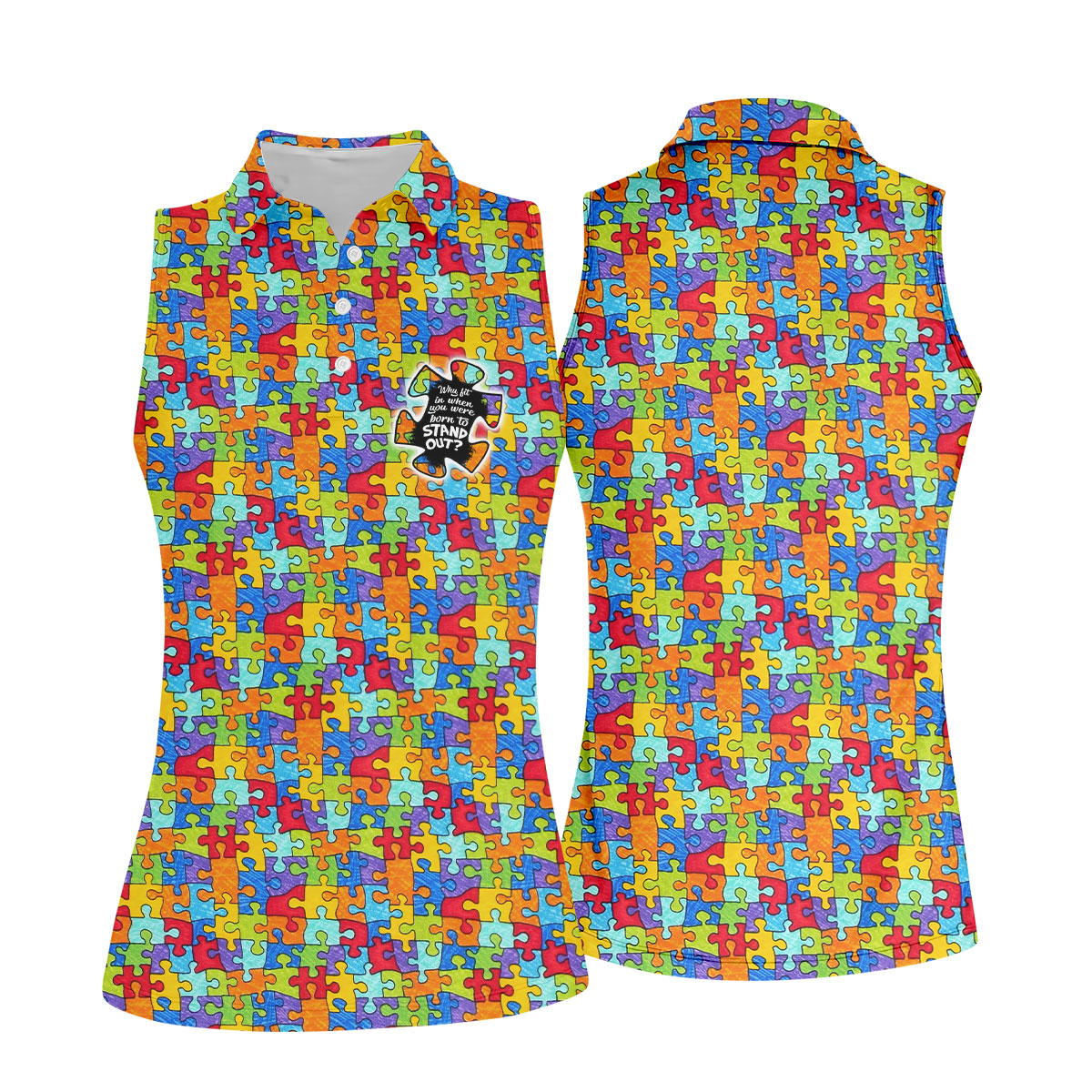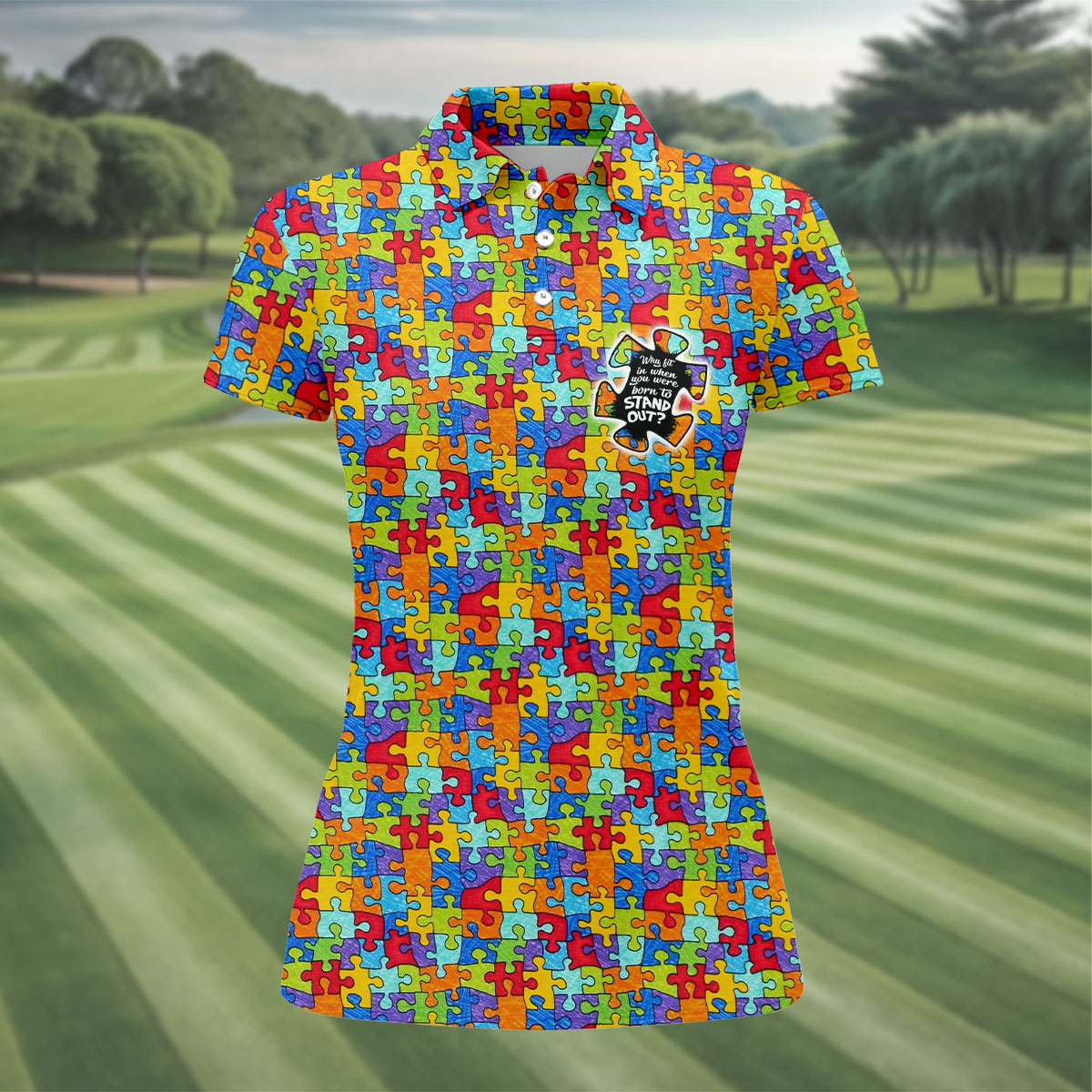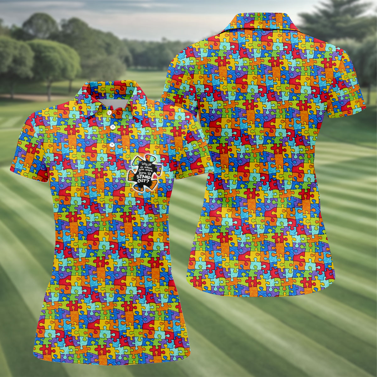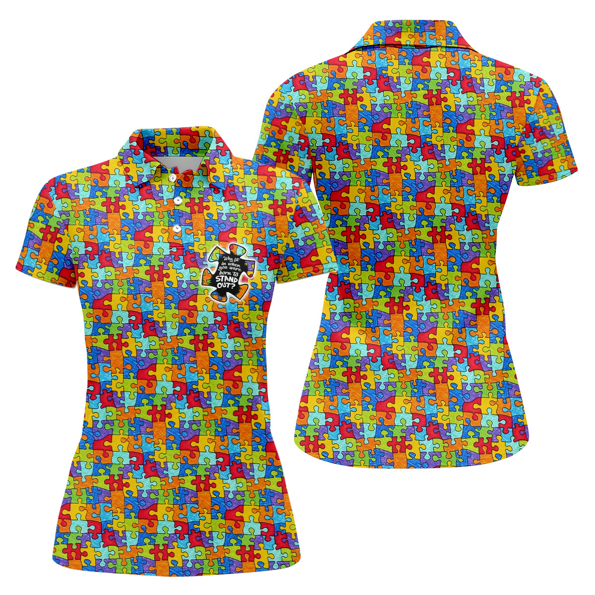 Why FIt In When You Were Born To Stand Out Autism Puzzle Women's Golf Shirts, Ladies Golf Polos