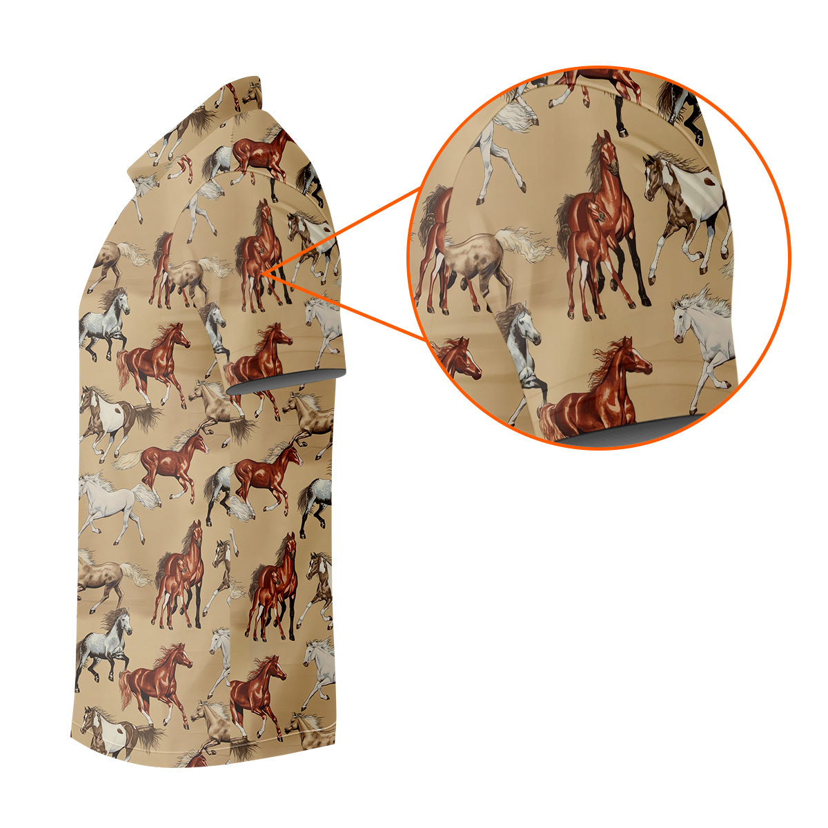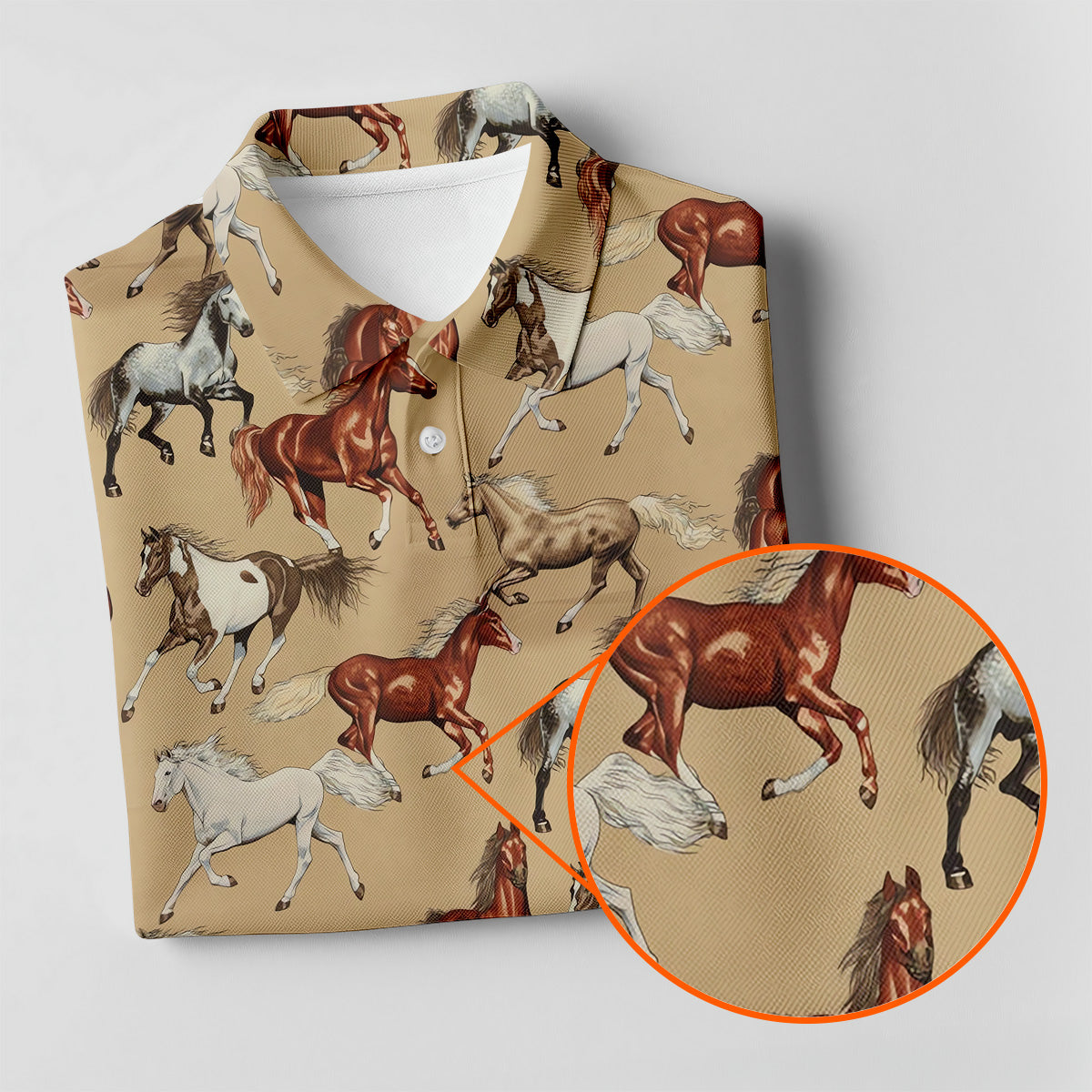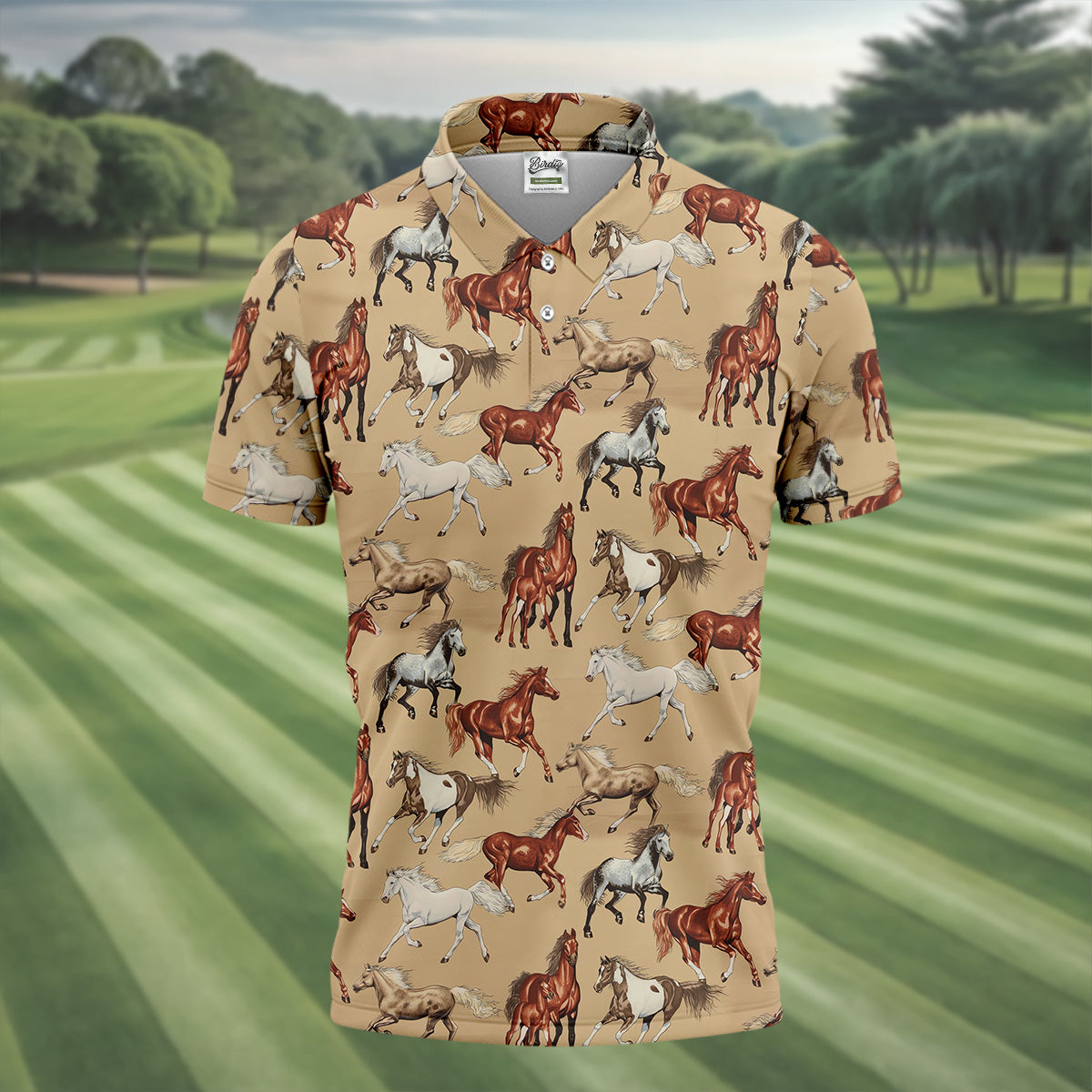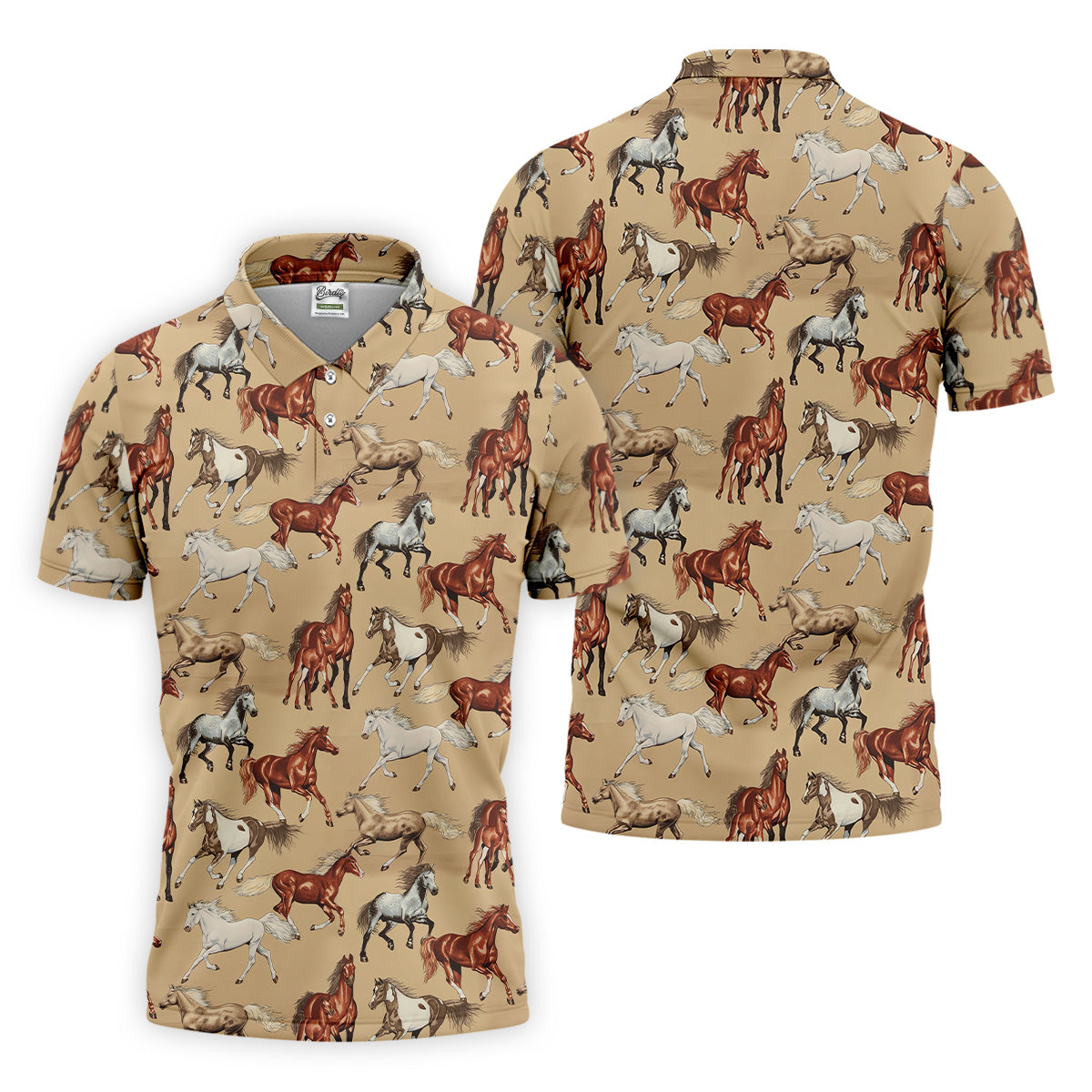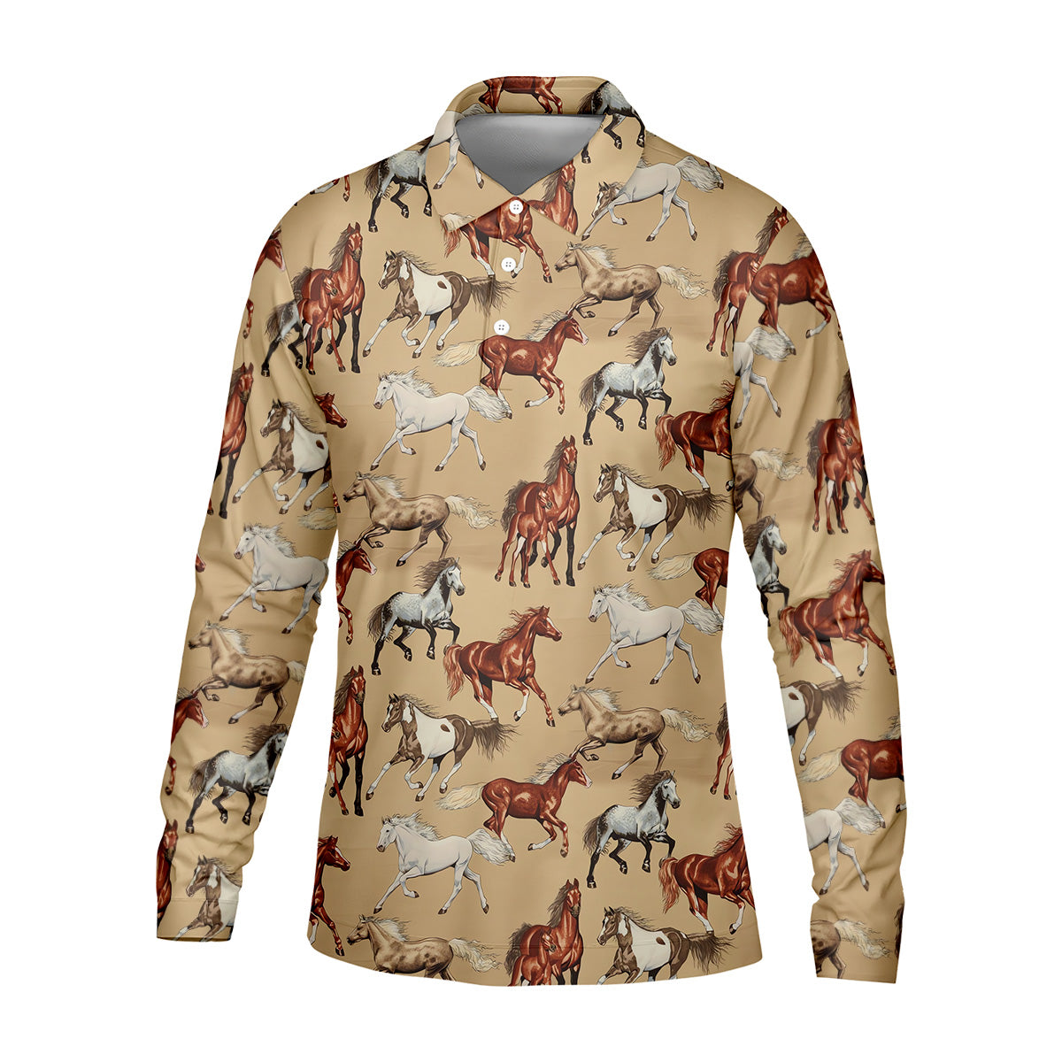 Wild Horse Seamless Pattern Golf Tops For Men, Hawaiian Golf Shirts, Long Sleeve Polo