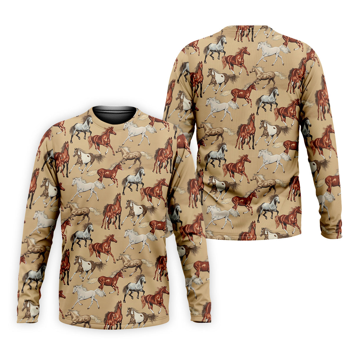 Meet the Wild Horse Seamless Pattern Golf Tops For Men, Hawaiian Golf Shirts, Long Sleeve Polo – a shirt so bold it makes argyle cry in the corner. Designed for golfers who'd rather make a fashion statement than follow dress codes, this polo is your ticket to turning heads, raising eyebrows, and maybe distracting your buddies just enough to win a few holes. (We’re not saying it’s cheating... we’re saying it’s strategy.)