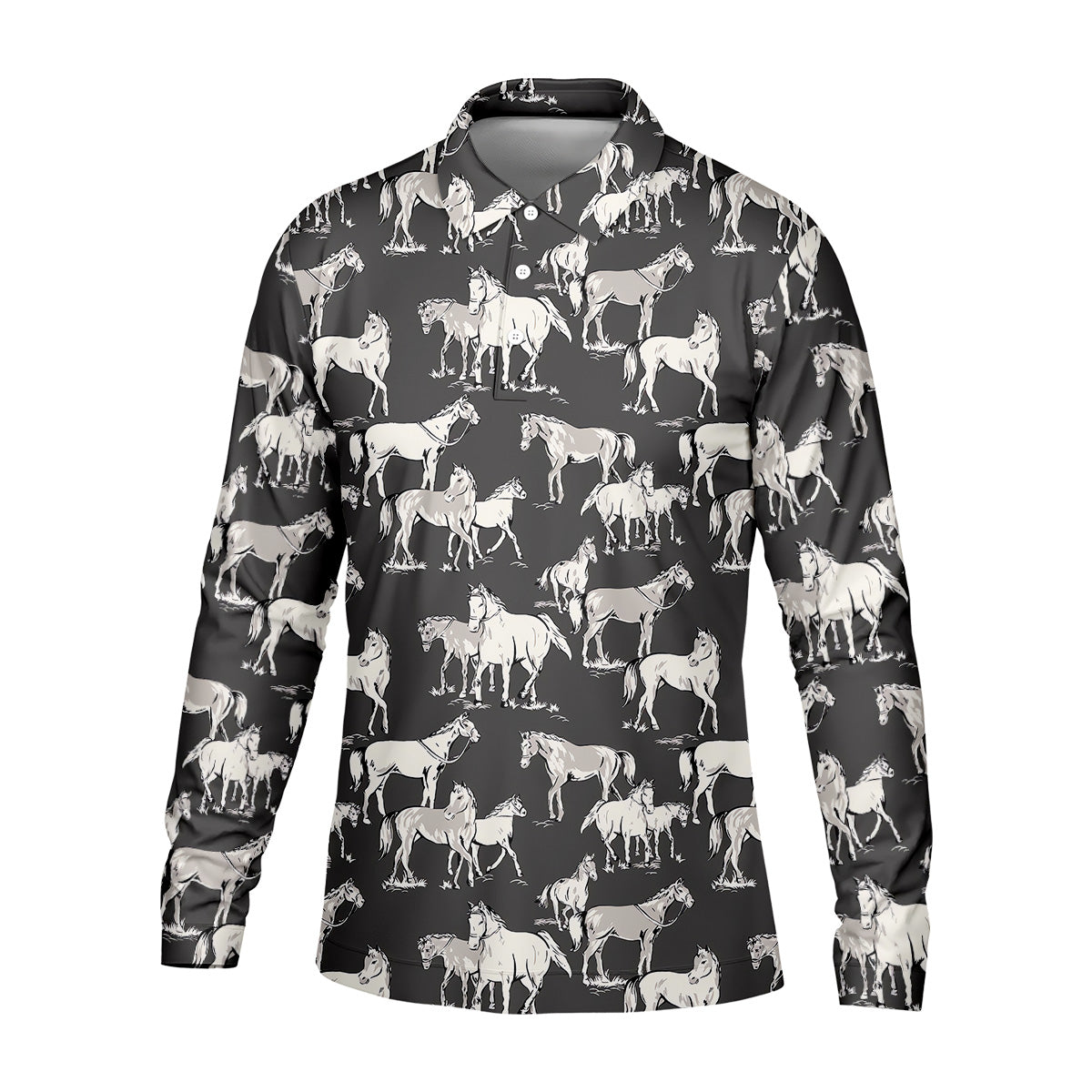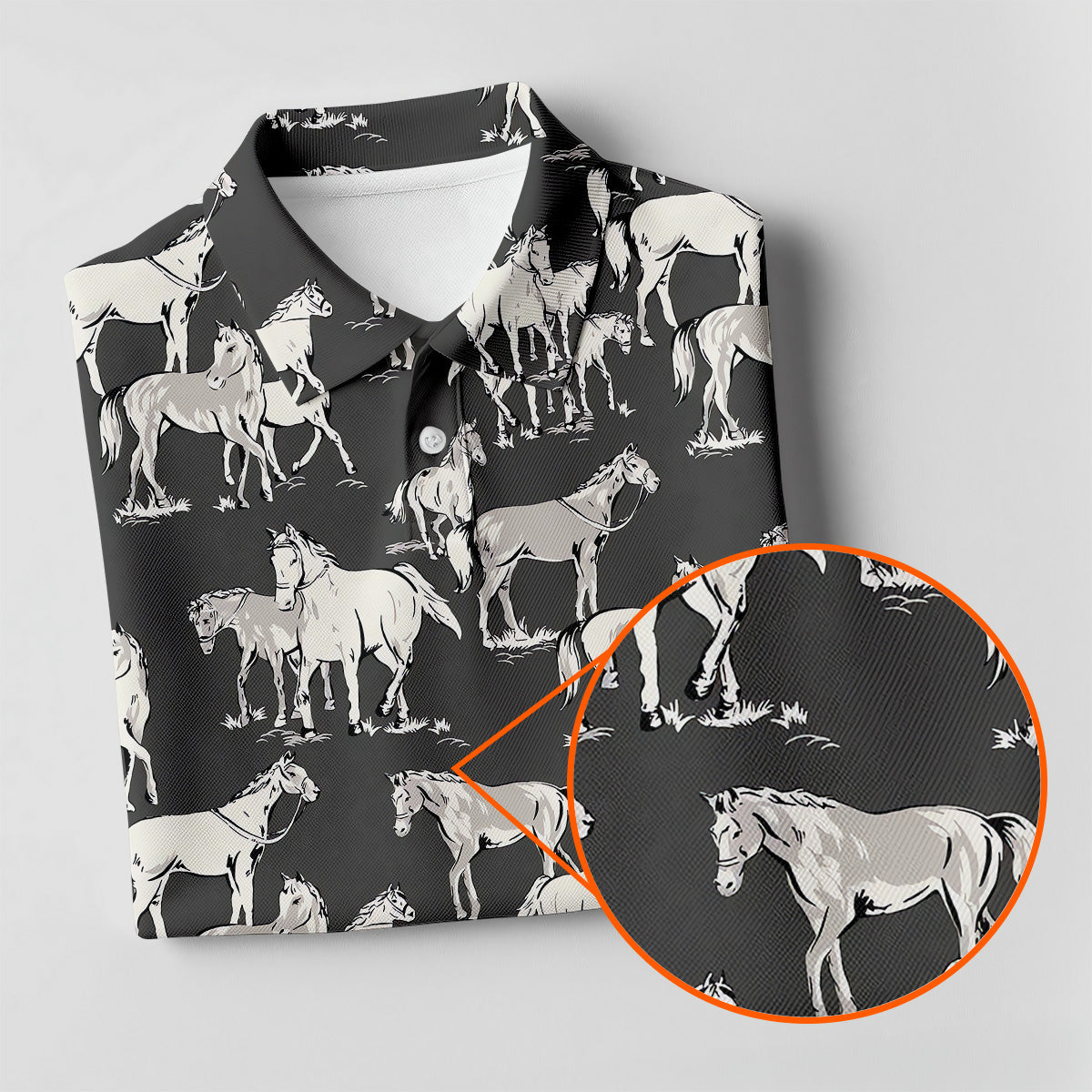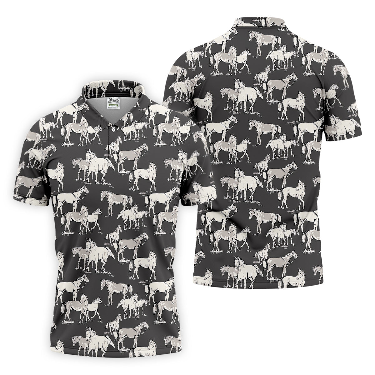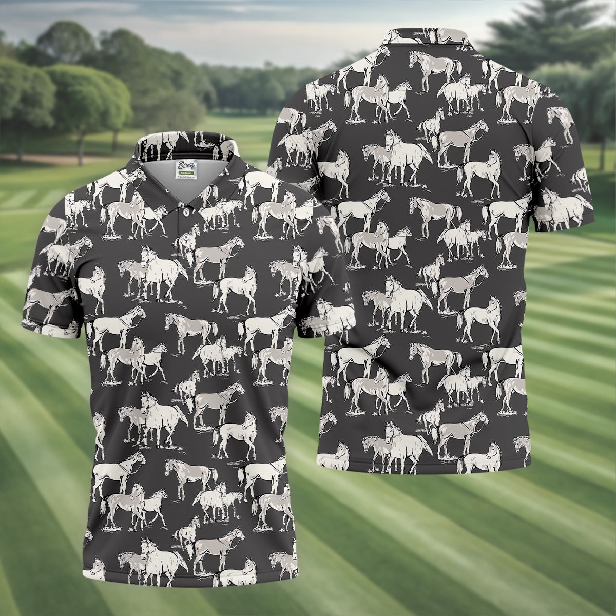 Wild Horse Seamless Pattern Golf Tops For Men, Hawaiian Golf Shirts, Polo For Men